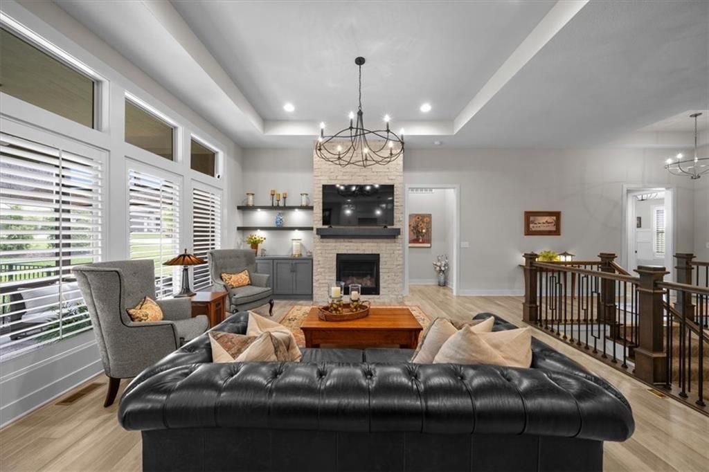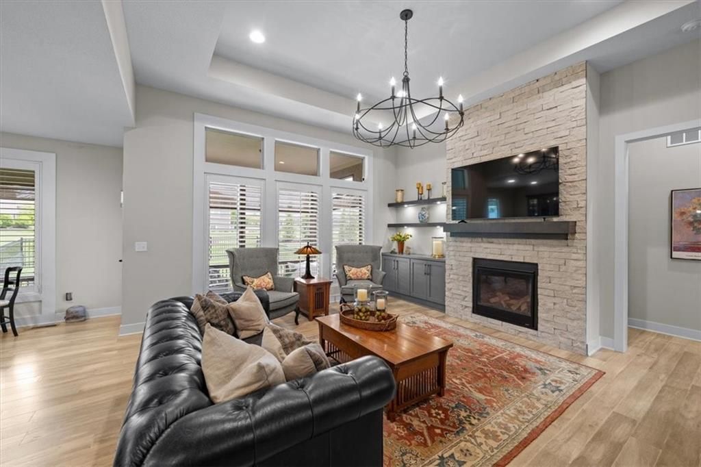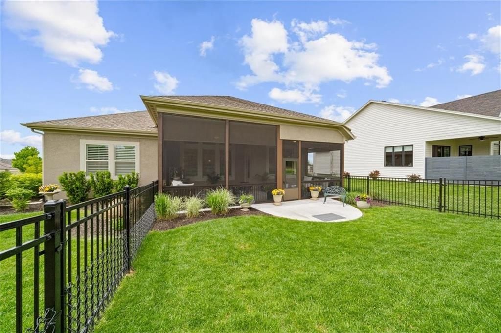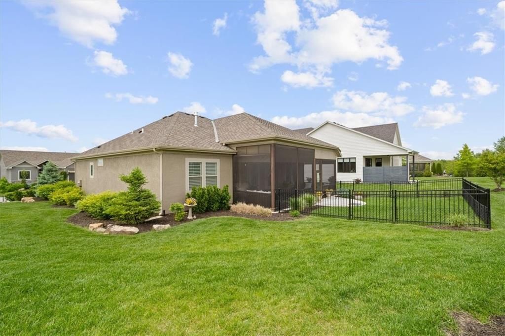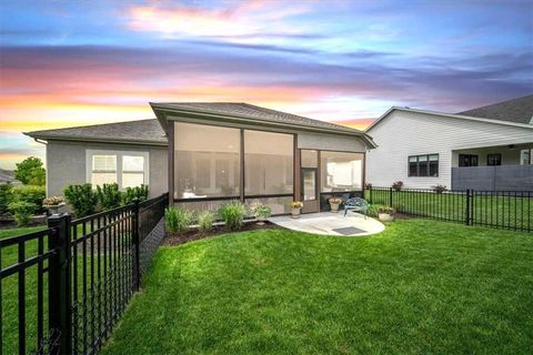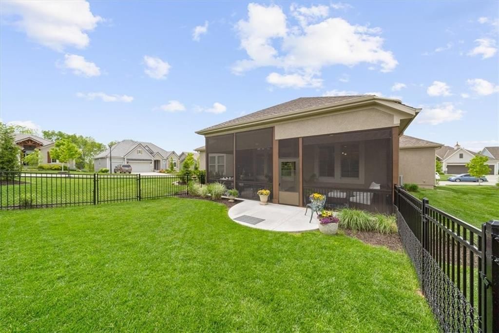 OPEN SUNDAY, 7-6, 1PM-3PM!! It's SUMMERTIME and the Livin' is LOVELY in 'The Ridge' within Spectacular Cedar Creek! Forget the yard work and go Hit the Golf course or soak up the Sun at one of THREE pools! Meet your friends for a sunset dinner at Shadow Glen or drop a fishing pole at the 65 acre lake~!-REWARD yourself & RIGHT SIZE without the waiting or uncertainty of building! DISCOVER this rare 'NEARLY NEW' home! We offer VALUE! Claim this PRISTINE, quality-built Ashley II plan by Kessler Custom Homes-You can't tell the Sellers have lived here! However, the METICULOUS owner added enhancements for 4.5 years! NEW fencing*AHHHHHHH mazing NEW SCREENED PORCH*new PATIO* NEW 1st floor guest BATH too! Durable HARDWOOD FLOORS throughout entire Main level! NO carpet up here:-) You can expect upgrades like Custom Glass-Front cabinetry*expansive Quartz countertops*NEW kitchen Appliances*Stone floor-to-ceiling Fireplace*FLOATING SHELVES and abundant PLANTATION SHUTTERS! The Primary bedroom defines EASY ELEGANCE! Pamper yourself in the gorgeous en suite with spacious walk in closet. The first level is completed by a Handy DROP ZONE off the garage near the well-positioned LAUNDRY and 2nd BEDROOM featuring Ship Lap Trim*TIMELESS!!* The LUSH LAWN (maintained by the HOA!) NEW LANDSCAPING and the IMPRESSIVE stucco/stone exterior welcome your guests. The Lower Level provides RELAXED living space with beautiful WET BAR, Full BATH, plus two versatile Bedrooms for Family, Guests, Hobbies, or a Home Office. You can work off your culinary adventures at The Clubhouse at Cedar Creek with it's private party rooms, meeting rooms and Basketball Court! Enjoy the EASY commute to anywhere, and SIMPLIFY your LIFESTYLE here! See: https://cedarcreek-kc.com/ AND https://www.shadowglen.org/ for more info!