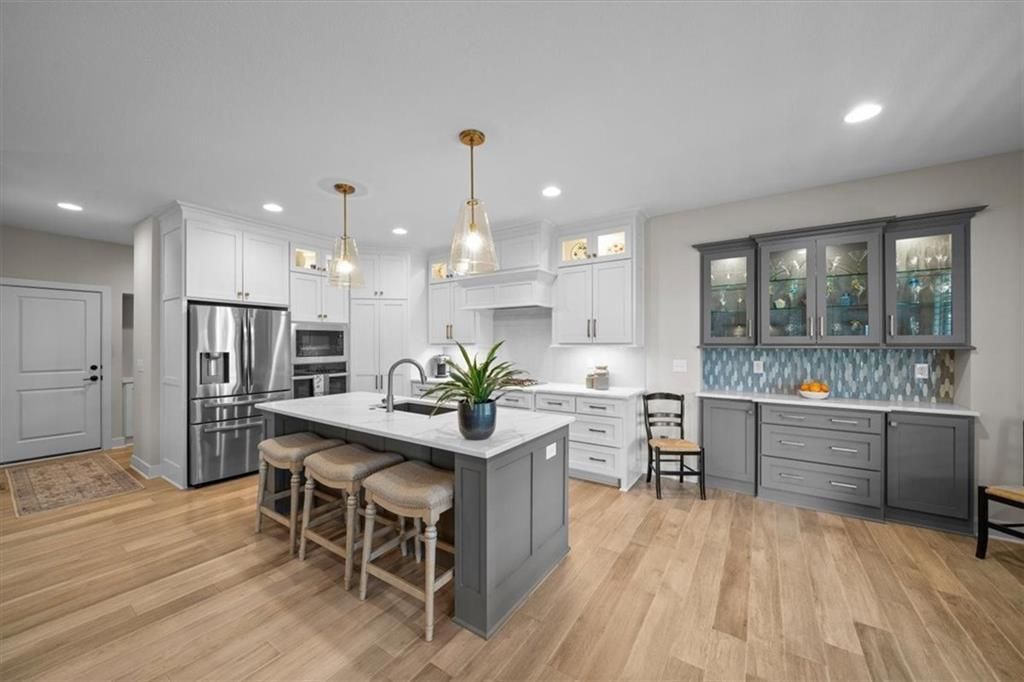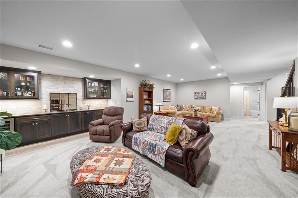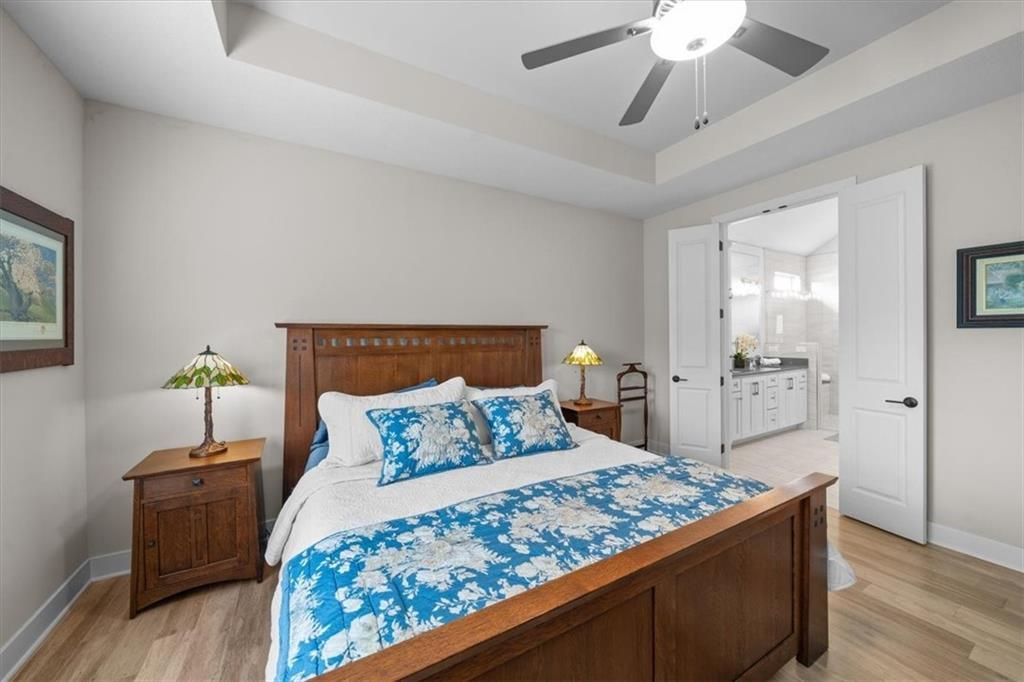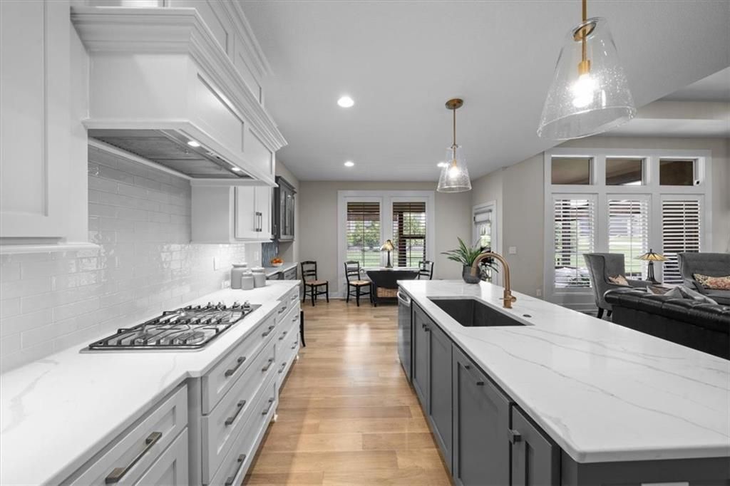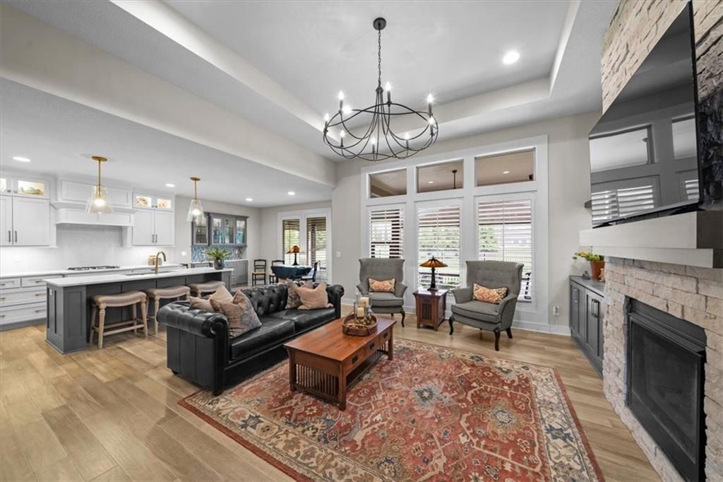 OPEN SUNDAY, 7-6, 1PM-3PM!! It's SUMMERTIME and the Livin' is LOVELY in 'The Ridge' within Spectacular Cedar Creek! Forget the yard work and go Hit the Golf course or soak up the Sun at one of THREE pools! Meet your friends for a sunset dinner at Shadow Glen or drop a fishing pole at the 65 acre lake~!-REWARD yourself & RIGHT SIZE without the waiting or uncertainty of building! DISCOVER this rare 'NEARLY NEW' home! We offer VALUE! Claim this PRISTINE, quality-built Ashley II plan by Kessler Custom Homes-You can't tell the Sellers have lived here! However, the METICULOUS owner added enhancements for 4.5 years! NEW fencing*AHHHHHHH mazing NEW SCREENED PORCH*new PATIO* NEW 1st floor guest BATH too! Durable HARDWOOD FLOORS throughout entire Main level! NO carpet up here:-) You can expect upgrades like Custom Glass-Front cabinetry*expansive Quartz countertops*NEW kitchen Appliances*Stone floor-to-ceiling Fireplace*FLOATING SHELVES and abundant PLANTATION SHUTTERS! The Primary bedroom defines EASY ELEGANCE! Pamper yourself in the gorgeous en suite with spacious walk in closet. The first level is completed by a Handy DROP ZONE off the garage near the well-positioned LAUNDRY and 2nd BEDROOM featuring Ship Lap Trim*TIMELESS!!* The LUSH LAWN (maintained by the HOA!) NEW LANDSCAPING and the IMPRESSIVE stucco/stone exterior welcome your guests. The Lower Level provides RELAXED living space with beautiful WET BAR, Full BATH, plus two versatile Bedrooms for Family, Guests, Hobbies, or a Home Office. You can work off your culinary adventures at The Clubhouse at Cedar Creek with it's private party rooms, meeting rooms and Basketball Court! Enjoy the EASY commute to anywhere, and SIMPLIFY your LIFESTYLE here! See: https://cedarcreek-kc.com/ AND https://www.shadowglen.org/ for more info!