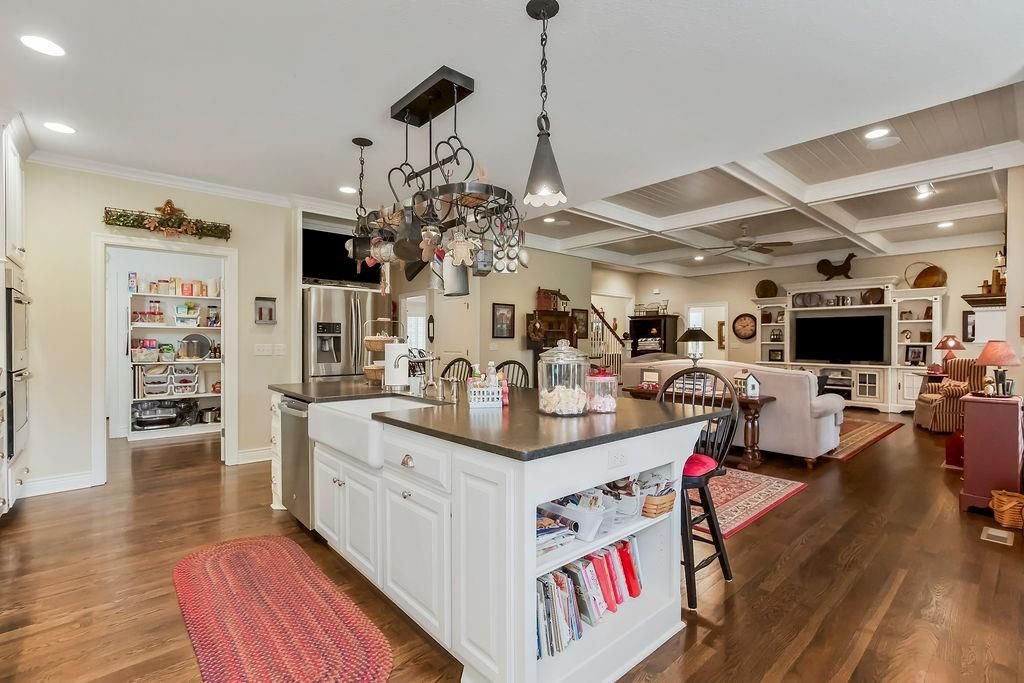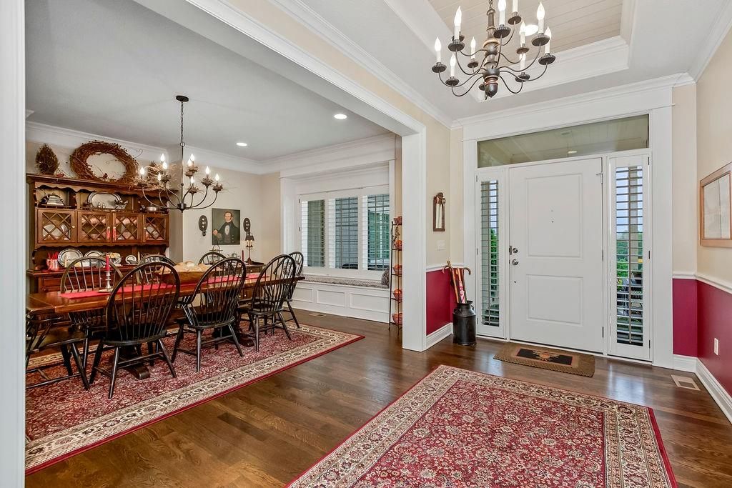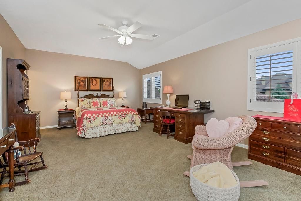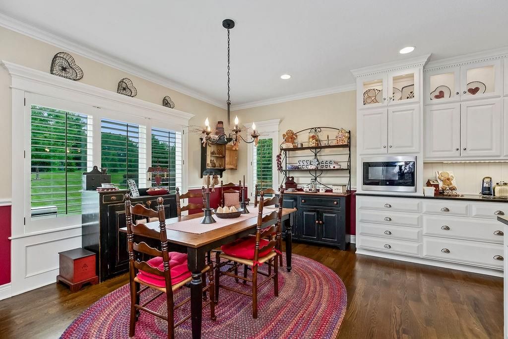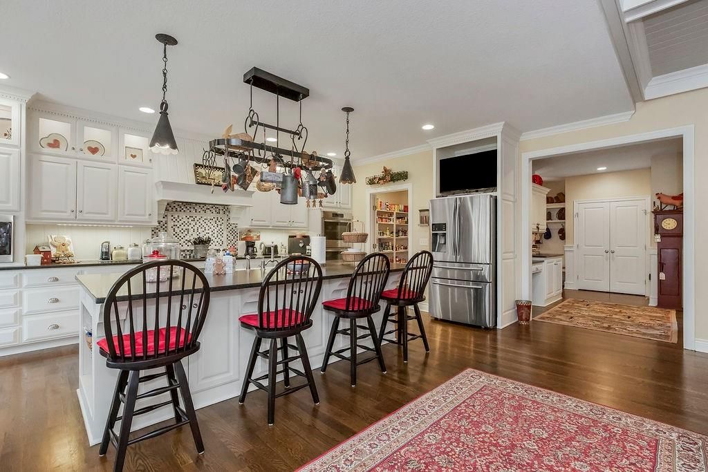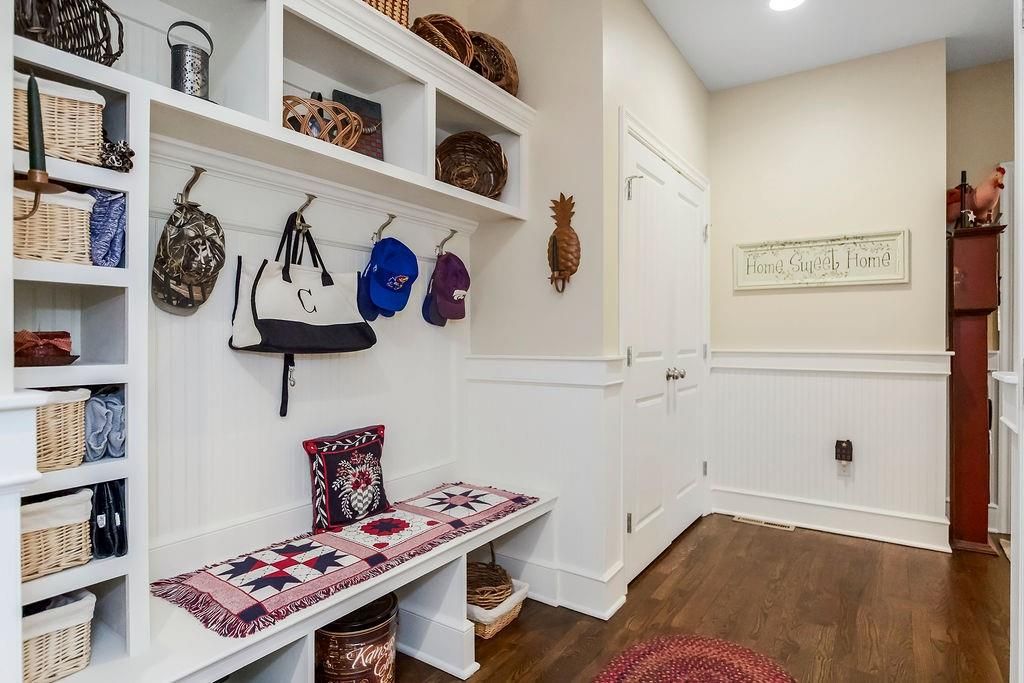 Custom built, 1-owner home, thoughtfully placed on a nearly 3/4 acre, east backing lot in the coveted North Shore Estates neighborhood of Cedar Creek! Designed by renowned architects Nearing, Staats, Prelogar & Jones and meticulously crafted by Tom French. Quintessential American Cape Cod featuring low maintenance Hardie shingles, lap siding & wood pillar accents. Traditional interior feel with extensive trim details, hardwood flooring & stunning clear pine box beam ceiling details. Very spacious, family-friendly home offers a huge, open concept Great rm./Kitchen/breakfast rm., but also includes a formal dining rm for those special occasions. Large kitchen island over abundant cabinets, huge walk-thru pantry w/fridge plus a butler's pantry w/built-in desk, granite tops & generous cabinetry. Luxurious Primary suite features a custom walk-in shower, huge walk-in closet & direct access out to the screened-in porch. The 2nd main flr. bdrm. is currently being utilized as a Den/office. 2nd flr. boasts 4 generously sized bdrms., all w/walk-in closets, private bath access & and a convenient laundry rm. Finished lower level includes a Family rm., Recreation rm., Media rm. w/133" in. screen, sitting rm., walk-up wet bar & full bath. Over-sized 4-car garage is fully painted, features a convenient wide staircase going down to an unfinished section of the basement also includes multiple 110 & 220 electrical outlets & utility sink. A very big backyard, which is rare for Cedar Creek, offers plenty of play space for kids & pets. Anderson Series 400 casement windows, 3-zone HVAC, 2 circulating water heaters, & 36" in. room entry doors. While this home is technically in the DeSoto school district, to date all homeowners in this part of Cedar Creek who have applied for access into the Olathe School district have been accepted, buyers responsible to verify.