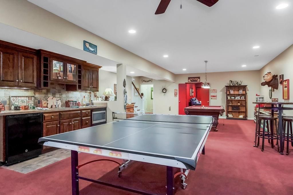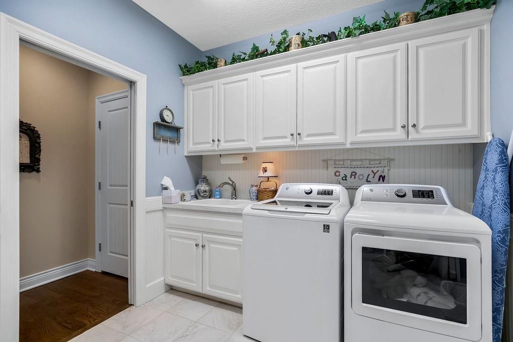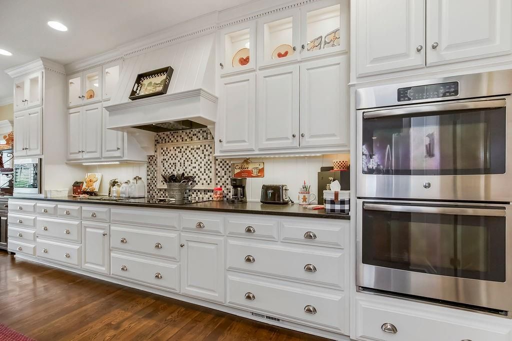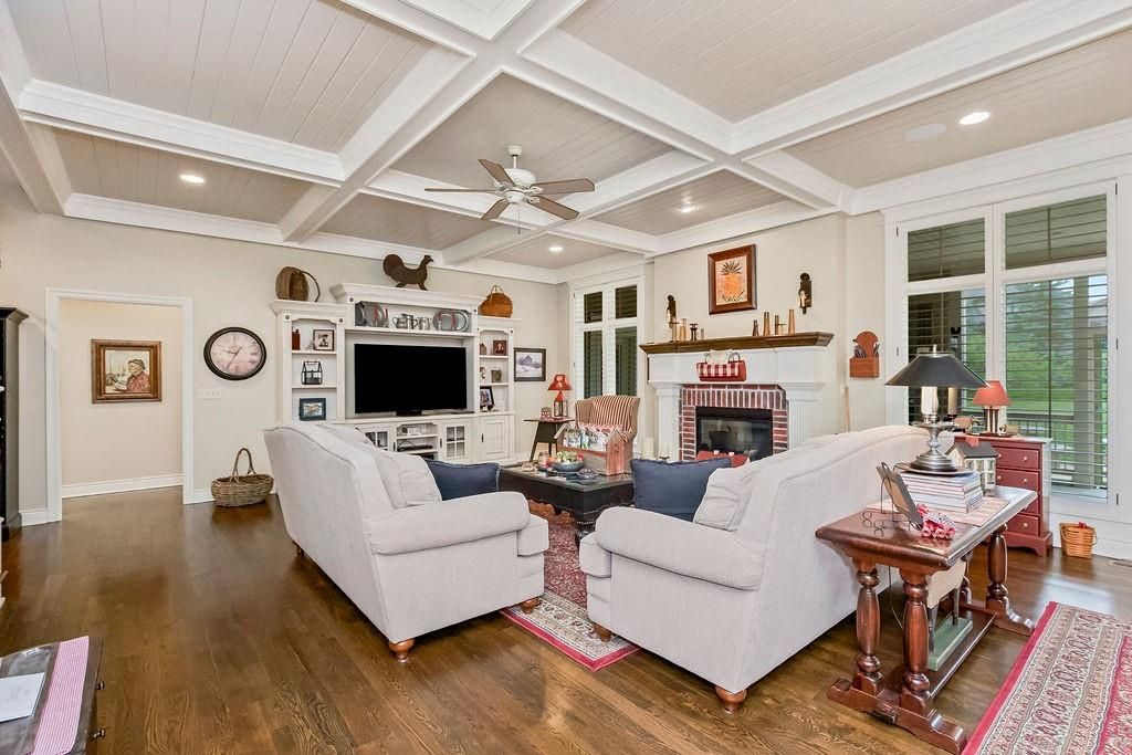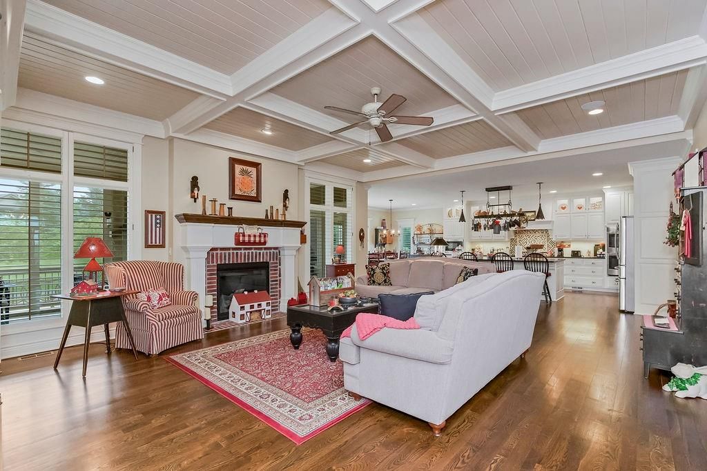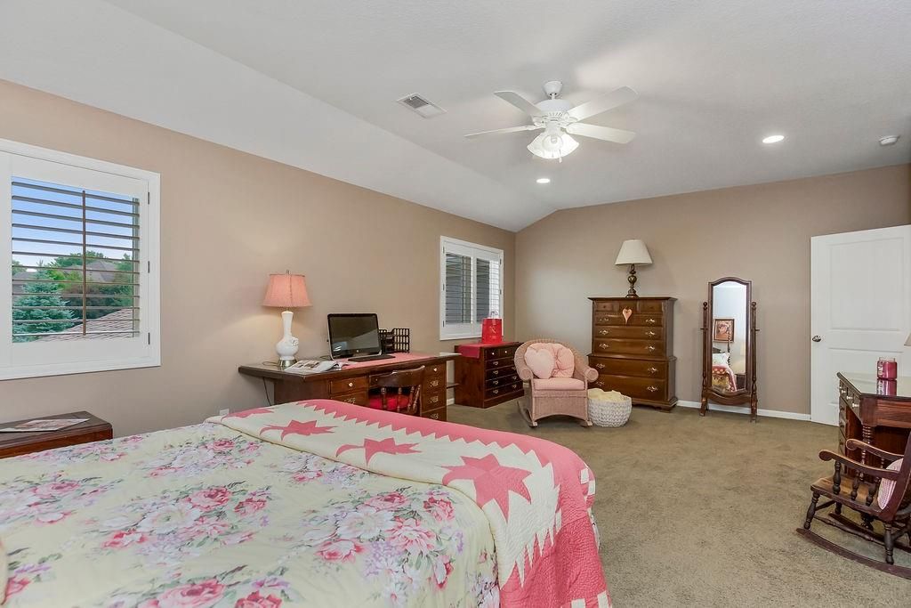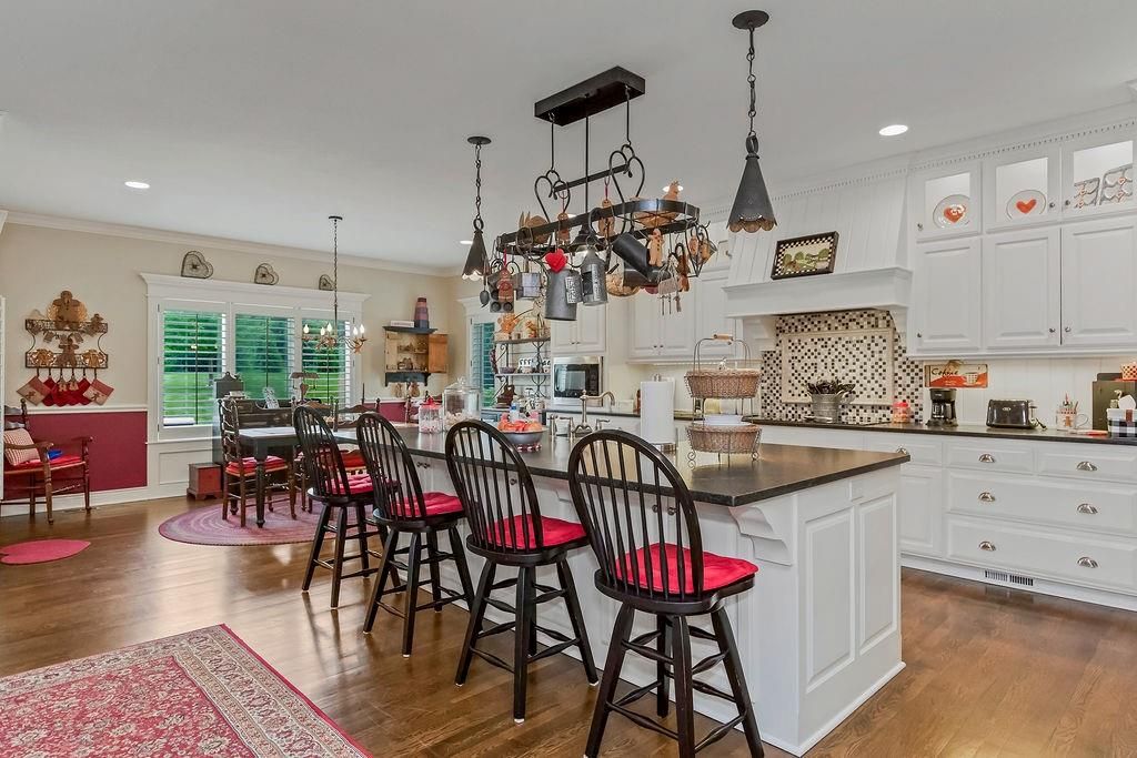 Custom built, 1-owner home, thoughtfully placed on a nearly 3/4 acre, east backing lot in the coveted North Shore Estates neighborhood of Cedar Creek! Designed by renowned architects Nearing, Staats, Prelogar & Jones and meticulously crafted by Tom French. Quintessential American Cape Cod featuring low maintenance Hardie shingles, lap siding & wood pillar accents. Traditional interior feel with extensive trim details, hardwood flooring & stunning clear pine box beam ceiling details. Very spacious, family-friendly home offers a huge, open concept Great rm./Kitchen/breakfast rm., but also includes a formal dining rm for those special occasions. Large kitchen island over abundant cabinets, huge walk-thru pantry w/fridge plus a butler's pantry w/built-in desk, granite tops & generous cabinetry. Luxurious Primary suite features a custom walk-in shower, huge walk-in closet & direct access out to the screened-in porch. The 2nd main flr. bdrm. is currently being utilized as a Den/office. 2nd flr. boasts 4 generously sized bdrms., all w/walk-in closets, private bath access & and a convenient laundry rm. Finished lower level includes a Family rm., Recreation rm., Media rm. w/133" in. screen, sitting rm., walk-up wet bar & full bath. Over-sized 4-car garage is fully painted, features a convenient wide staircase going down to an unfinished section of the basement also includes multiple 110 & 220 electrical outlets & utility sink. A very big backyard, which is rare for Cedar Creek, offers plenty of play space for kids & pets. Anderson Series 400 casement windows, 3-zone HVAC, 2 circulating water heaters, & 36" in. room entry doors. While this home is technically in the DeSoto school district, to date all homeowners in this part of Cedar Creek who have applied for access into the Olathe School district have been accepted, buyers responsible to verify.