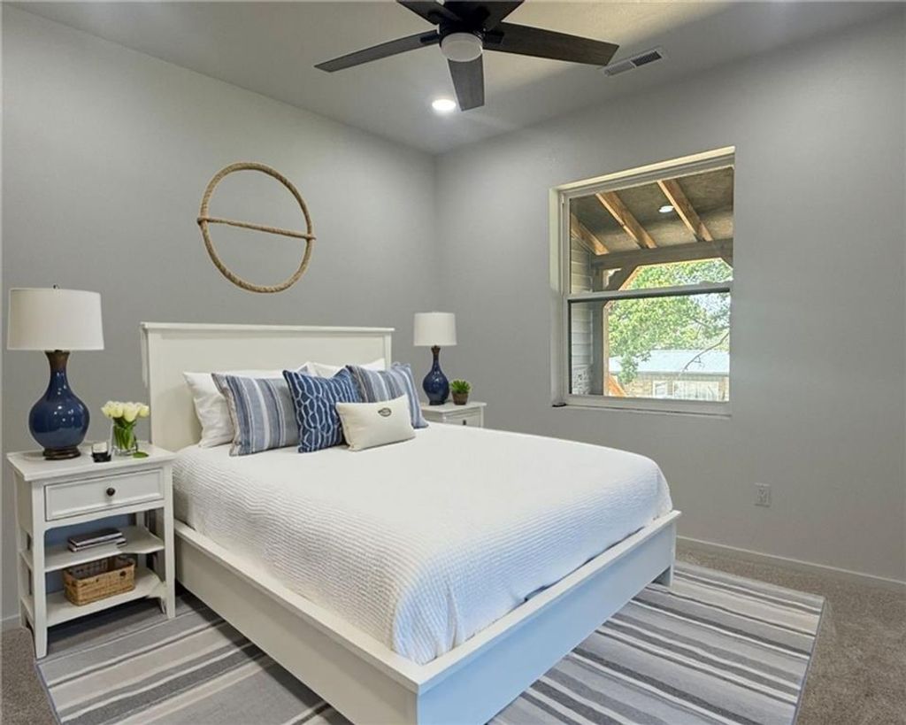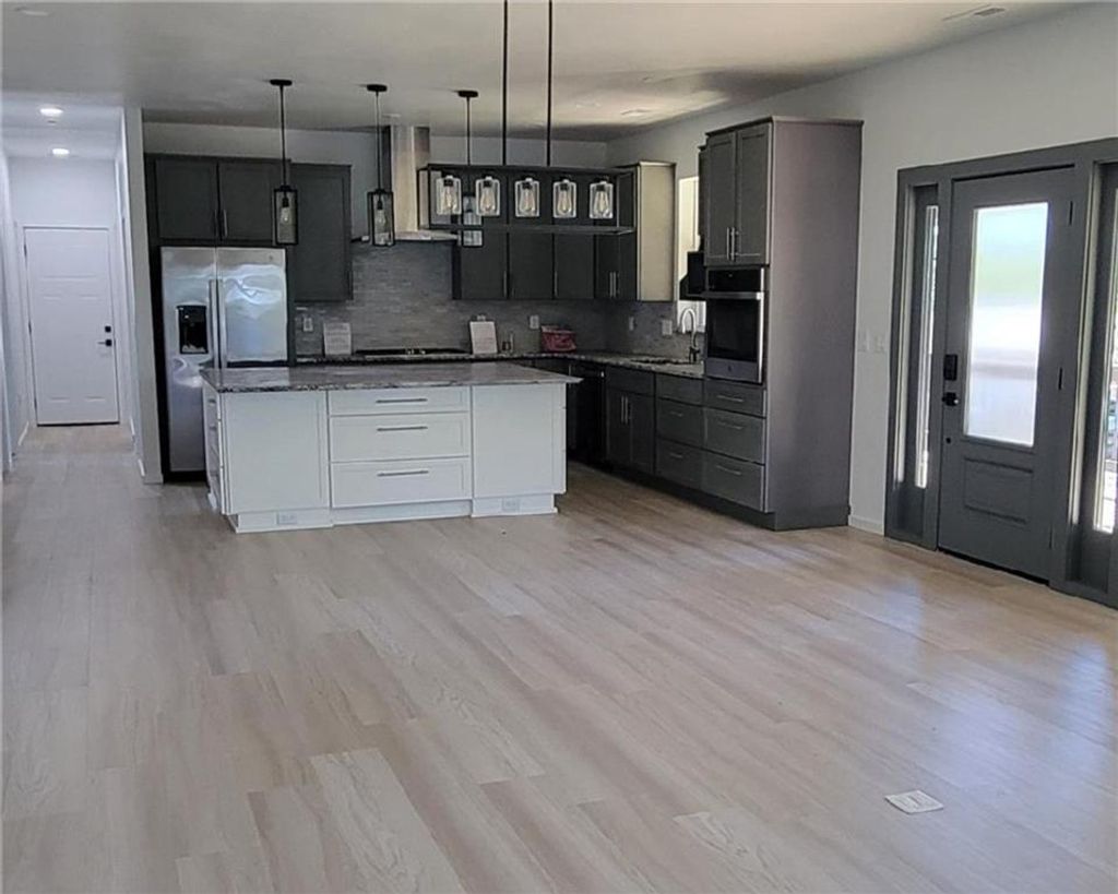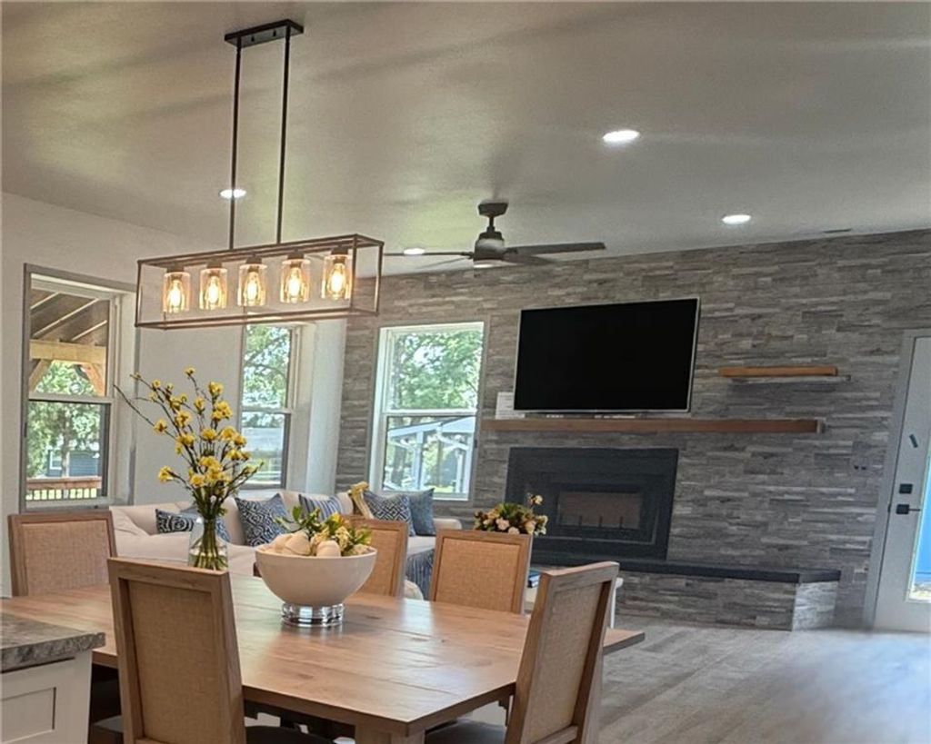 Welcome to this stunning custom modern home where style, comfort, and functionality meet. Set on 0.52 acres of flat, freshly cleared and seeded lawn, this property combines two lots officially rezoned into one expansive parcel. Designed for everyday living or weekend escapes, this 3-bedroom, 2.5-bath retreat blends modern convenience with peaceful lake living. Start or end your day on the expansive 50' x 8' covered patio perfect for enjoying winter lake views and fresh air. Inside, the open floor plan flows seamlessly from the family room to the kitchen, ideal for entertaining. A 42 wood-burning fireplace with floor-to-ceiling ledge stone tile and a custom live-edge mantel adds warmth and rustic charm. A chefs kitchen includes a 36" five-burner propane cooktop, new appliances, an oversized granite island, and a walk-in pantry with ample storage. A stylish half bath sits off the kitchen, while the laundry/mudroom connects to the backyard perfect for unloading lake gear. This space features built-ins, room for side-by-side laundry, and a stainless steel tankless propane water heater with a recirculating system for instant hot water. The private primary suite includes an ensuite bath, custom walk-in closet, and a full-light door to the backyard. Two additional bedrooms are located on the opposite side of the home and share a guest bath with an oversized soaking tub great for relaxing after a day on the lake. The 51' x 27' fully finished garage features four oversized garage doors (2qty: 10' x8' / 1qty: 17'6 x 8') with windows and I-Drive openers, 12' ceilings, and space for boats, golf carts, vehicles, or even a lift. Its pre-wired for a mini-split system for year-round comfort. A full concrete approach provides easy access, and an oversized RV pad with 50/30/110 amp service supports guests or your next adventure. This one has it all! *Seller Disclosure *Transferable Warranties *Plot Map *Recreational Vehicles Private Showing 913-735-3123 / 760-550-1231