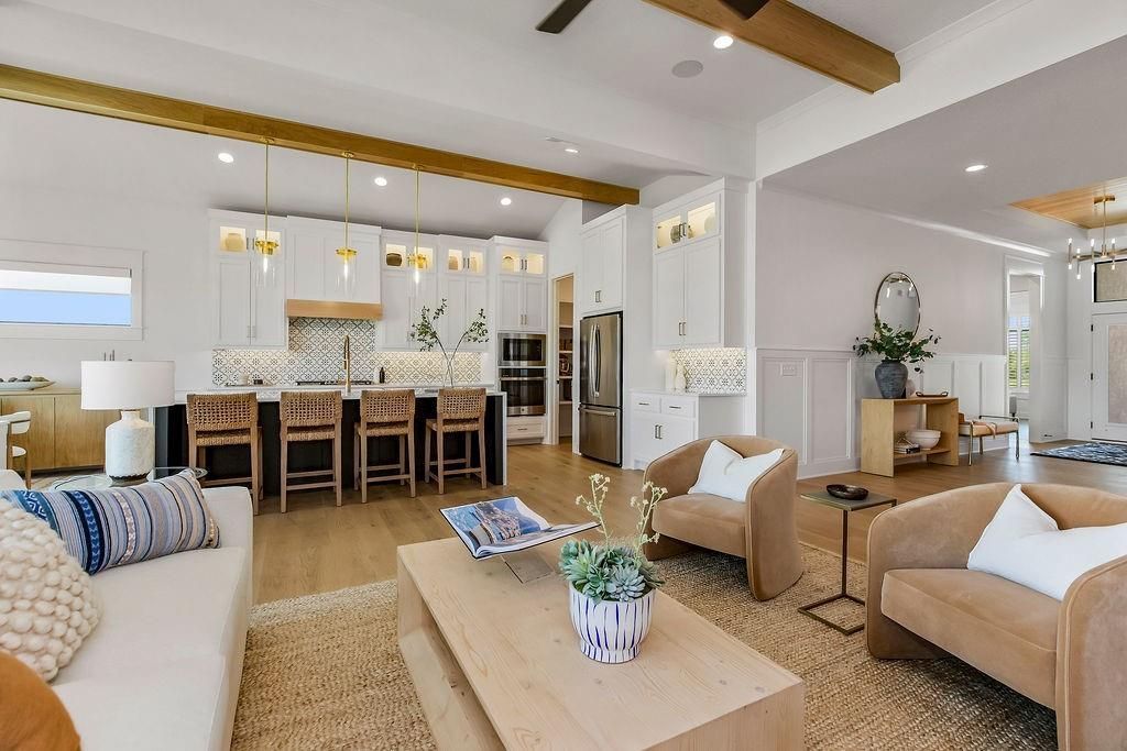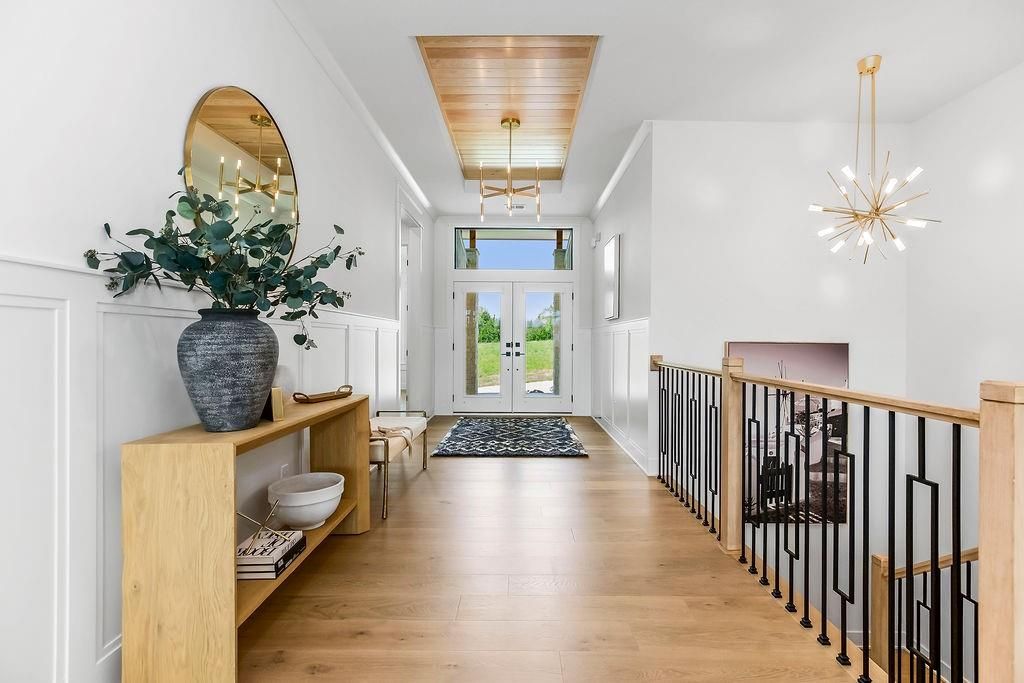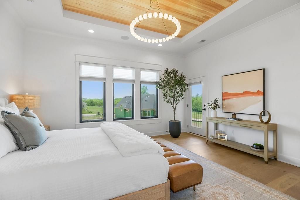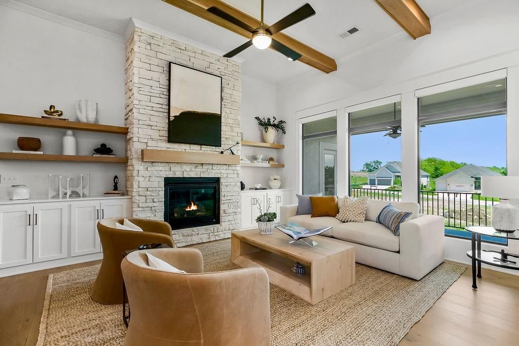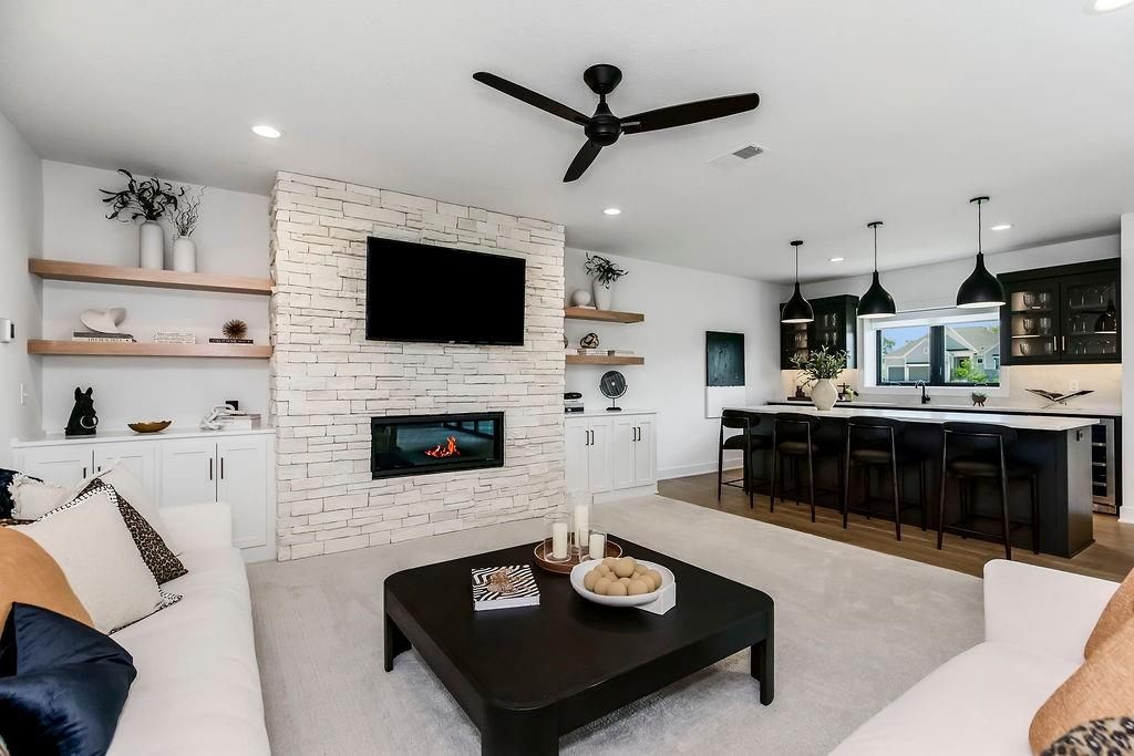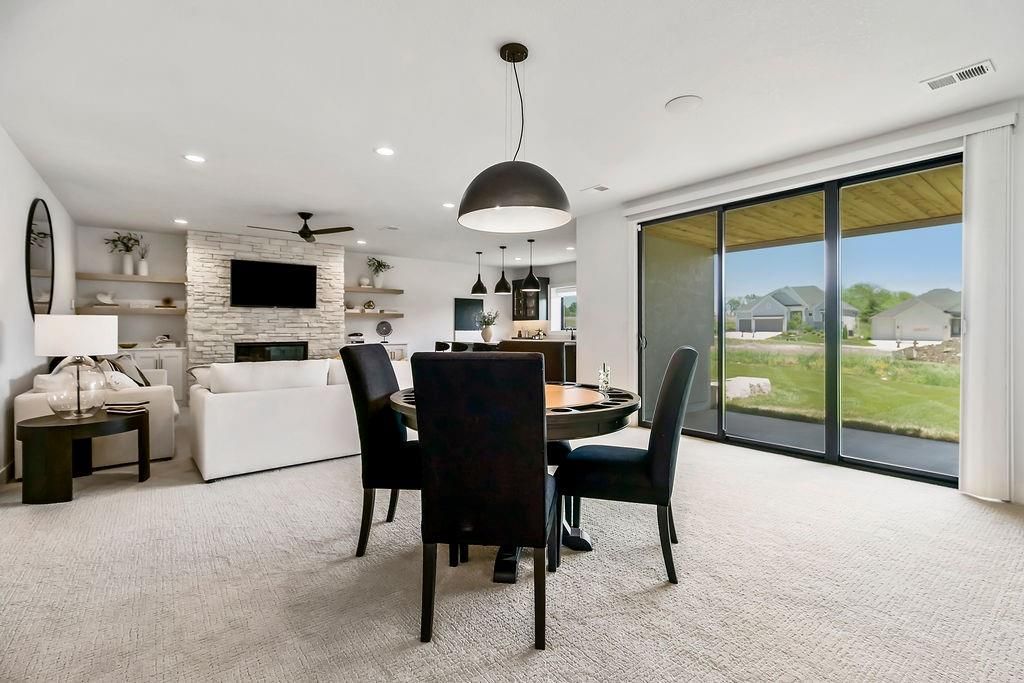 Introducing The Chesapeake IIX by Hilmann Homes - the builder's personal residence and a showcase of thoughtful design and elevated craftsmanship. This stunning 5-bedroom, 3.5-bath reverse 1.5 story plan offers a luxurious and functional layout perfect for everyday living and entertaining. The main level features a serene primary suite with a sparkling spa-like bathroom, complete with a free-standing tub, an oversized shower, and a custom walk-in closet with built-in dresser and quartz countertops. Two additional bedrooms on the main level provide flexibility for guests, family, or a home office setup. The heart of the home is the beautifully appointed kitchen, designed with both style and function in mind. A true entertainer's dream, it includes a pantry outfitted with abundant cabinetry, a prep sink/coffee bar - offering both convenience and elegance. The lower level extends the living space with a spacious recreation and media room featuring a sleek linear fireplace with stone surround. A custom bar with an oversized quartz island and wine fridge makes this the perfect space for hosting. Two additional bedrooms share a well-appointed bathroom with a double vanity and tiled shower, while a separate half bath is ideal for guests. A flex room offers the perfect spot for a game room, gym, or hobby area. Walk out to the covered patio and enjoy seamless indoor-outdoor living. No detail was overlooked - upgrades throughout include designer tile, quartz surfaces, premium plumbing fixtures, statement lighting, high-end appliances, luxury flooring, detailed trim work, upgraded HVAC systems, and more. This home is a true masterpiece combining comfort, innovation, and elegance. This is a rare opportunity to own a home where every detail has been thoughtfully curated by one of the area's premier builders. Welcome Home.