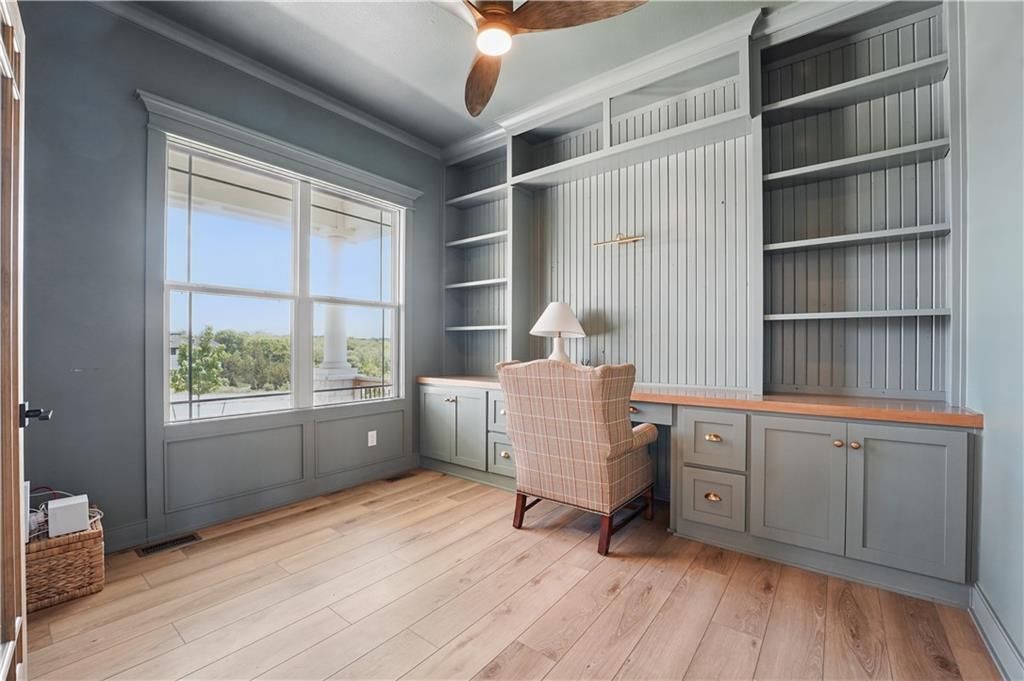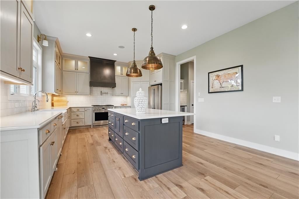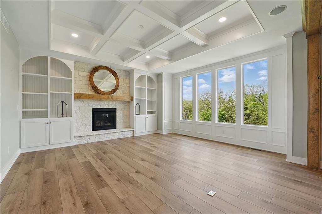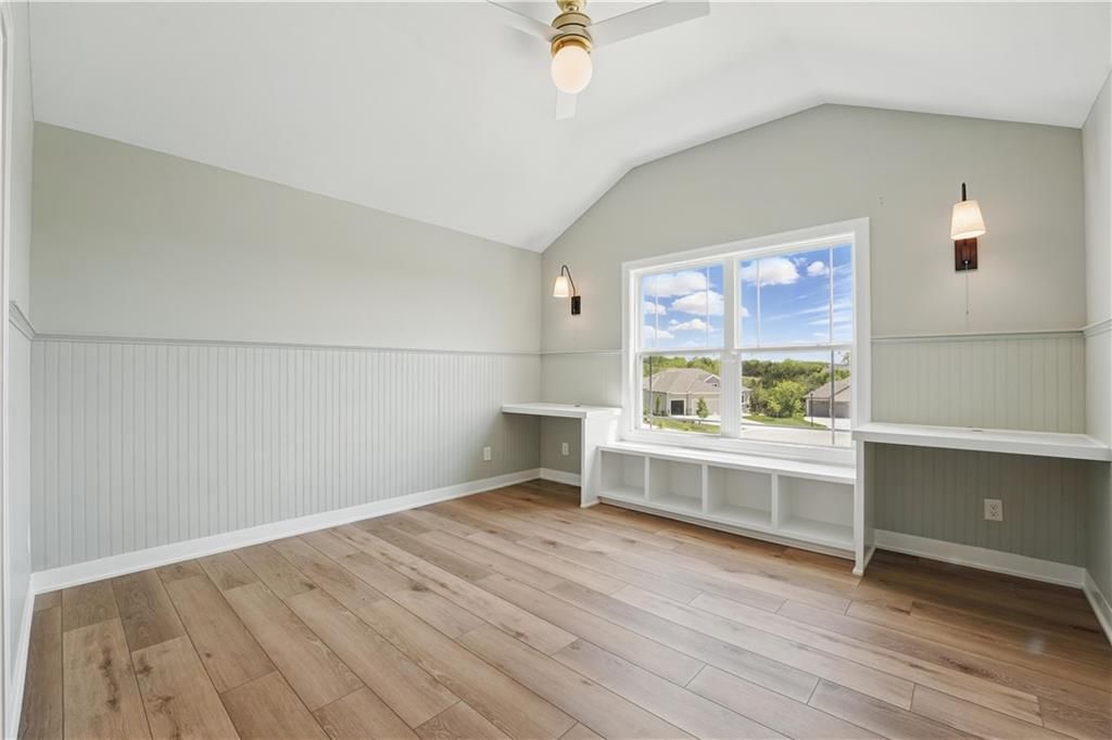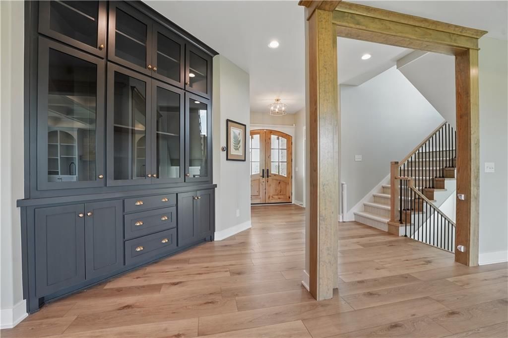 Award winning selections in Cedar Creek! Do you want a new home without the stress or the wait that goes with new construction? This is your chance! This is a rare opportunity to own an award-winning Gabriel Homes - Makenna 2 story that is less than 2 years old. Sitting on one of the best lots in Valley Ridge - backing to a beautiful, treed greenspace. It's better than new, with the highest of finishes throughout! Step inside through the stunning double door entry into the main floor featuring 10-foot ceilings throughout. The main level office has been upgraded with custom built-ins along with double glass French doors. The expanded great room showcases a large gas fireplace with custom built-ins on either side, coffered ceiling treatment, and a wall of windows featuring upgraded wainscotting. The gourmet kitchen is every chef's dream, featuring beautiful floor to ceiling cabinets, a high end gourmet gas range, a huge walk-in pantry with a grocery pass-through, and an expanded island, perfect for entertaining. Off the main living area, you'll find a covered deck that looks out over the trees, ideal for your morning coffee or evening relaxation. Upstairs, the primary suite is absolutely incredible. It's oversized with a huge walk-in closet and has a bonus closet perfect for seasonal clothing or secure storage. The primary suite bathroom feels like your very own spa with heated tile floors, double vanities, a luxurious soaker tub, and a large shower with his and her sides. Every detail on this home has been meticulously selected! Cedar Creek features a 65 acre private fishing/canoeing/kayaking lake. 3 resort-like swimming pools, a 2 story clubhouse with NBA basketball grade court that is also set up for year round pickleball or volleyball, several outdoor tennis and pickleball courts, sand volleyball court, along with miles of walking trails! Come see why Cedar Creek is one of the most sought-after communities to call home in Johnson County!