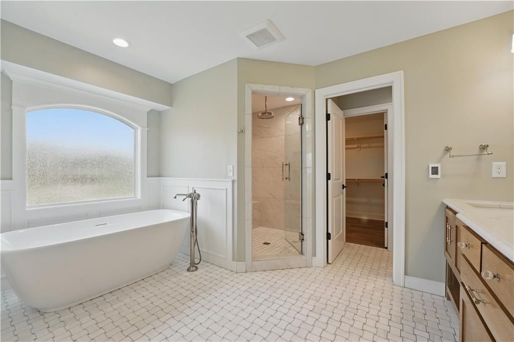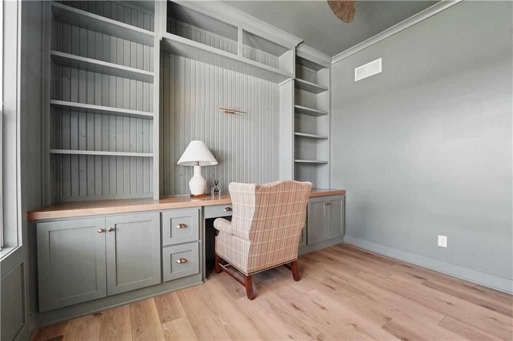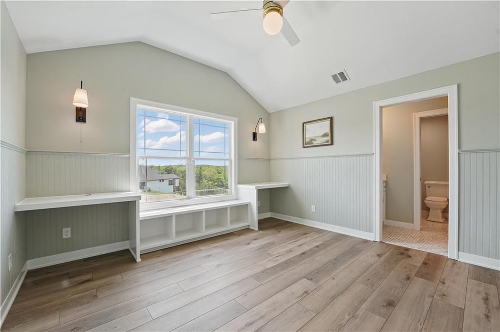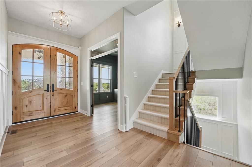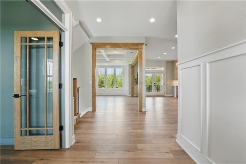 Award winning selections in Cedar Creek! Do you want a new home without the stress or the wait that goes with new construction? This is your chance! This is a rare opportunity to own an award-winning Gabriel Homes - Makenna 2 story that is less than 2 years old. Sitting on one of the best lots in Valley Ridge - backing to a beautiful, treed greenspace. It's better than new, with the highest of finishes throughout! Step inside through the stunning double door entry into the main floor featuring 10-foot ceilings throughout. The main level office has been upgraded with custom built-ins along with double glass French doors. The expanded great room showcases a large gas fireplace with custom built-ins on either side, coffered ceiling treatment, and a wall of windows featuring upgraded wainscotting. The gourmet kitchen is every chef's dream, featuring beautiful floor to ceiling cabinets, a high end gourmet gas range, a huge walk-in pantry with a grocery pass-through, and an expanded island, perfect for entertaining. Off the main living area, you'll find a covered deck that looks out over the trees, ideal for your morning coffee or evening relaxation. Upstairs, the primary suite is absolutely incredible. It's oversized with a huge walk-in closet and has a bonus closet perfect for seasonal clothing or secure storage. The primary suite bathroom feels like your very own spa with heated tile floors, double vanities, a luxurious soaker tub, and a large shower with his and her sides. Every detail on this home has been meticulously selected! Cedar Creek features a 65 acre private fishing/canoeing/kayaking lake. 3 resort-like swimming pools, a 2 story clubhouse with NBA basketball grade court that is also set up for year round pickleball or volleyball, several outdoor tennis and pickleball courts, sand volleyball court, along with miles of walking trails! Come see why Cedar Creek is one of the most sought-after communities to call home in Johnson County!