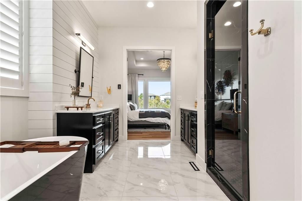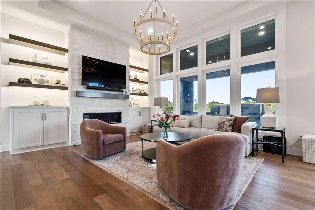 BUILDER"S PERSONAL HOME-- Welcome to your dream home! This exquisite property boasts 5 bedrooms, 5.5 baths, and 4,591 sq ft of luxurious living space, seamlessly blending elegance, comfort, and modern design. Nestled in the Valley Ridge section of Cedar Creek, this home offers an open-concept layout perfect for both everyday living and entertaining. The gourmet kitchen is a chef's delight, featuring high-end stainless steel appliances, sleek quartz countertops, a spacious island with a breakfast bar, and ample cabinetry for all your storage needs. The expansive living area impresses with vaulted ceilings, large windows that flood the space with natural light, and a stunning stone fireplace, creating a warm and inviting atmosphere. Step outside to a beautifully treed backyard, complete with a covered patio and an outdoor kitchen for al fresco dining. An ideal space for relaxation or hosting gatherings with friends and family. The master suite is a true sanctuary, offering a generous walk-in closet and a spa-like en-suite bathroom with dual vanities, a deep soaking tub, a glass-enclosed shower, and premium fixtures. Four additional bedrooms provide ample space for family or complemented by five well-appointed full baths and a convenient half bath, all with modern finishes. The lower level features a dedicated office in the basement, bar and rec room for hosting. Throughout, rich hardwood floors and thoughtful details elevate the space. A three-car garage offers plenty of room for vehicles and storage, while energy-efficient upgrades ensure year-round comfort and savings. Located just minutes from top-rated schools, scenic parks and convenient dining options, this move-in-ready home combines luxury with practicality. Whether you're enjoying a quiet evening by the fireplace, a barbecue on the outdoor kitchen, or enjoying the scenic back yard, this property has it all. Don't miss your chance to own this exceptional residence.