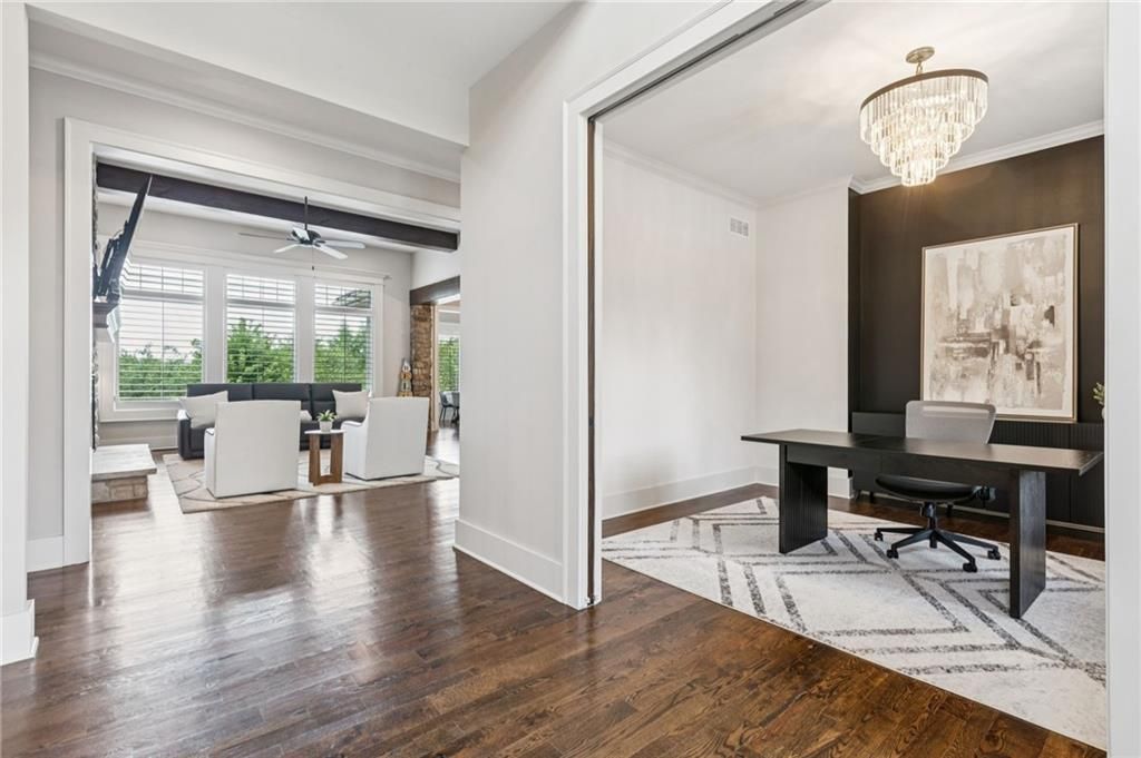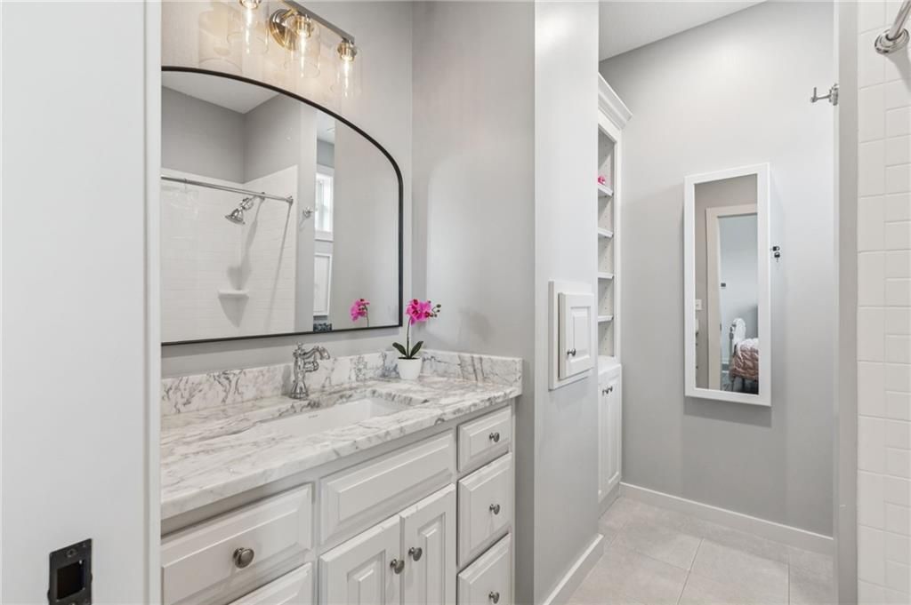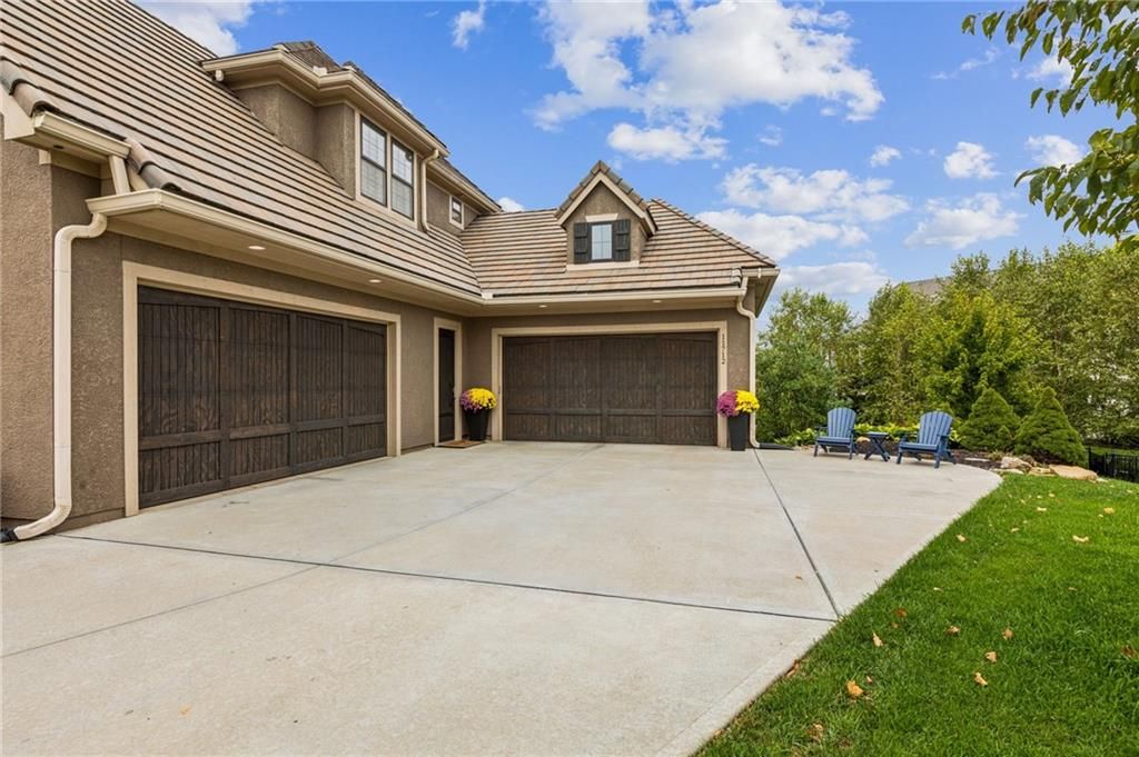 Your chance to own a true masterpiece in Overland Park's premier luxury community - Mills Farm! This one-of-a-kind custom Todd Hill home combines timeless elegance with modern comfort on a rare, private cul-de-sac lot backing to greenspace. Featuring 5 bedrooms, 6.1 baths, and a rare 4-car epoxy-finished garage, every detail has been thoughtfully designed and meticulously maintained. Step inside through brand-new double doors into an impressive foyer with a sweeping curved staircase, newly replaced high traffic stair carpet, and updated chandelier. A dedicated office with hidden glass pocket doors overlooks the landscaped front yard, while the chef's kitchen boasts a massive island, walk-in pantry with grocery door, and seamless flow into the great room with stone fireplace and stained beams. Walk out to the low-maintenance covered deck with inviting fireplace and separate grilling space, perfect for entertaining. The main-floor primary suite offers a private retreat with spa-like bath, dual vanities, and euro shower. Upstairs, three large bedrooms each feature hardwoods, private en-suites, and massive walk-in closets. Don't forget to see the hidden room behind the custom built book shelfs. The finished walkout lower level is designed for entertaining, with a stunning wet bar, rec room, billiards area, 5th bedroom, full bath, and access to a stamped concrete patio perfect for outdoor entertaining. Enjoy serene views from your expansive, treed backyard - the perfect pool lot. Additional high end features include: stone columns, wood beams, plantation shutters, custom ceiling treatments, intricate millwork, upgraded lighting, and a durable tile roof. All just a short walk to the community pool, clubhouse, and award-winning elementary school. Don't miss your chance to view this incredible home!