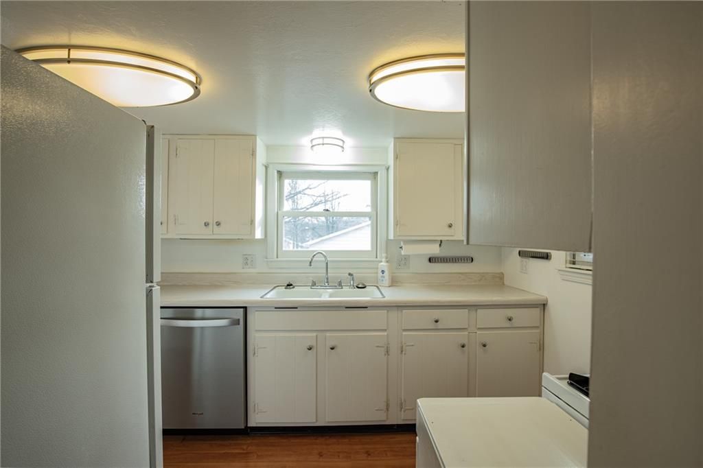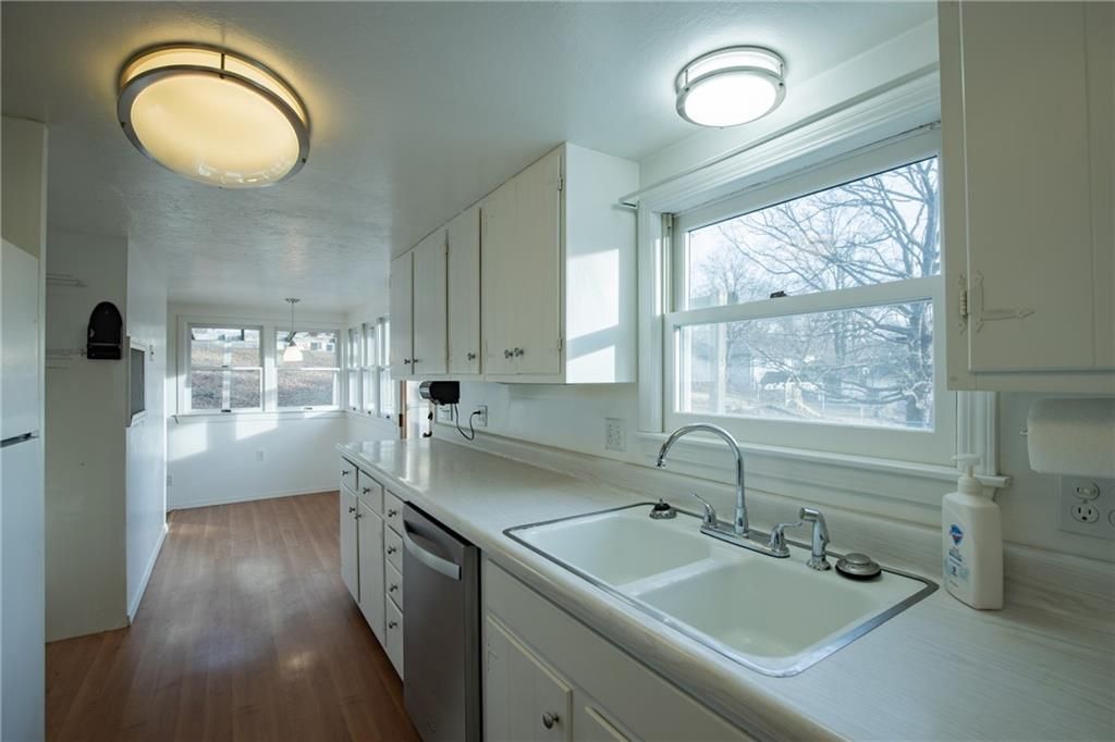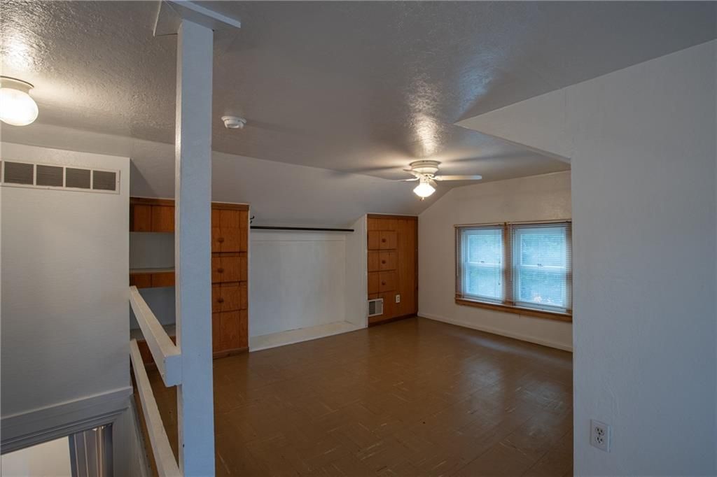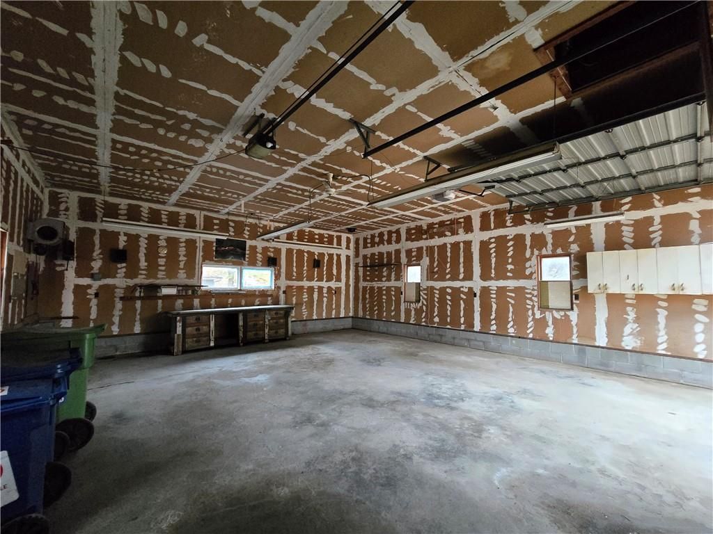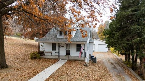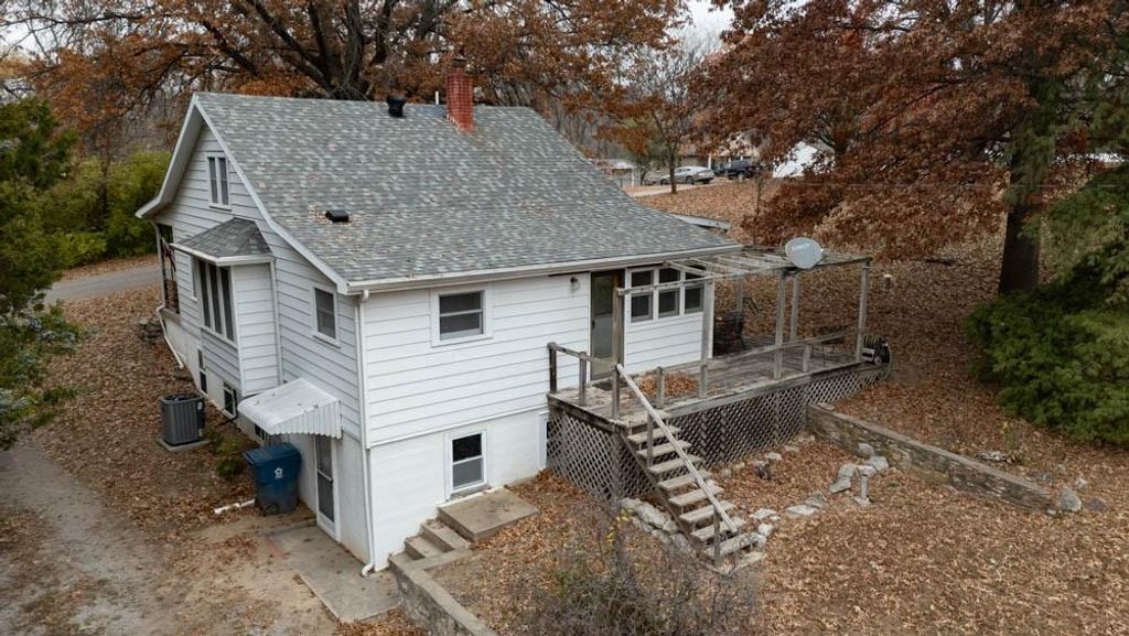 Mechanics Dream Garage with 10 foot garage doors and holds up to 4 small cars or two larger vehicles with room to spare! Same owner for almost 60 years! Lovingly maintained Farmhouse style Bungalow is bright and cheerful with loads of natural light throughout! Main floor primary bedroom with en suite bathroom. Cozy living room and dining areas lead to the galley style kitchen overlooking your beautiful back yard consisting of a total of 5 combined lots with beautiful plants and trees! You will love the covered front porch overlooking the front yard. There is a wrap around deck on the back and side of the home connecting to the beautiful Sun Room. Need a third bedroom? Per the owner, the sun-room is capable of connecting to the furnace and AC for heating and cooling and could be a third bedroom if you add a closet. The second bathroom is between the dining room and sun-room and has a shower. The second floor boasts a large bedroom with an abundance of built in drawers and closets and could easily accommodate 2 beds. The basement is unfinished but is a walk out and has plenty of windows on the west side. It could easily be finished as a family room or additional bedroom space. There is another set of washer and dryer hook ups in the basement if you prefer. The HVAC was installed in 2016 and the roof appx 10 years ago. For those you dream of additional green space, you will love the large lot between you and the east neighbor!