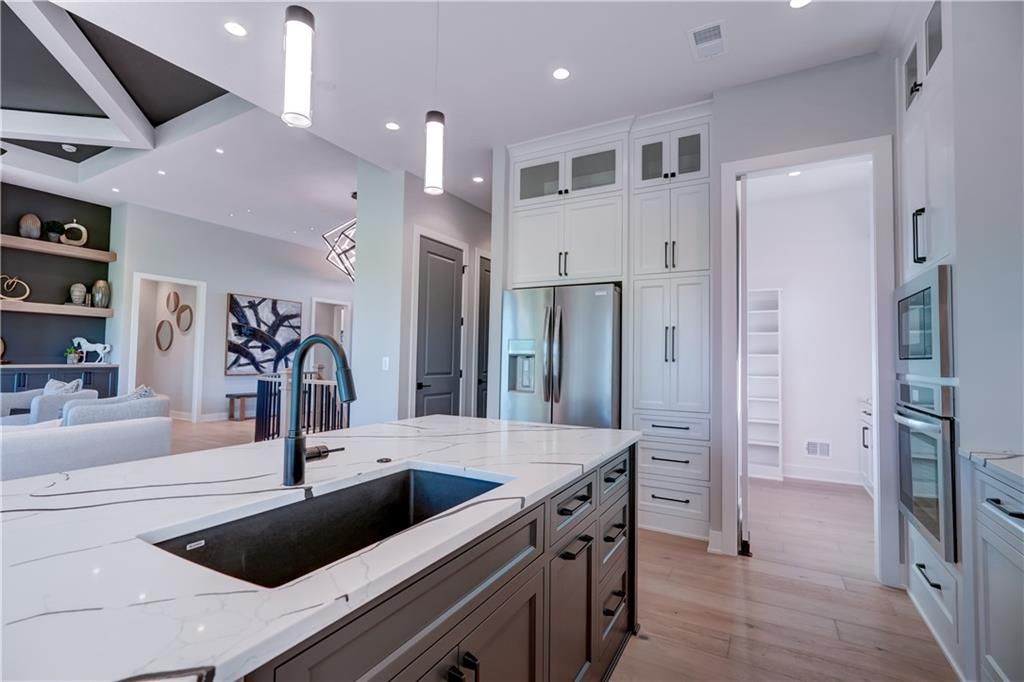 Step into a home where craftsmanship meets innovation, nestled in the heart of the Lake Winnebago community. From the moment you walk in, you'll sense this isn't just another house - it's a custom-built masterpiece, designed for those who appreciate the finest details. Every inch of this 4-bedroom, 3-bath, 3,298 SF residence whispers luxury. White oak cabinets and wood accents provide a rich backdrop, while soft-close drawers, flush-mount cabinetry, and custom engraved light switches showcase Jameson Homes' meticulous attention to detail. Thoughtfully integrated LED backlighting creates ambiance throughout, setting the mood with personalized lighting scenes at your fingertips. Downstairs, you will find a media and game area, while a large storage space ensures everything has its place. The upgraded manifold plumbing system, Leviton electrical panel, and Hunter irrigation system reflect the high-performance engineering behind the walls. Step outside to a covered porch perfect for morning coffee or evening gatherings, then explore all Lake Winnebago has to offer - boating, fishing, walking trails, horse stables, tennis and basketball courts, with a new community pool on the horizon.
