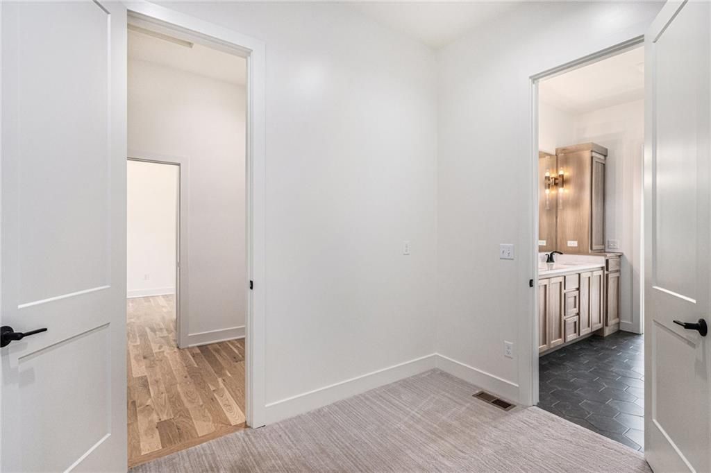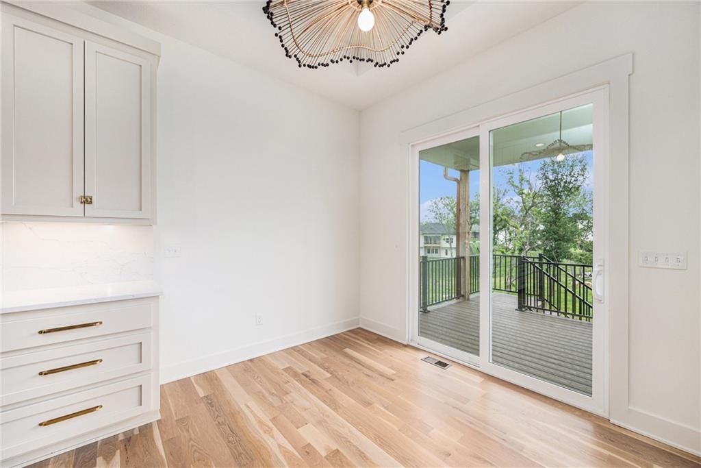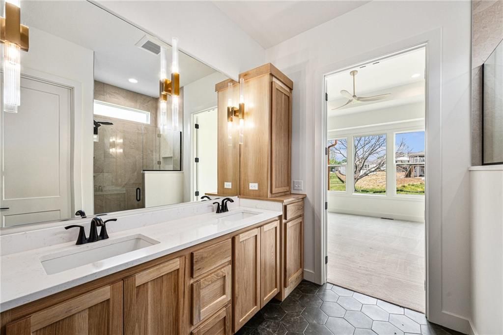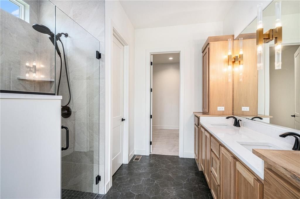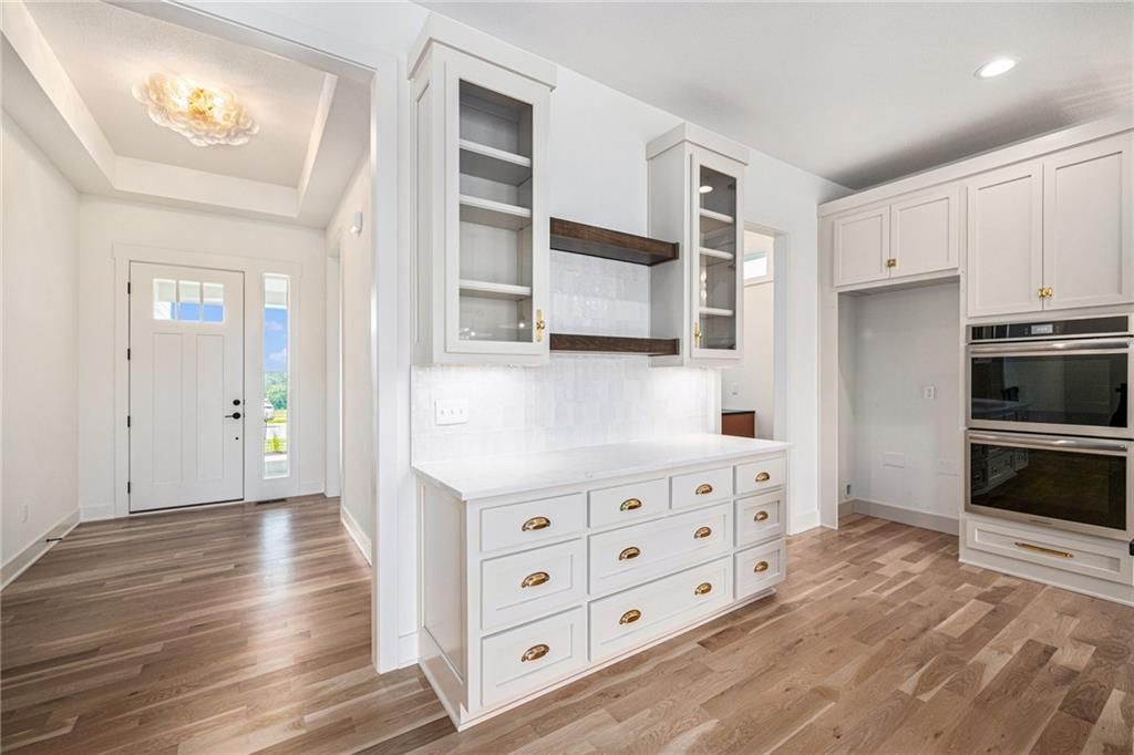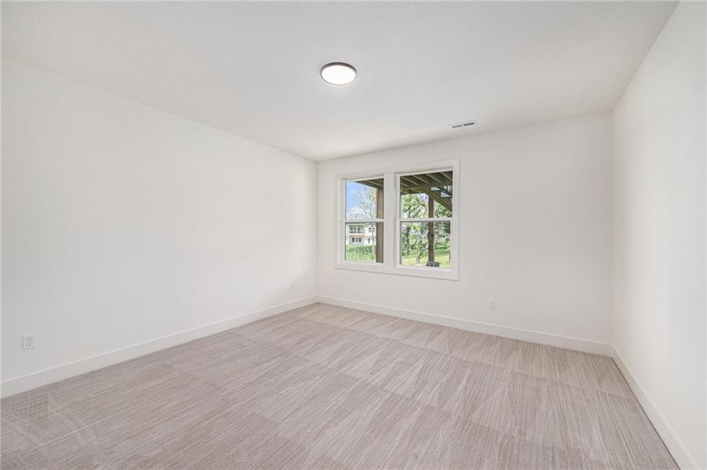 Custom 4 bedroom, 3 bath Fairfield reverse 1.5 story home built by Inspired Homes. Greeted into a foyer with tray ceilings. First bedroom and full bath at the front of home perfect for a guest space or home office. Flow into an open main level with 10 ft ceilings and 8 ft doorways. Upgraded kitchen with over-sized island, walk-in pantry, coffee bar, custom vent hood, quartz countertops & backsplash, Frigidaire gallery appliances including dishwasher, dual ovens, & 5 burner gas range. Home features an upgraded lighting and hardware package. Spacious living room w/ custom fireplace, & built-ins. Walk out to a 10x20 covered deck. Primary bedroom w/ walk-in closet & en-suite bath. Bath complete w/ tiled floors, zero entry walk-in shower, & dual vanities. Lower level hosts 2 bedrooms, full bathroom, family room, & wet bar. Contemporary exterior w/ white stone & copper gutters. White oak hardwood floors on main level. Neighborhood amenities include swimming pool, play area, & walking trail. Platte County School District.