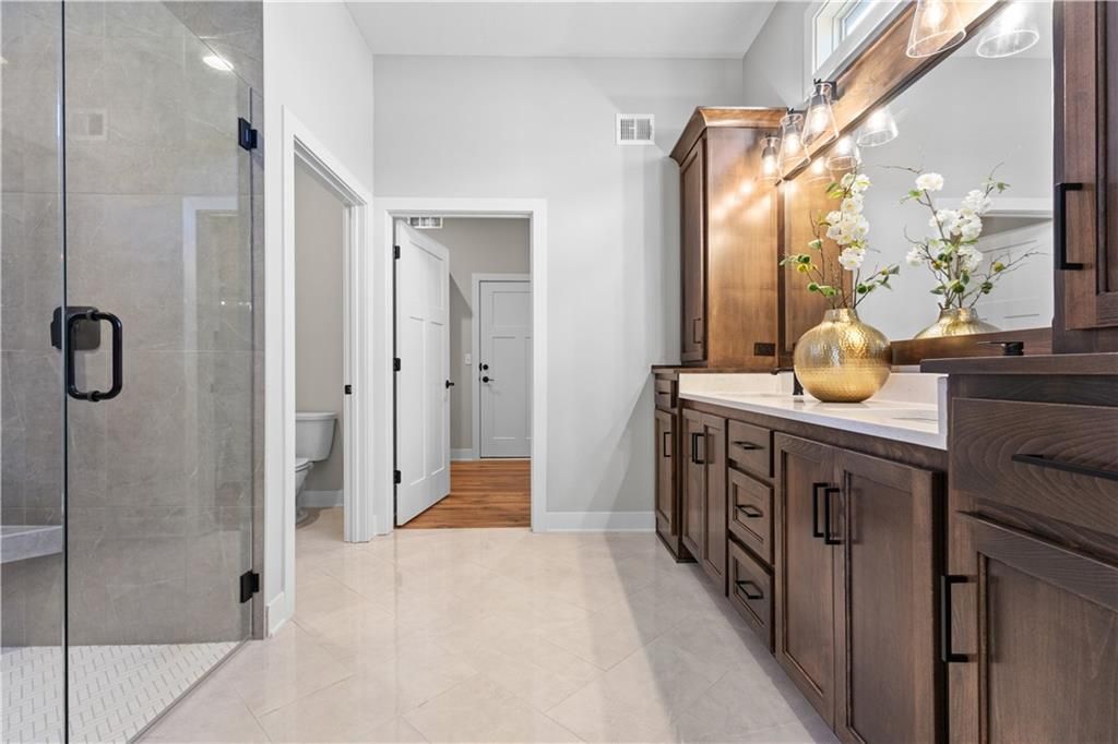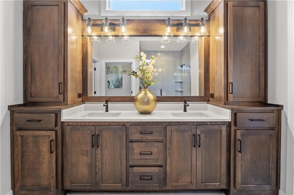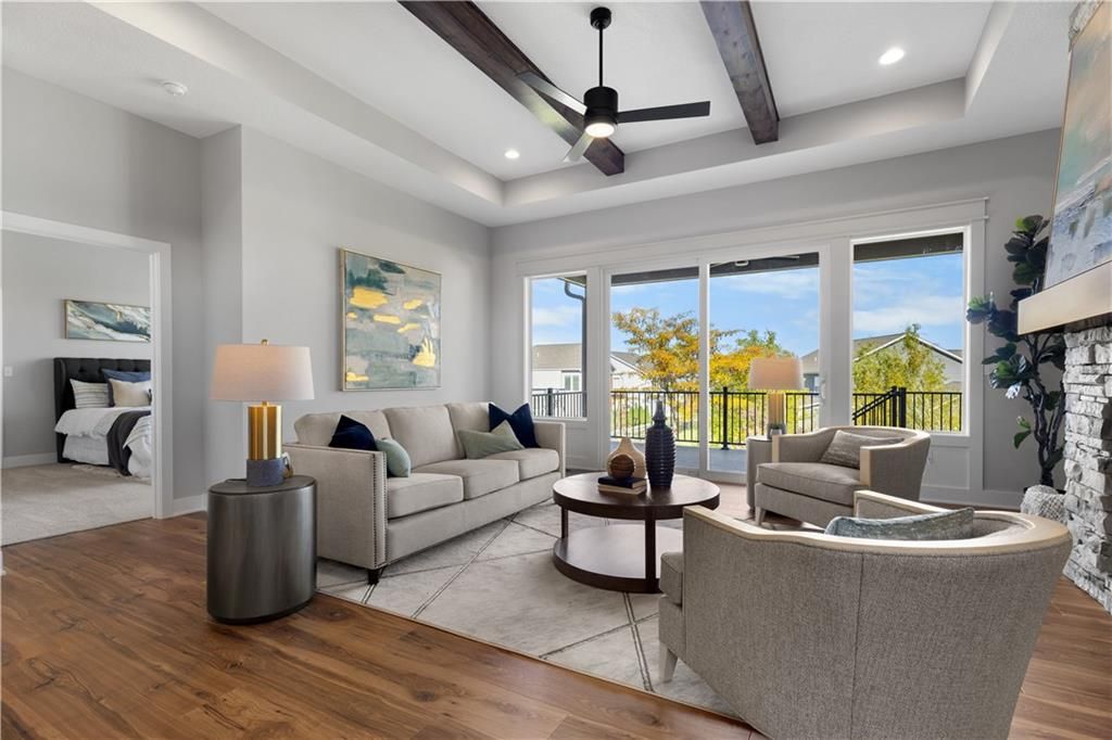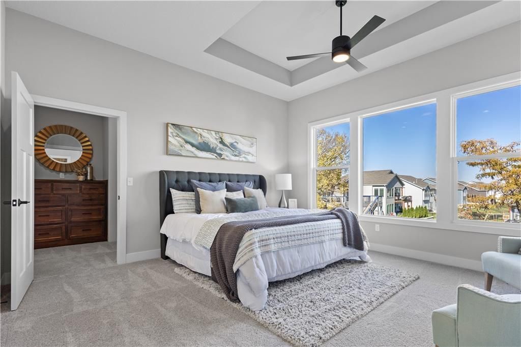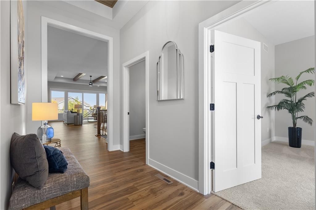 Welcome to the Sonoma Contemporary Plan! This unique reverse plan boasts TWO primary suites on the main level, each with its own private ensuite bathroom! The main primary suite is designed with luxury in mind, featuring a zero-entry shower and a huge walk-in closet with custom shelving and a built in dresser! Your guests will also have a private bath on the main level, allowing convenience and ideal for multi generation homes looking for all one level living! The laundry room is located on the main level, with entry from the primary bathroom, as well as an added mudroom. This home offers wide doorways throughout the main floor and a gorgeous kitchen with upgraded quartz counter tops and plenty of beautiful custom cabinets! The 10-foot ceilings on the main level are highlighted by a stunning modern tile floor fireplace in the great room, a wood tray ceiling and bonus 8x8 sliding door to walk out onto the oversized deck and enjoy the wonderful views! The lower level of the home offers the ULTIMATE entertainment area: with an oversized rec room, a modern wet bar, two large bedrooms, and a full bath, the Sonoma offers one of the best basements for additional family and guests to enjoy their own space, or for your the ideal space to host events and gatherings! Walk out to enjoy your beautiful lot that backs to green space , With your choice to relax on the oversized covered patio or deck plenty of room to enjoy outdoor activities! With an oversized 24' deep 3 car garage this room has plenty of storage and overall space for your needs. Located in the Running Horse Subdivision and Unincorporated Platte County this home offers Location, Modern Style , Craftsmanship , and so much more you must see this one before its gone! UNDER CONSTRUCTION--Completion estimated August 2025.