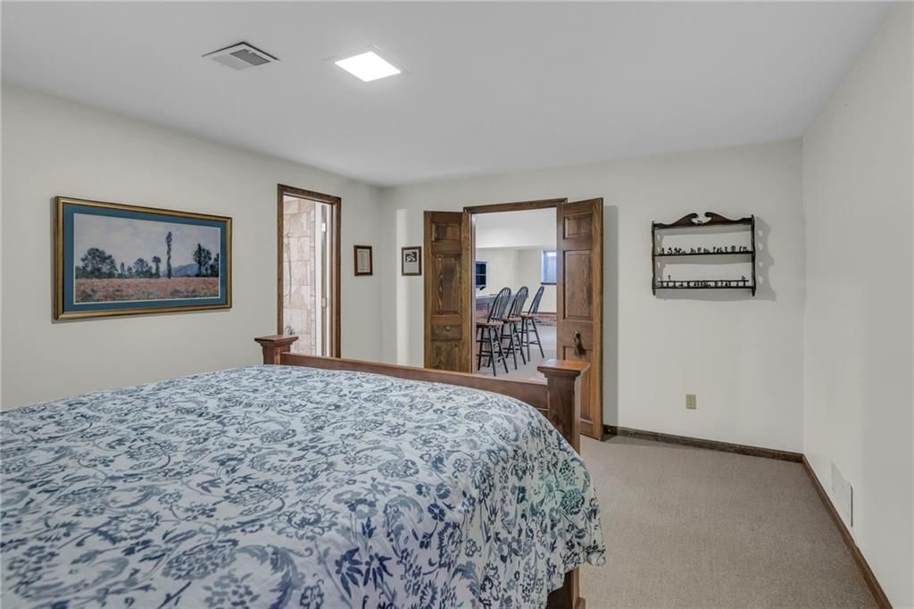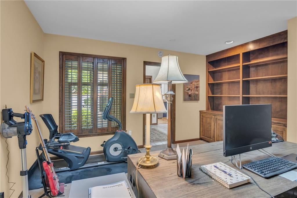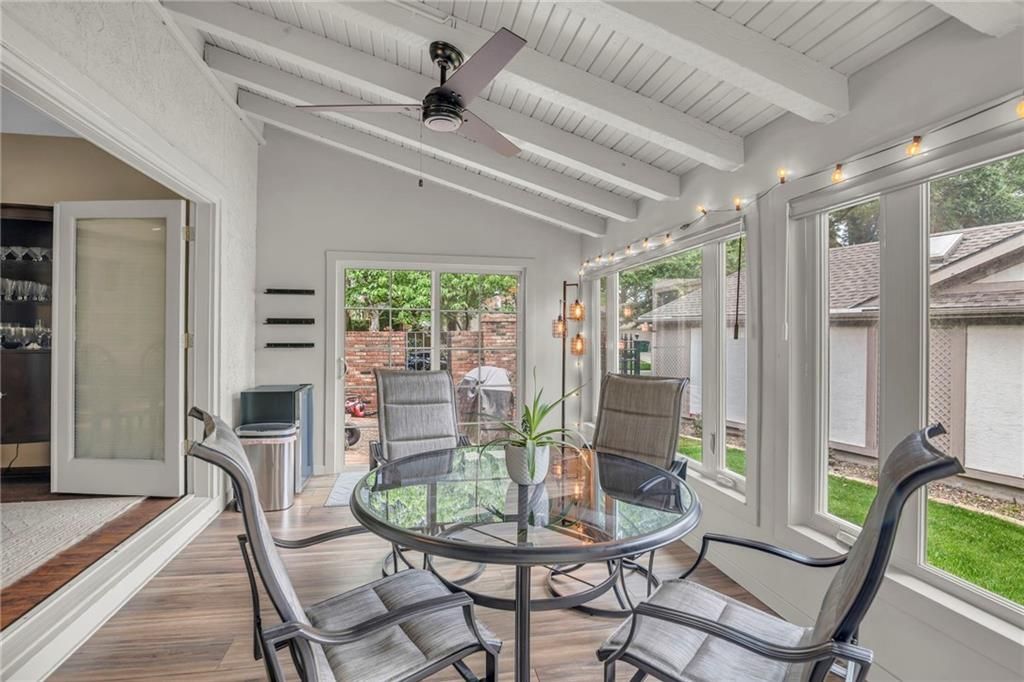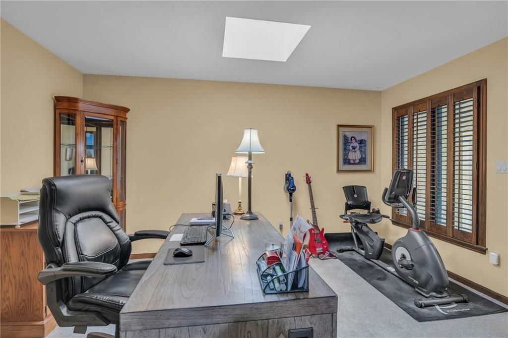 Welcome to this stunning reverse 1.5-story home located in the sought-after maintenance-provided section of Leawood South! This home offers an impressive open-concept floorplan flooded with natural light. Character and craftsmanship abound in the expansive living and dining rooms, showcasing a beautiful boxed beam ceiling and custom built-in bookcases. The brand new sunroom invites you to enjoy the outdoors year-round from the comfort of a glass-enclosed retreat. The spacious primary suite features direct access to a private patio and a luxurious en suite bath complete with a double sink vanity and an onyx shower. Perfect for entertaining, the finished lower level boasts a huge recreation room with a stylish wet bar, kitchenette, and a cozy fireplace. A non-conforming third bedroom, complete with a full bath and cedar closet, offers privacy and flexibility. Need more space? A second office/bonus room provides additional finished living area, perfect for work or play. Recent updates include brand-new windows, enhancing comfort and energy efficiency. With exceptional space, thoughtful updates, and carefree maintenance-provided living, this home is the perfect blend of comfort, style, and convenience.