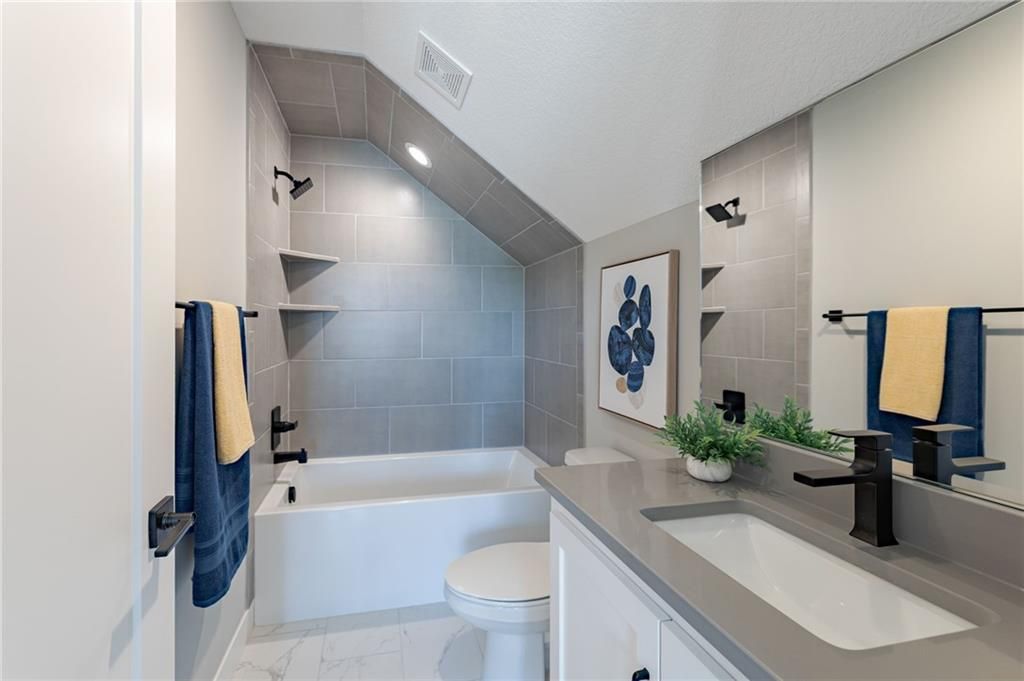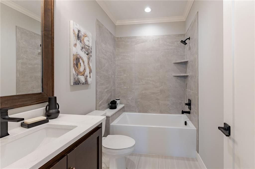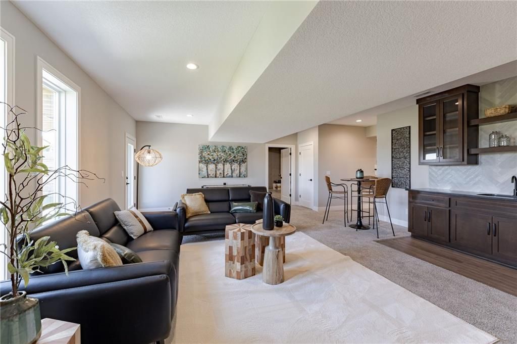 Show your distinctive buyers looking for a quality built custom home that is built with them in mind! You do not want to miss the custom finishes in this one and a half Story Triumph plan which features 5 bdrms, 5 baths on a corner lot! This home is an organizer's dream with tons of storage space!! Oversized painted 3 car garage with epoxy floor, extra large utility storage, custom closets, appliance cabinet in walk-in pantry, pull-out shelves in kitchen, Linen dresser in Master bath with large double vanity, walk-in shower. Open floor plan with lots of tile, hardwoods, quartz counters. Bedrooms 3 & 4 share loft space but each have their own bath. Finished basement boasts a bar, 5th bedroom and bath, with lots of space for entertaining. Covered deck outside with private patio area below. This home has many custom finishes and details! Home is complete and ready for occupancy.