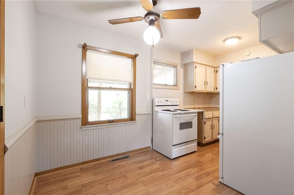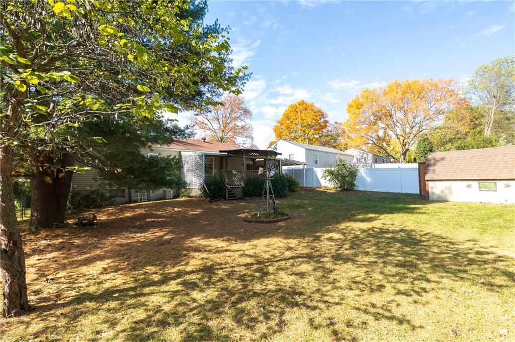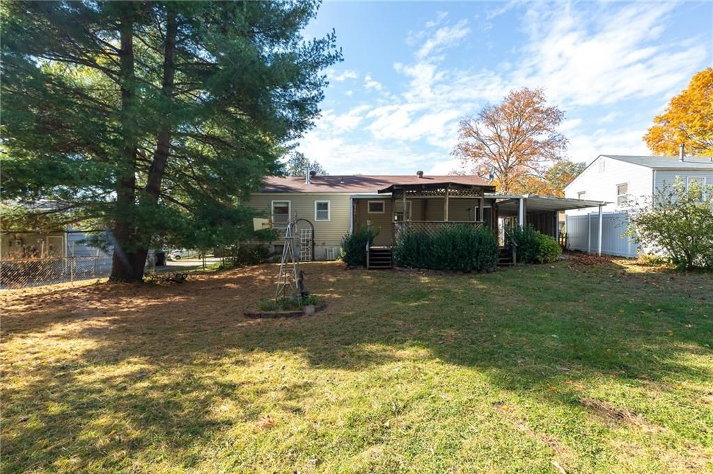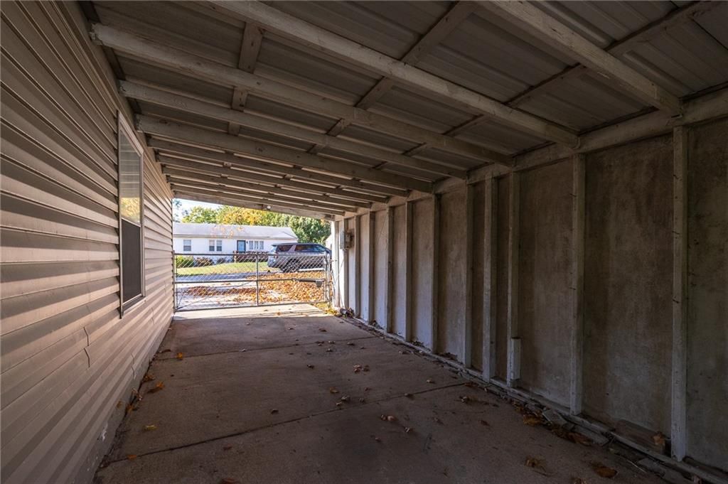 Welcome home to this vinyl siding ranch featuring 3 bedrooms with beautiful hardwood floors and new carpet (installed October 2025) in the hall and living room. The single-car garage is complemented by an attached carport with an electric gate, offering convenience and security. Enjoy main-level living with laundry conveniently located in a bedroom closet, plus an additional hookup available in the spacious 840 sq. ft. basement - ready to be finished for extra living space, a workshop, or storage. Step outside to your large covered deck, perfect for relaxing or entertaining, overlooking a fenced backyard with mature trees that provide shade and privacy. A deep extra driveway on the north side allows easy access to the back door, while the shed on a concrete pad offers the ideal space for a workshop or lawn equipment storage. With its low-maintenance exterior, flexible living spaces, and private outdoor setting, this home is move-in ready and full of potential - perfect for first-time buyers, downsizing, or anyone looking for comfortable one-level living!