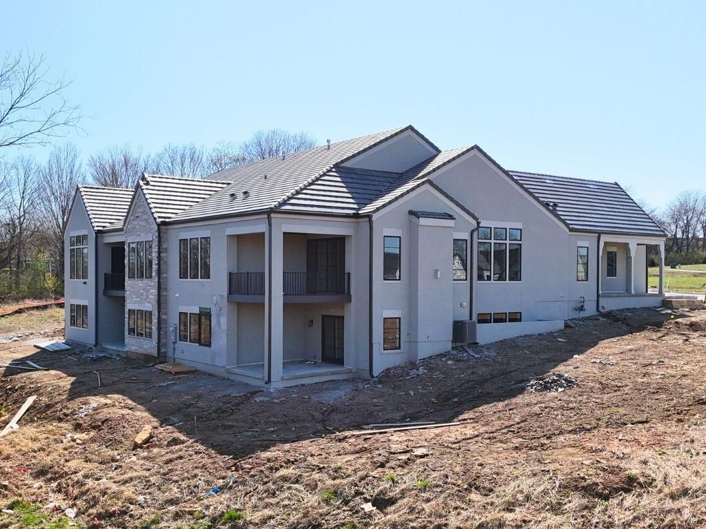 THE BELMONT EXPANDED BY LAMBIE HOMES - AVAILABLE END OF APRIL! This reverse 1.5 story paired villa offers 3,883 sq ft of luxury living on walkout Lot 9/D17 in Regents Park, AND no steps from garage into home! Set on a desirable walkout lot, this home maximizes indoor and outdoor living with a covered deck off the main level and a finished lower level that opens to a patio. It's an entertainer's dream - plenty of natural light downstairs, seamless flow to outdoor spaces, and room to host gatherings year-round. The Belmont Expanded builds on one of Lambie's most popular plans with additional square footage and a spa-inspired primary suite featuring a free-standing soaking tub and zero-entry shower. The open main level showcases tall ceilings, a chef's kitchen with custom cabinetry, oversized island, walk-in pantry, and spacious great room. With 4 bedrooms and 3 baths, the plan also includes a versatile main-level guest suite or office. The walkout lower level adds a large family room, game area, wet bar, and two additional bedrooms. Premium details include wide-plank hardwoods, quartz countertops, custom trim, and designer finishes throughout. Outside, Regents Park's signature elevated look includes stone and stucco exteriors, black concrete tile roofs, and professionally designed landscaping. As one of Leawood's last remaining luxury villa and single-family home communities, Regents Park features private amenities such as a pool and pavilion, pickleball courts, dog park, and walking trail. You're just moments from vibrant shopping and dining along 135th Street. Don't miss this rare opportunity - stop by our model home today to learn more about this home or additional inventory and building sites for both paired villas and single-family homes! Both Progress photos and images of the completed model are shown.