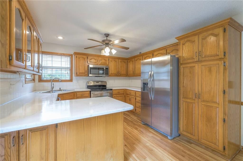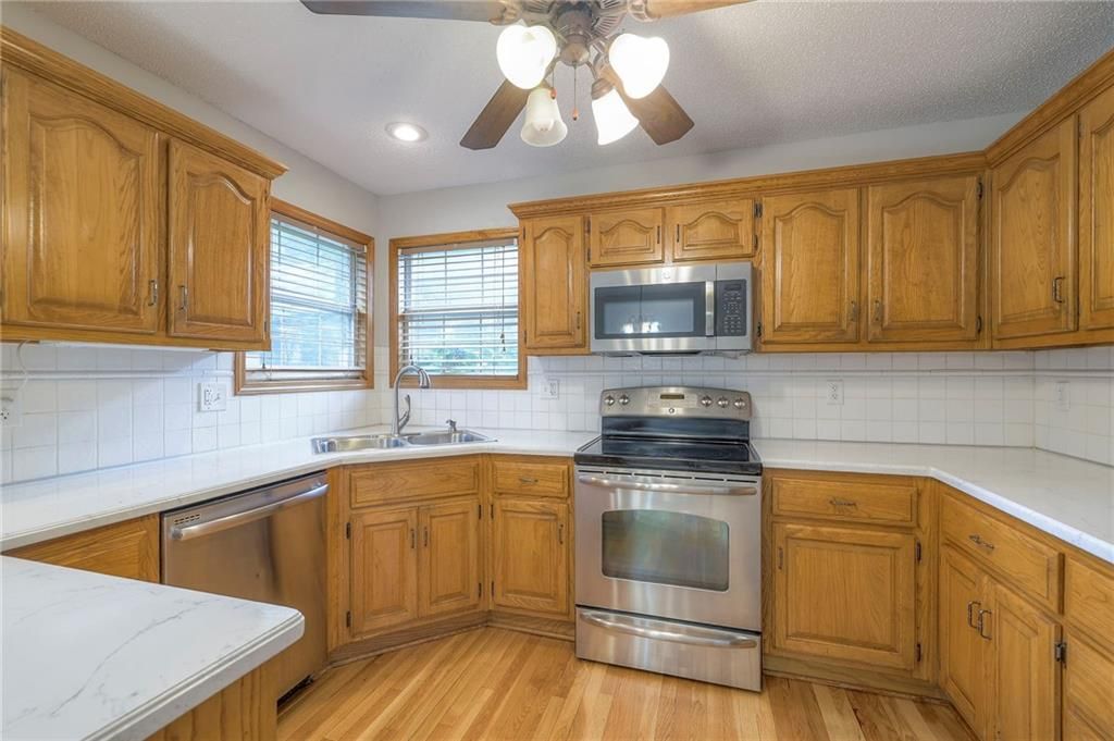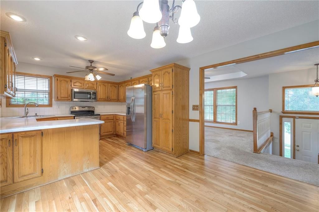 Charming 3-Bedroom Home in the Heart of Raymore! Welcome to this beautifully maintained 3-bedroom, 2.5-bath split-entry home ideally located in a desirable Raymore neighborhood. Step inside to discover refinished hardwood floors, an updated kitchen equipped with stainless steel appliances, and a spacious layout perfect for everyday living and entertaining. Enjoy peace of mind with a newer HVAC system and a roof that's only five years old. The finished basement offers additional living space - ideal for a home office, gym, or media room. Outside, a large, fully fenced backyard provides plenty of room for kids, pets, and outdoor gatherings. Don't miss this move-in ready gem - schedule your private showing today! Owner/Agent.