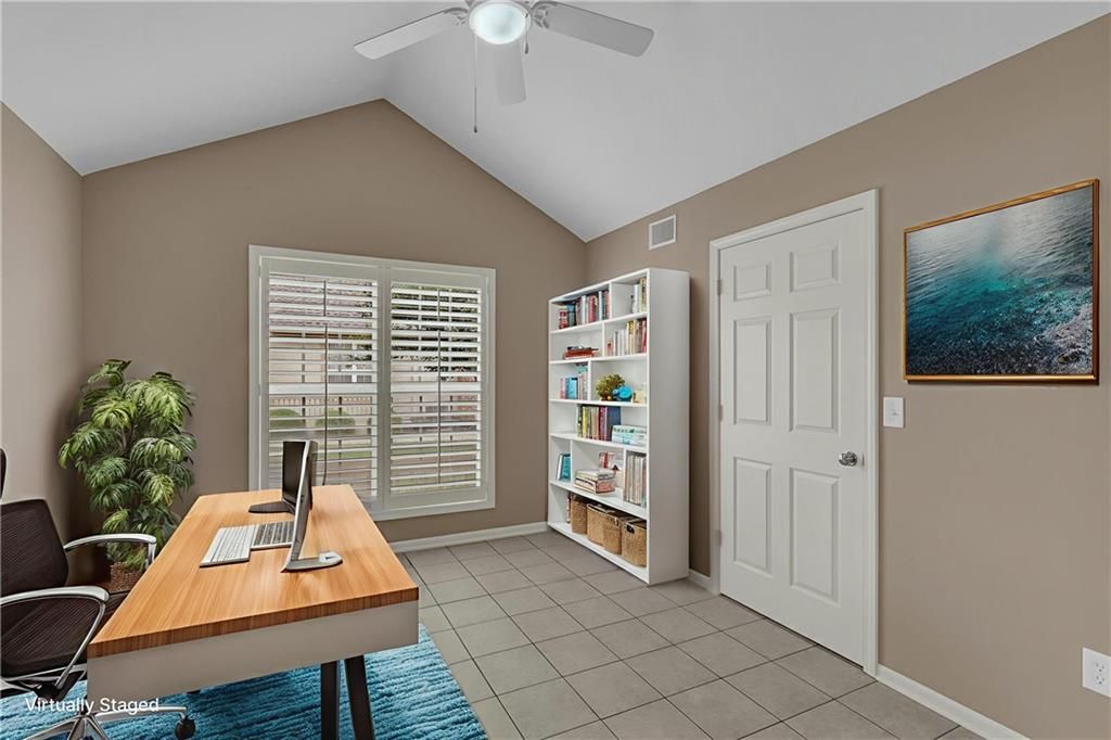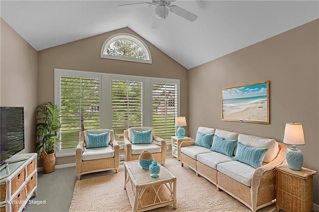 This BRIGHT and beautifully SPACIOUS 3-bedroom, 3-bathroom townhome boasts an impressive 2,643 square feet of meticulously maintained living space. From the moment you step inside, you'll be greeted by abundant natural light, tasteful finishes, and a sense of COMFORT and QUALITY that sets this home apart. The main level features plantation shutters throughout, easy-to-maintain ceramic tile flooring, and a generous Corian solid surface kitchen countertop, perfect for both everyday living and entertaining. A versatile flex room on the main floor offers the ideal space for a home office, guest suite, or additional bedroom to suit your needs. Relax year-round in the inviting SUNROOM, now featuring brand-new carpet, while taking in serene views of the quiet, green-space-backed lot, tucked away from street traffic for added PRIVACY and PEACE. Additional highlights include a spacious 2-car garage, ample storage, and the distinction of owning the largest floor plan in the community - a RARE FIND in this highly desirable neighborhood. Don't miss this opportunity to enjoy LOW-MAINTENANCE living in a tranquil, well-kept setting just minutes from local amenities.
