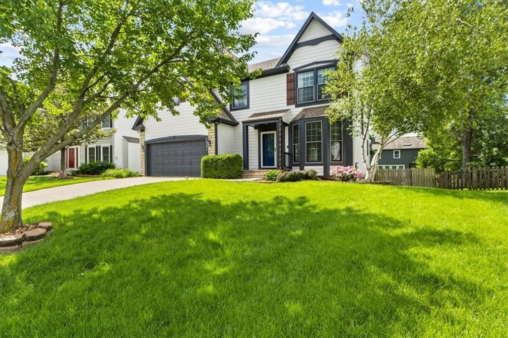 Welcome to Symphony Hills, where lifestyle meets comfort in this beautifully maintained two-story home nestled in the award-winning Blue Valley School District. Designed with flow and functionality in mind, the open-concept main floor offers seamless transitions between the living, dining, and kitchen areas - perfect for everyday living or entertaining. Enjoy the convenience of main-floor laundry and the flexibility of a finished lower level, ideal for a media room, playroom, or home gym. Upstairs, vaulted ceilings elevate the spacious bedrooms, including a generously sized primary suite with a luxurious ensuite bath. Step outside to a fully fenced backyard - ready for summer gatherings or quiet evenings under the stars. This is your opportunity to own in one of the area's most sought-after neighborhoods.