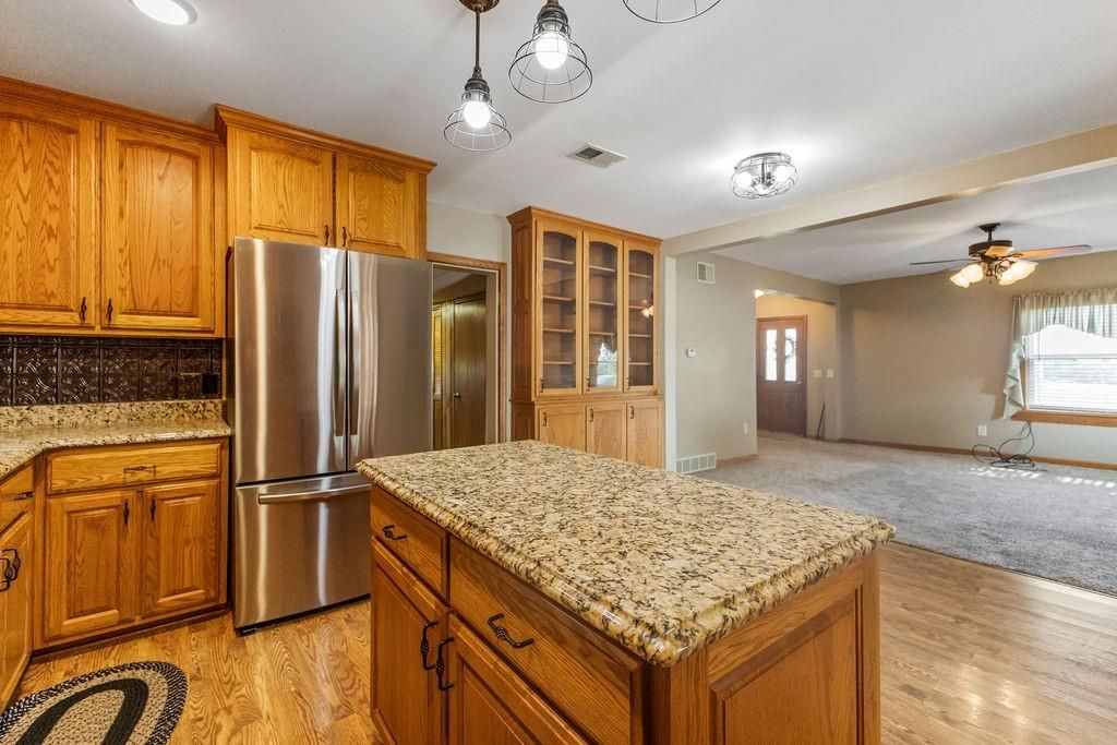 This is the property that does NOT come available very often........beautiful home......acreage.......several outbuildings.....AND on blacktop just off I-35 in a GREAT location!! 6+ acres MOL, 4 bedrooms, 2 1/2 bath, 2 car attached garage on the house with an asphalt driveway the home also has an underground storm shelter The home has a gorgeous stairway to the upstairs! The kitchen has beautiful custom oak cabinetry with outlets in each cabinet and granite countertops PLUS a 24' X 24' carport, a 30' X 15' insulated and climate controlled garage, and a 100' X 30' building with a workshop on one side and livestock pens on the other side