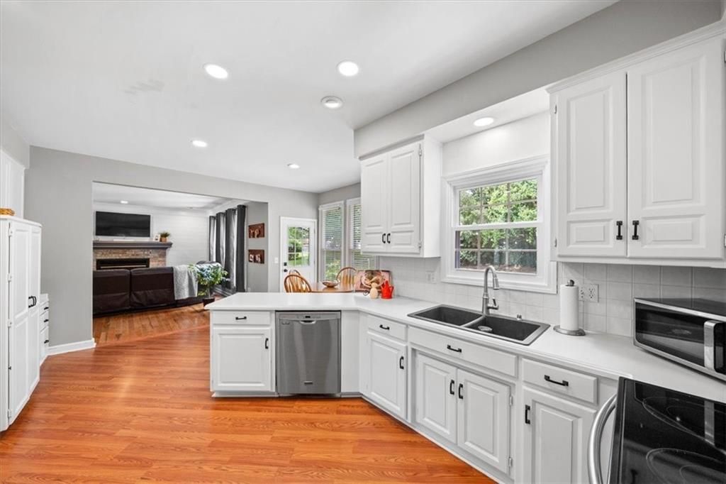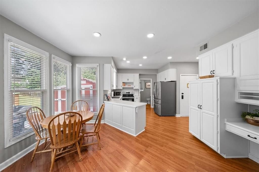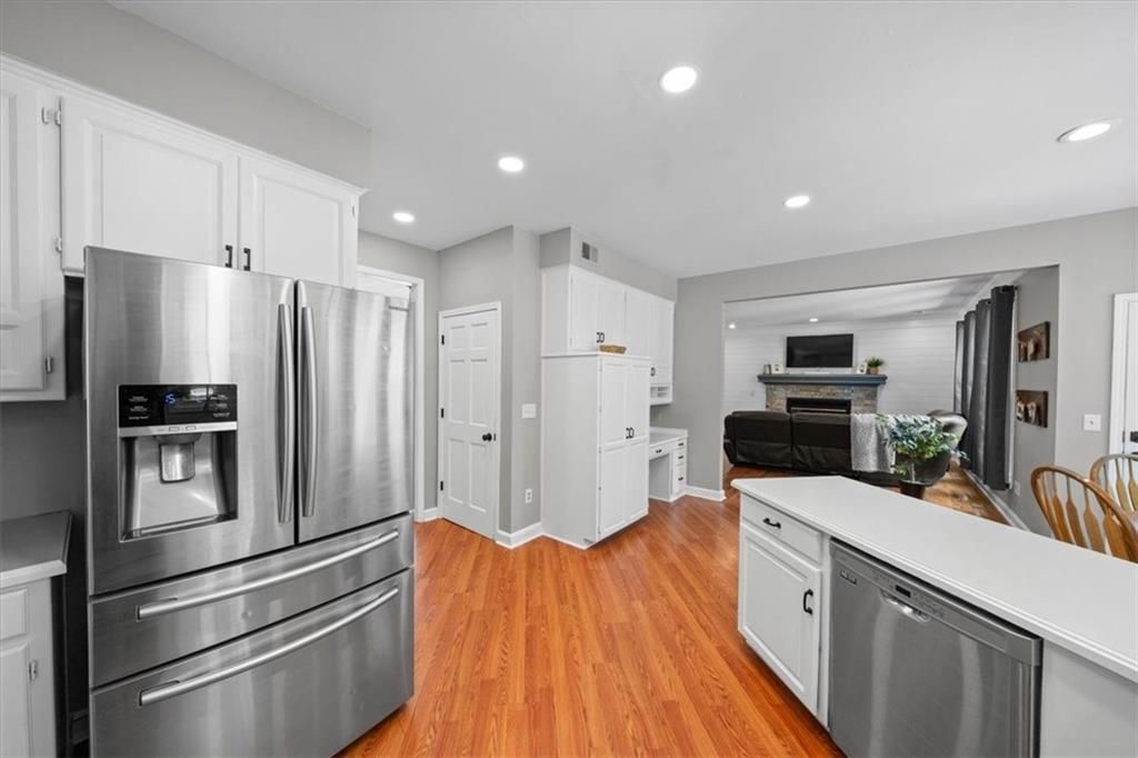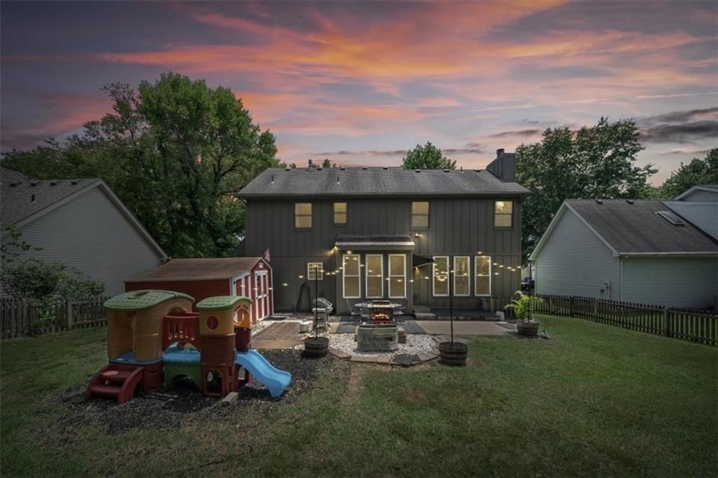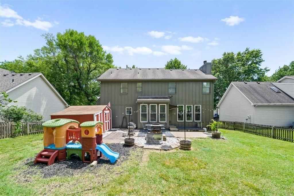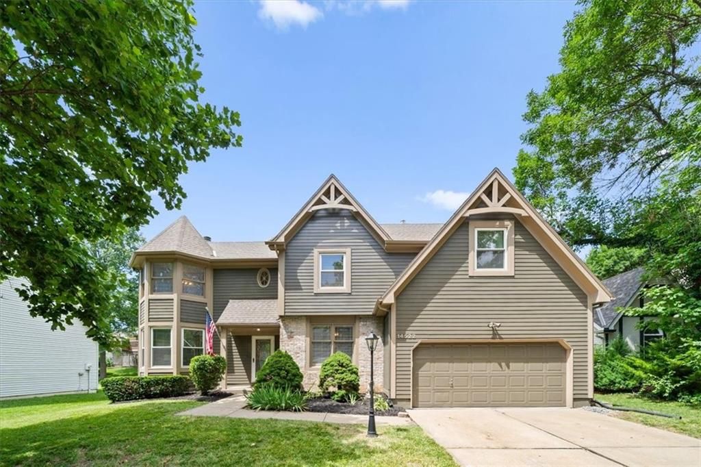 NEW PRICE ON THIS GREAT SHAWNEE 2-STORY. Tucked away on a quiet cul-de-sac, this spacious two-story home offers four bedrooms, two full bathrooms, and a convenient half bath - Great room and Kitchen are open for comfortable everyday living and entertaining. Fresh exterior paint, some interior paint and newly painted cabinets give the home an updated, fresh feel. The great room has a fireplace and floor to ceiling windows. The generous primary suite features a large bathroom, offering a private retreat. The secondary bedrooms are good sized. The finished lower level provides additional space for an office and has room to expand or customize to your needs. Located near highways, shopping, and highly regarded Shawnee Mission schools, this home is move-in ready and waiting for its next owners.