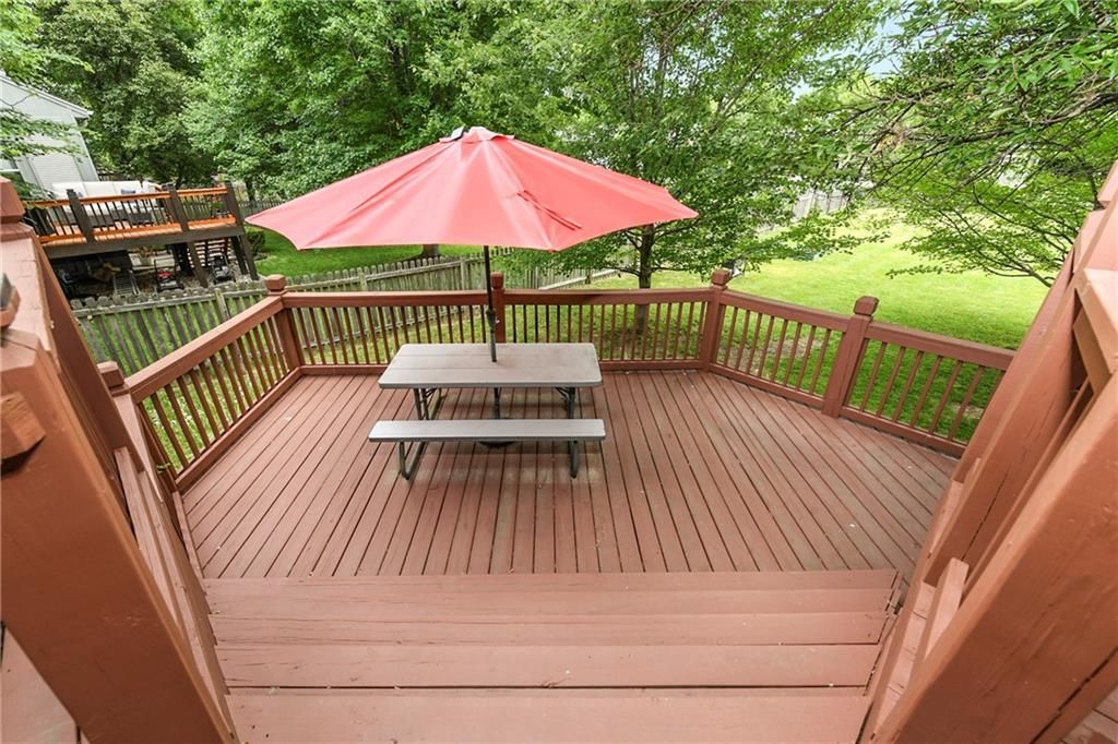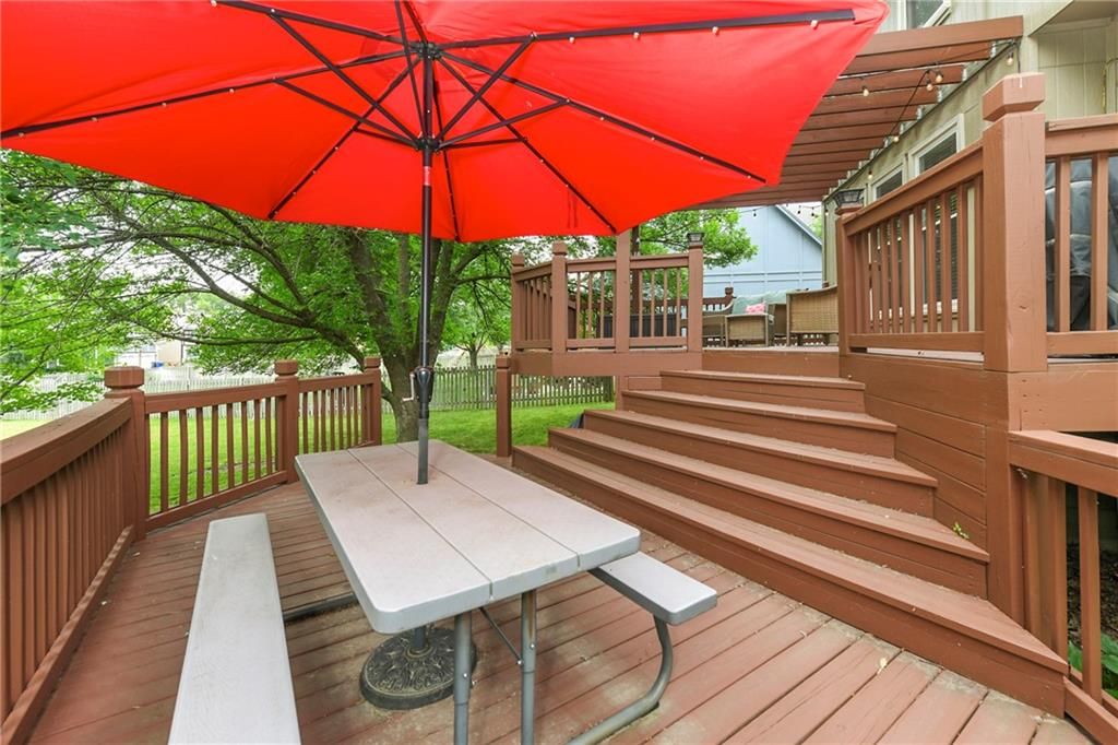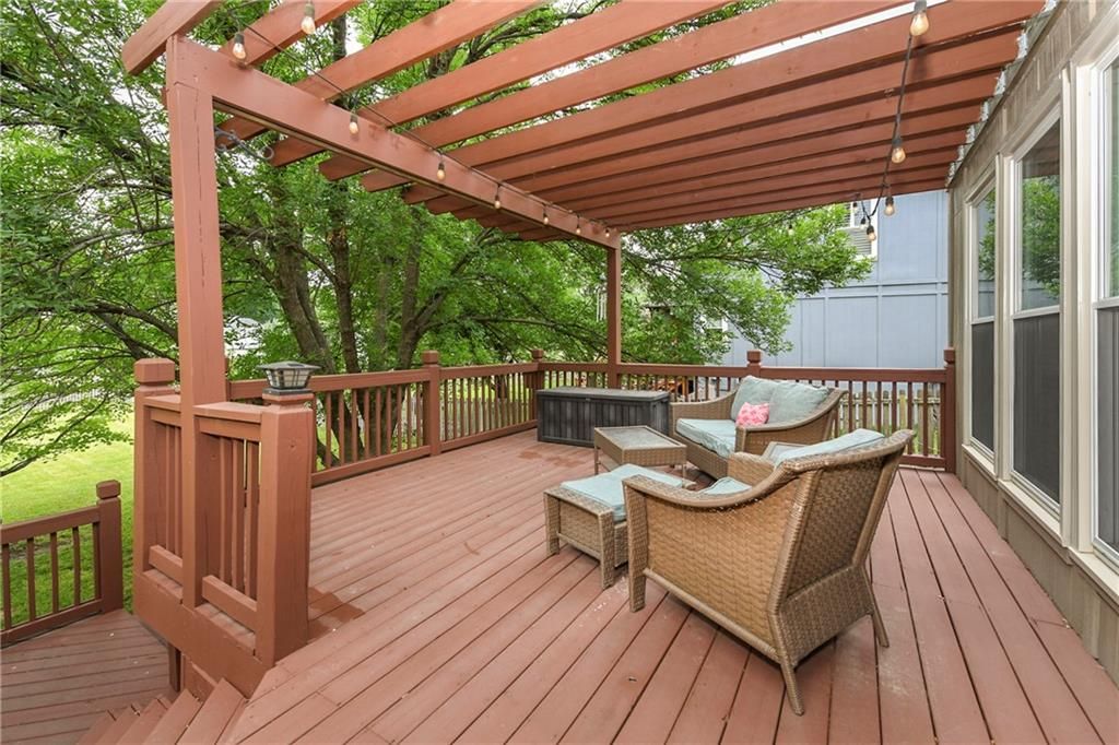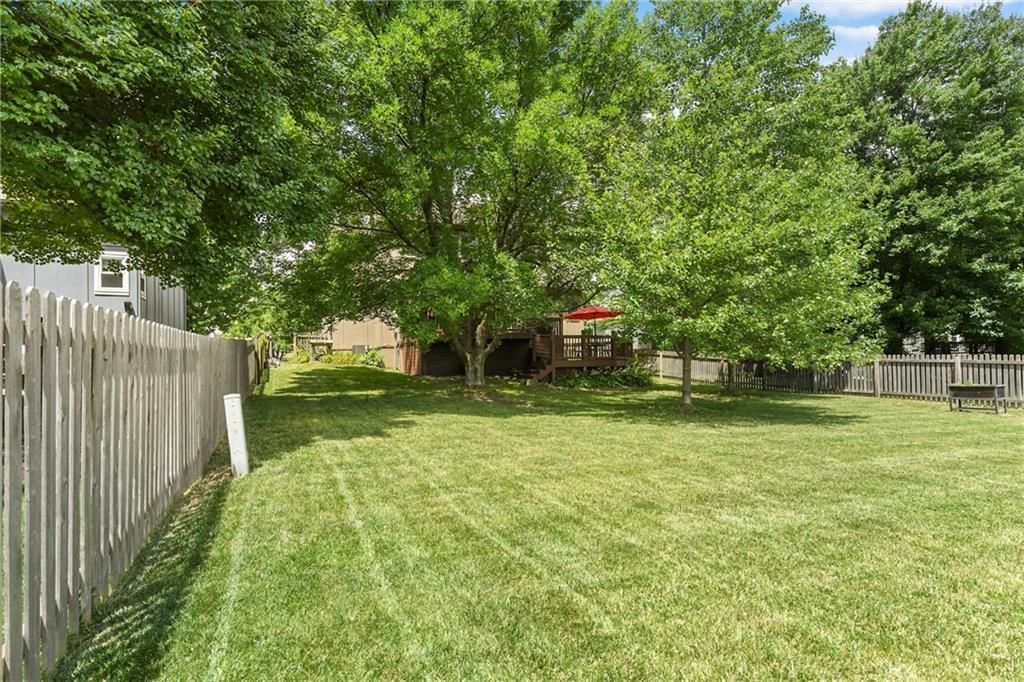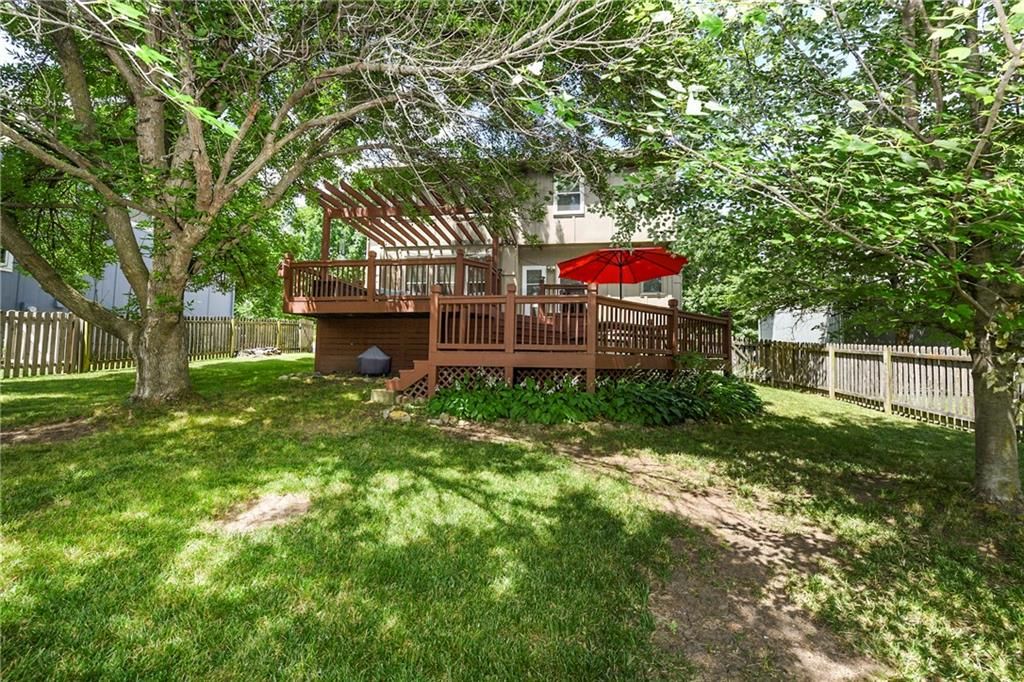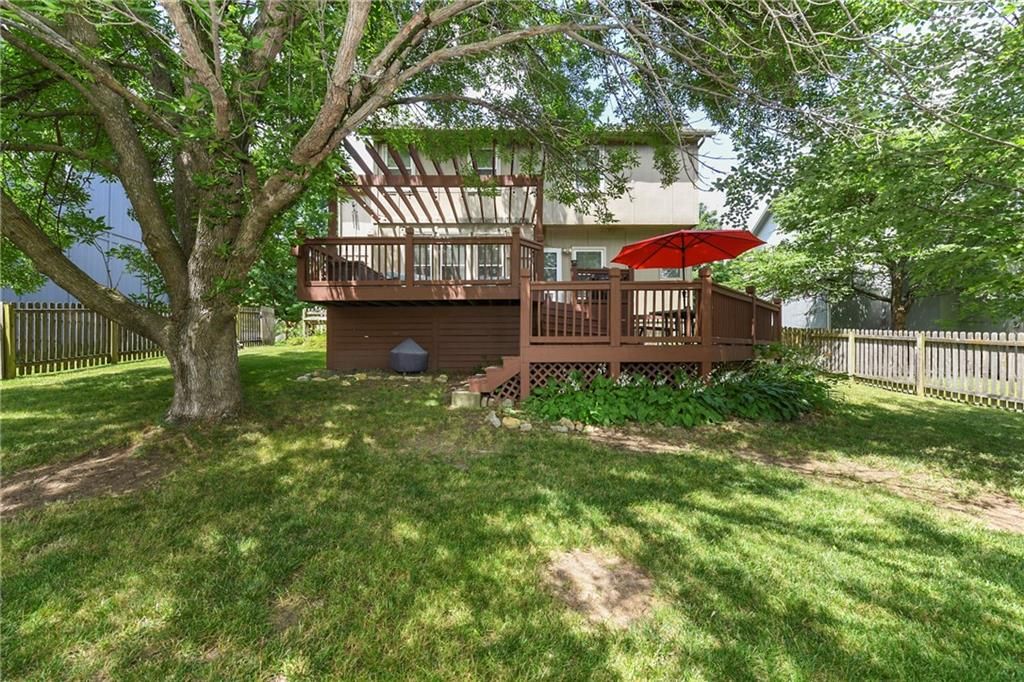 Back on market and no fault to sellers! You do not want to miss this Parkwood Hills 2-story which sits on a HUGE lot in a cul-de-sac in the Blue Valley School District! Get ready to be blown away by the size of this fenced backyard with a huge 2-tier deck! This home has new carpet, new hardwood floors throughout the main level, remodeled bathrooms, new windows, LED can lights! The main level features a living room with fireplace, a formal dining room, an updated eat-in kitchen with granite countertops, and a great view of the parklike setting. The primary suite has a remodeled shower, a corner tub, double vanity, and an incredible double walk-in closet complete with built-in dresser. Three secondary bedrooms, a second full bath with vaulted ceiling and skylight, and a laundry room complete the upper level. Finished daylight lower level has a fantastic family room complete with wet bar. This location is the total package with almost 1/3 acre lot, a neighborhood pool, elementary school in the neighborhood, and newly renovated Blackbob Park just down the street! Sellers LOVE their home and their neighbors and hate to leave this great cul-de-sac!