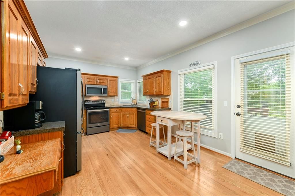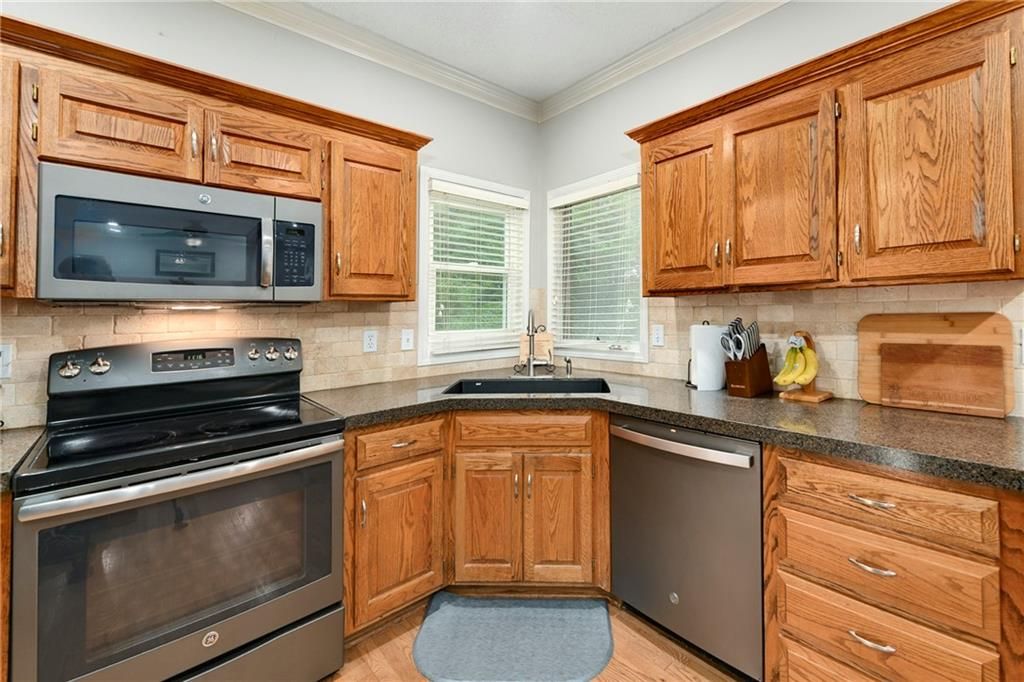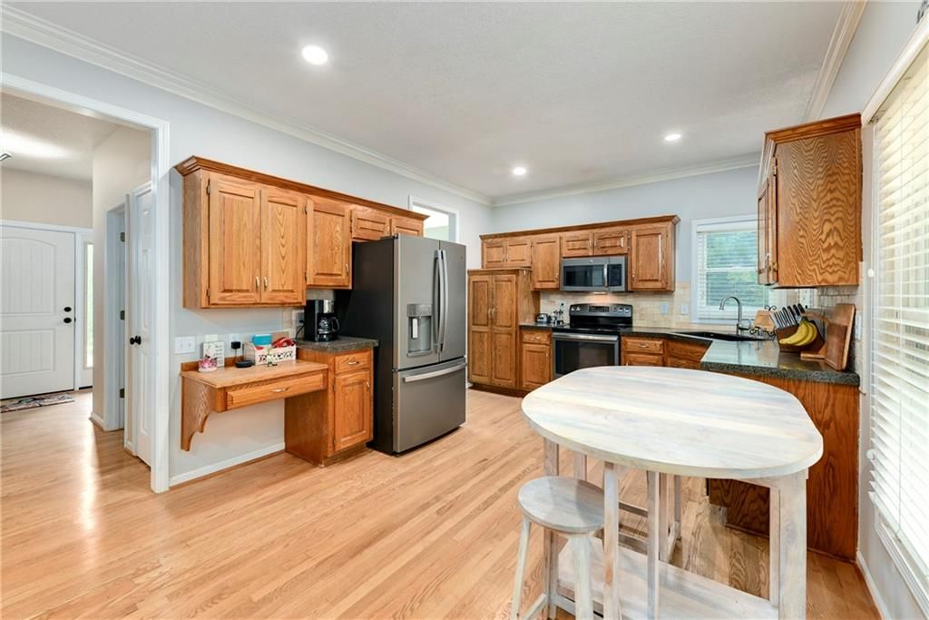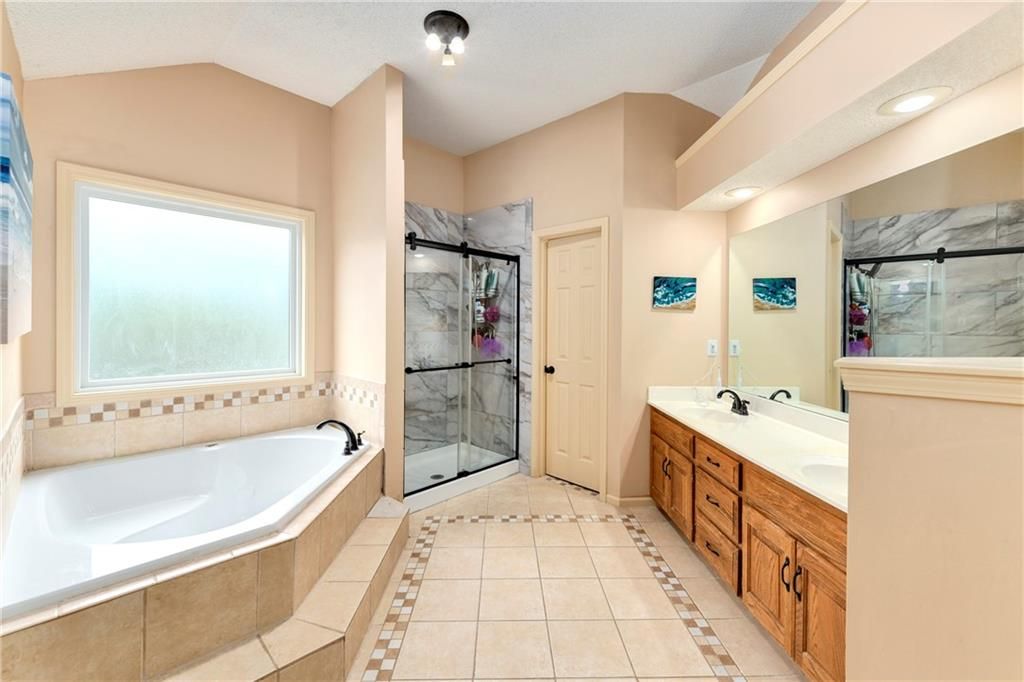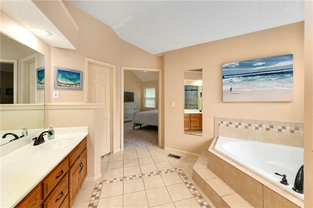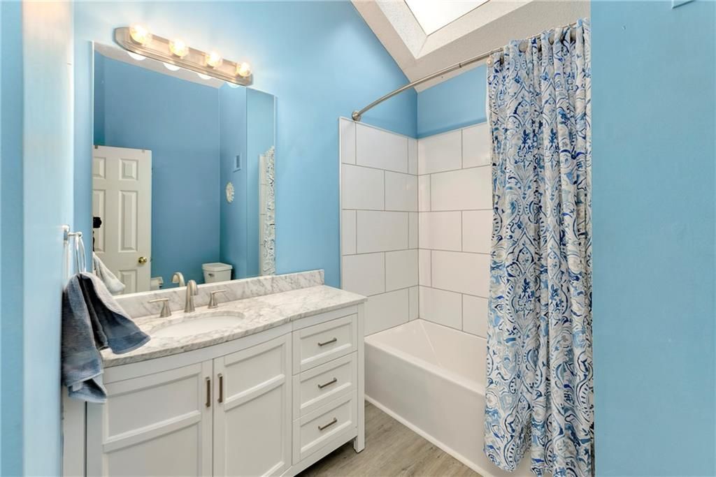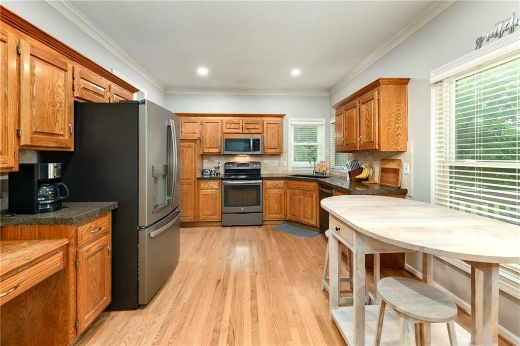 Back on market and no fault to sellers! You do not want to miss this Parkwood Hills 2-story which sits on a HUGE lot in a cul-de-sac in the Blue Valley School District! Get ready to be blown away by the size of this fenced backyard with a huge 2-tier deck! This home has new carpet, new hardwood floors throughout the main level, remodeled bathrooms, new windows, LED can lights! The main level features a living room with fireplace, a formal dining room, an updated eat-in kitchen with granite countertops, and a great view of the parklike setting. The primary suite has a remodeled shower, a corner tub, double vanity, and an incredible double walk-in closet complete with built-in dresser. Three secondary bedrooms, a second full bath with vaulted ceiling and skylight, and a laundry room complete the upper level. Finished daylight lower level has a fantastic family room complete with wet bar. This location is the total package with almost 1/3 acre lot, a neighborhood pool, elementary school in the neighborhood, and newly renovated Blackbob Park just down the street! Sellers LOVE their home and their neighbors and hate to leave this great cul-de-sac!