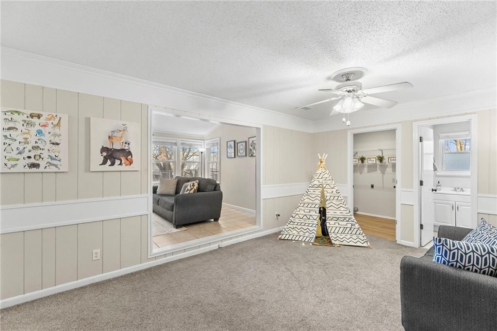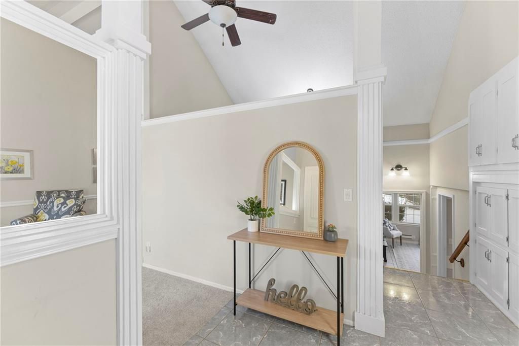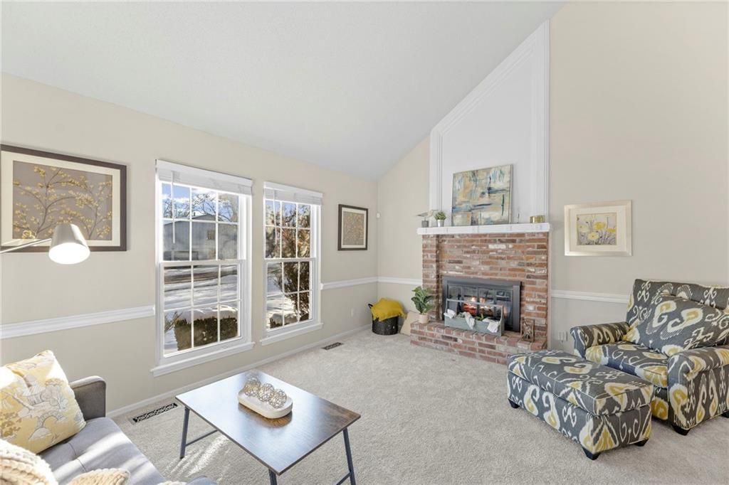 Wonderfully Maintained & Updated Home with New Roof and Non-Conforming 4th Bedroom. So much space in this coveted Brentwood Park home in Lenexa. This move-in ready home offers 3 bedrooms, 3 full baths, and nearly 2,000 sq ft of beautifully maintained living space - plus a non-conforming 4th bedroom/office in the lower level. Major updates include a new roof in 2025, modern garage doors, and some new carpet. The soaring ceilings highlight the fireplace and nice kitchen and dining area. The eat-in kitchen boasts plenty of cabinet and counter space with easy access to the deck. Upstairs includes a vaulted primary suite with a walk-in closet and bath, two secondary bedrooms, and a second full bath. The lower level offers two versatile family rooms, a third full bath, laundry room, and the non-conforming 4th bedroom, which is great as a guest or flex room. Enjoy outdoor living on the deck and patio overlooking the fenced yard. Seller is offering a Gold Home Warranty from Old Republic. You won't want to miss this convenient and cute house in Lenexa!