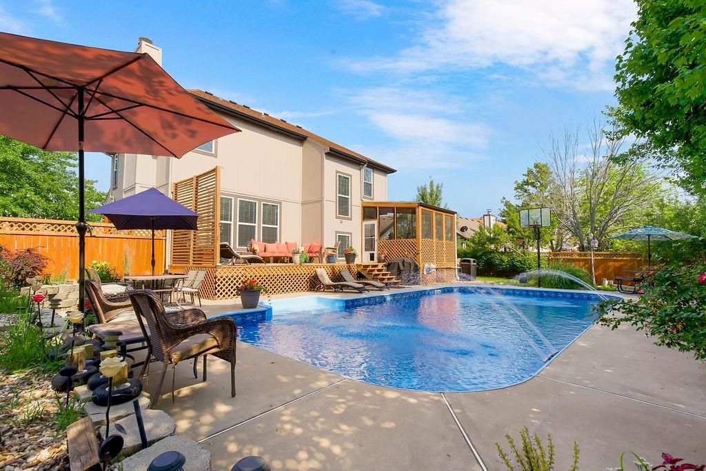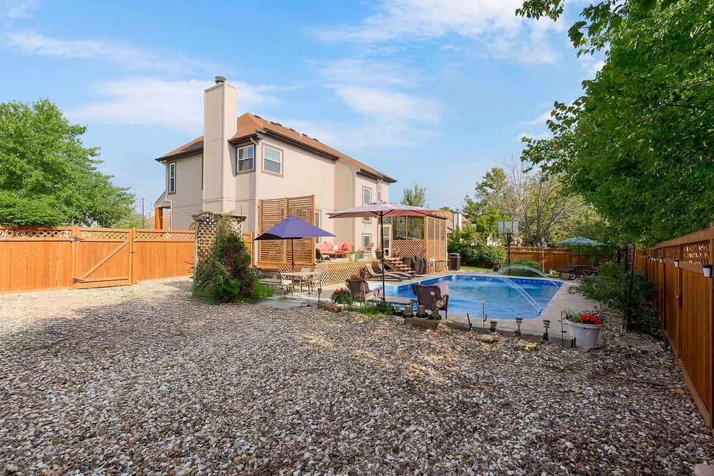 Stunning Home with CLASS AND STYLE! This is a gorgeous, corner lot, and entertainers dream home. Multiple exterior gathering areas including a beautiful firepit and conversation area, huge sun deck overlooking a wonderful inground athletic pool with a new liner and incredible customizable lighting and fountains, and a screen room you're sure to spend many mornings and evenings on while enjoying your private little oasis. Inside you will be speechless walking into your open concept and completely updated 1st floor. This floor features and formal dining room, spacious living room, amazing Kitchen with HUGE ISLAND, 1/2 bath and generous breakfast area. The additional screed deck seamlessly provides an extension to exterior living space as well. The 2nd floor, just as exquisite, and offers LARGE bedrooms, a Primary Suite with separate sitting area and spa like bath, a guest room with private en-suite, and a jack/jill bath servicing 2 more generously sized bedrooms. You will also love the convenient laundry area on this level. The lower level offers tons of storage and the option for a 5th conforming bedroom. The current owners spared no expense and thought of it all while designing a showstopper. Oh, if you have toys, the home accommodates those also; you have a 3-car garage, 4th pad for boat/camper/trailer, and additional space behind 2 double gates in the rear. All of this with access to parks, shopping, dining, highways, and entertainment makes it one you won't want to miss. The owner has created the perfect blend of sophisticated beauty/comfortable relaxation/and excitement at every turn. This IS one you MUST SEE if you've been searching for a home with its own identity. Did I mention it's also in the highly desirable BLUE VALLEY school district?