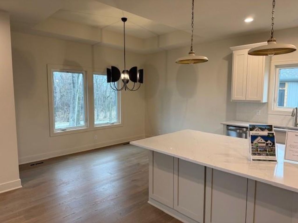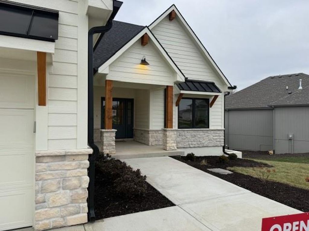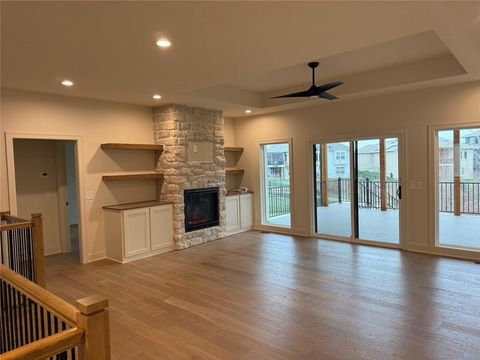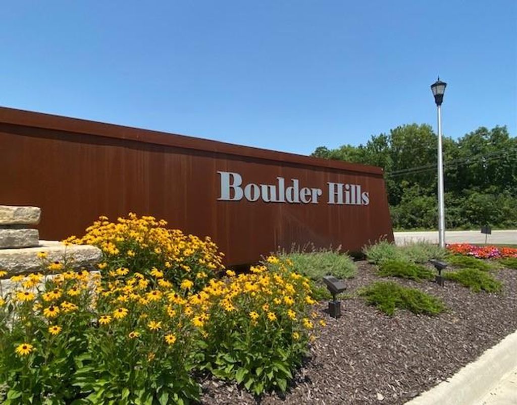 Ready Now! The Addison Reverse Plan by Brian Scott Homes - Lot 99 Boulder Hills | Backing to Trees & Trails |Walk-up/Walk-out Welcome to the Addison, an exceptional reverse 1.5-story home located on coveted Lot 99 in Boulder Hills, offering a rare walk-out/walk-up lot that backs to mature trees and scenic walking trails. This thoughtfully designed 4-bedroom, 3.5 bathroom home is ready now to enjoy your backyard oasis. Discover a spacious, open layout with high-end finishes and custom details inside. The gourmet kitchen is a dream, featuring custom cabinetry, quartz countertops, a large center island, and a walk-in pantry. The adjacent great room showcases a stunning stone fireplace and plenty of space for entertaining. Walk out from the main level to a huge covered deck - perfect for enjoying peaceful, treed views year-round. The front bedroom welcomes natural light through oversized windows, while the primary suite boasts a custom feature wall and direct access to the deck. The spa-like primary bathroom includes dual vanities, a freestanding tub, and a luxurious walk-in shower. You'll love the generous walk-in closet conveniently connected to the laundry room. The oversized garage is a standout feature, measuring an impressive 24.6' x 29.6' with a 6' x 7' bump-out - perfect for your extended truck, workbench, or recreational gear. Downstairs, the walk-out/walk-up lower level offers a large recreation room, two additional spacious bedrooms, and a full bathroom - ideal for guests or family fun. This is the last available home in Boulder Hills backing to the private tree line - don't miss your chance to own in this premier community! Boulder Hills Amenities Include: a beautiful pool with a waterfall, an outdoor kitchen area, walking trails, a playground, a pickleball court, and a community clubhouse. See why Boulder Hills is one of the most desirable neighborhoods around!