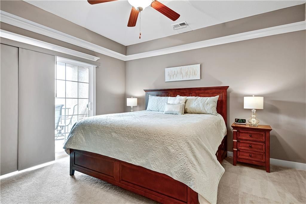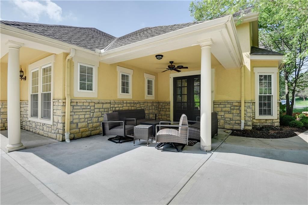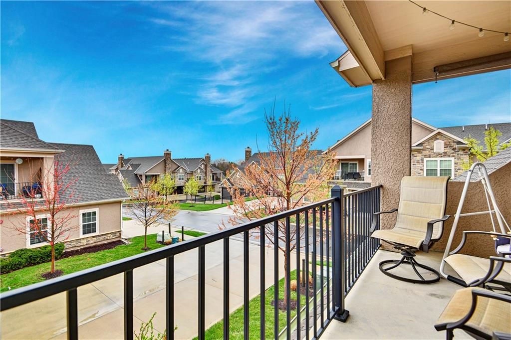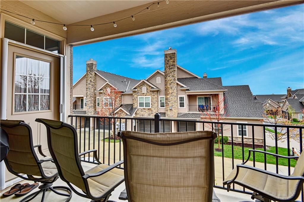 NEW PRICE ALERT! Your Dream Home Just got more affordable. This luxurious condo is in pristine condition, featuring a fantastic floor plan. The kitchen is open to the dining and living areas, which includes a cozy fireplace. There are two spacious bedrooms, both with walk-in closets, and two full baths. Levolor blackout window treatments in living room and bedrooms. Enjoy the covered deck accessible from both the living room and the primary bedroom. The kitchen and both baths have granite countertops, and the kitchen features stainless steel appliances. The condo also includes a built-in storm shelter and an oversized two-car garage. The location is unbeatable, located in the award winning Blue Valley School District, and just minutes from everything you need. The HOA covers access to the clubhouse, fitness room, pool, and provides snow removal and lawn and landscaping maintenance.