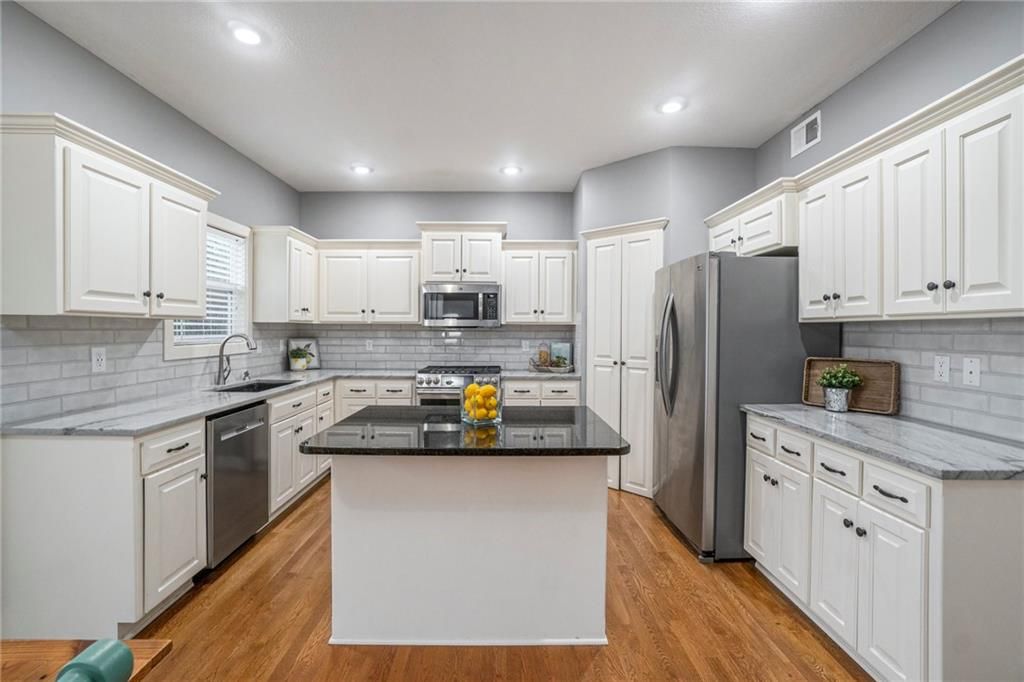 This Forest Hills home offers an open main level with hardwood flooring, white kitchen cabinets, granite countertops, stainless steel appliances, and a gas stove with double oven. Upstairs, the spacious primary suite includes a large walk-in shower with dual shower heads, a double vanity, and a generous walk-in closet. Two of the three additional bedrooms also include walk-in closets, and the second-floor laundry adds everyday convenience. Additional highlights include upgraded stair carpeting with iron spindles, 9-foot basement ceilings ideal for future finishing, and a privacy-fenced backyard with an oversized patio. Enjoy year-round comfort and efficiency with dual HVAC systems and peace of mind with a radon mitigation system already in place. Newer updates include: AC Unit 1 (1 Yr), AC Unit 2 (5 Yrs), Water Heater (2 Yrs), Microwave and Dishwasher (2 Yrs), Oven/Stove (5 Yrs). Located in the award-winning Spring Hill School District, with the newest elementary school, Timber Sage, conveniently adjacent to the neighborhood.