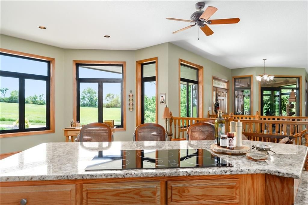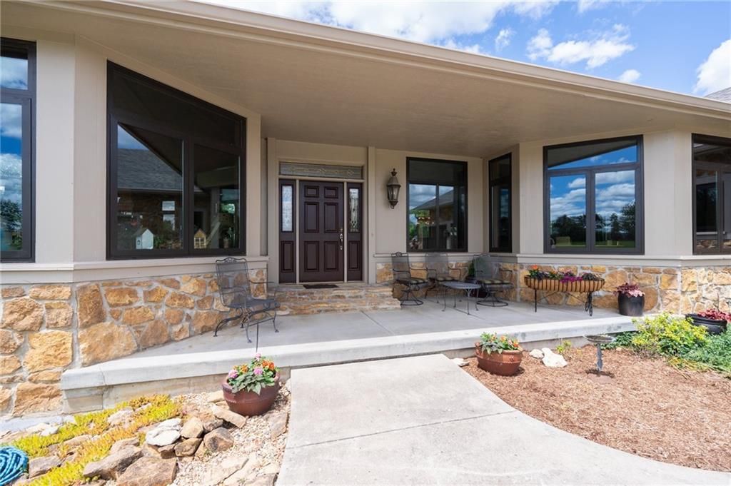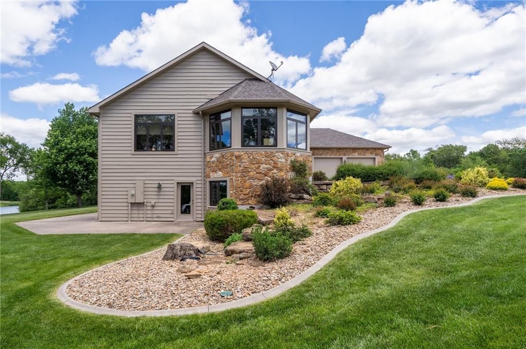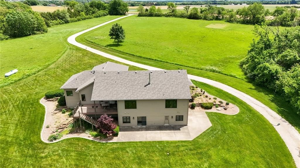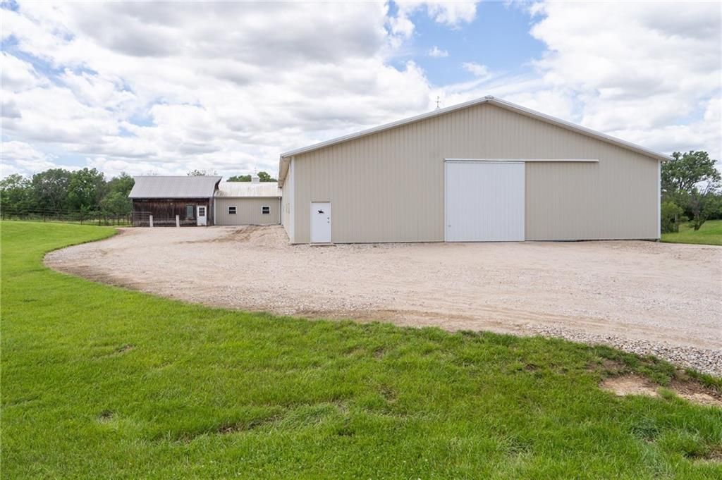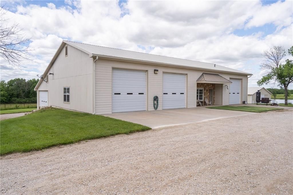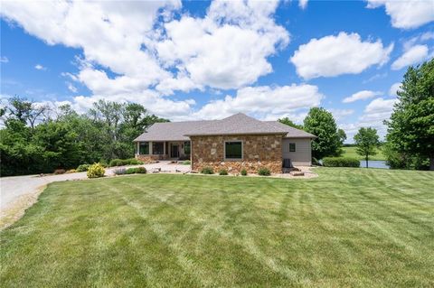 This Dream Homestead includes 80 Acres with Custom Home, Pond, Shop, ADU & Equestrian Facilities! Experience the ultimate rural retreat with this rare estate featuring a meticulously maintained, custom ranch home with walk-out basement, 7-acre stocked pond, 4800 SF workshop with apartment and equestrian amenities. Designed for comfort, self-sufficiency, and recreation, this property offers panoramic views and is located just a few miles south of Baldwin City with blacktop access and only 1/4-mile of rock road. Enjoy fishing, floating, or relaxing at the pondside covered dock, or explore trails perfect for hiking, riding, wildlife watching or hunting. The workshop is a dream setup for hobbyists and professionals alike and can accommodate guests in the 800 SF apartment. The indoor arena, stables, tack room, and pastures make it ideal for horse lovers. Whether you're homesteading, hosting guests, or seeking peace and tranquility, this one-of-a-kind property is a true lifestyle opportunity. Be sure to check out the video of the property and imagine yourself living the good life!