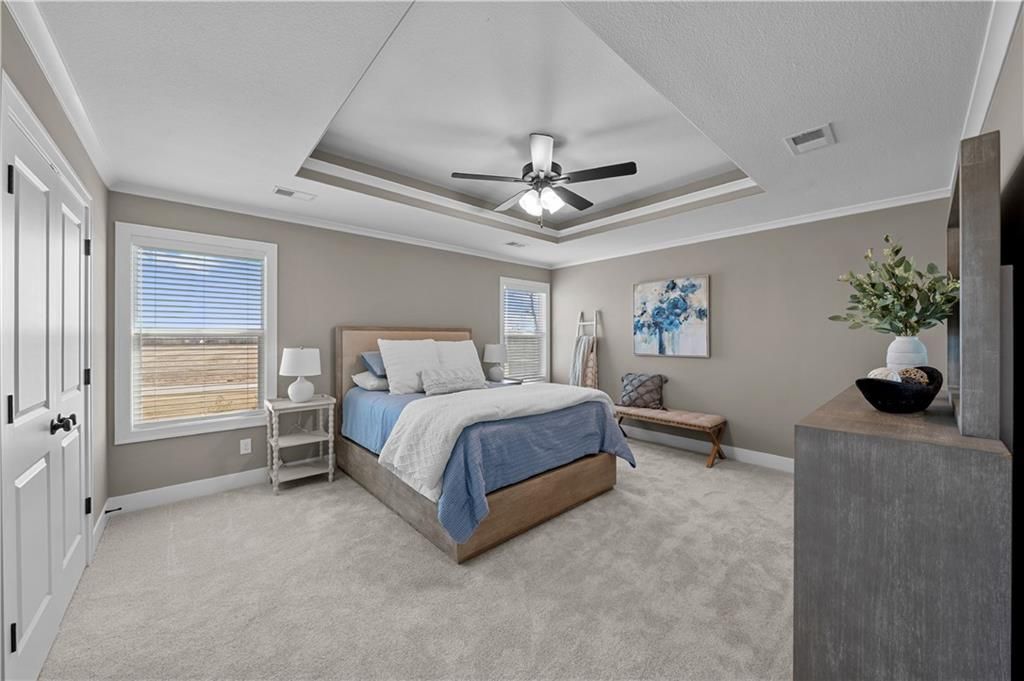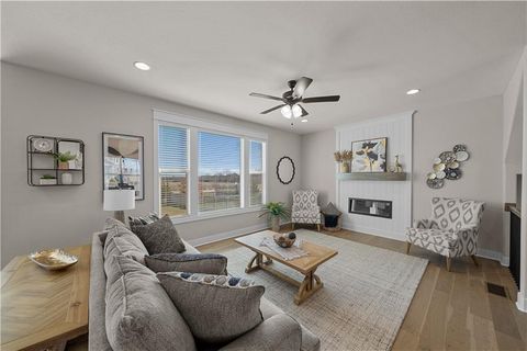 BASEMENT FINISH IN PROGRESS!! Approx 711 SQFT Rec Room with 3/4 bath being added. Finish in roughly 6-8 weeks! The Delaney III plan by MFEI features a prep-pantry addition in the kitchen. Prep pantry includes wood floors, butcher block top upgrade, extensive trim work, and outlets. Home also includes a covered patio with extended concrete. Upgraded front elevation and 8ft 8-foot-tall sliding glass door upgrade to the backyard. Open main level with hardwoods throughout. Oversized, deep lot on a cul-de-sac. Two-story entry. 9-ft foundation with basement bath stub upgrade, and additional landscaping. Vaulted secondary bedrooms on the front of the house. The guest bedroom includes a private 3/4 bath. An expansive master bedroom suite with a lighted tray vault, a beautiful master bath with a freestanding tub, a fabulous spa shower, and separate vanities. Detailed trim work in the master closet. All bathrooms include an upgraded Matte Black Faucet package and hardware. Upgraded lighting package. All bedrooms are wired for future ceiling fans. Additional features include 8-lb carpet pad, granite kitchen countertops with an expanded kitchen island, upgraded kitchen backsplash, custom wood cabinet hood with insert vented to the exterior, enamel cabinet surround with stained island, glass pantry door, composite kitchen sink, smart thermostat, garage door openers, garage keypad, 2-inch faux wood BLINDS, sprinkler system, R-49 attic insulation, painted and insulated garage walls, extended front porch and much, much, more! Area amenities include a STOCKED fishing lake, a heated subdivision pool with a splash zone and slide (extended pool season), a playground, a picnic shelter, and a fire pit. Taxes and sqft are estimated.