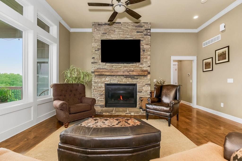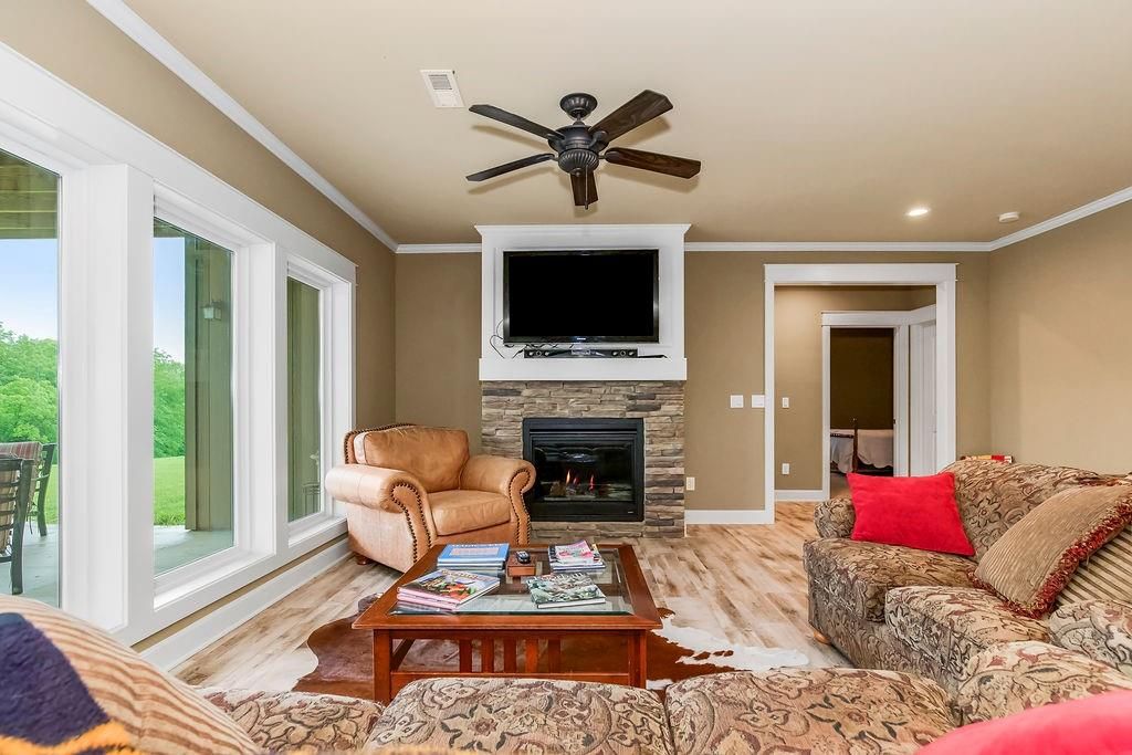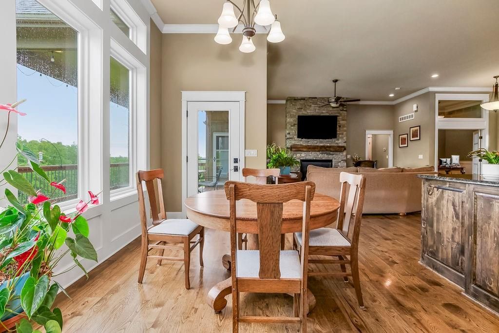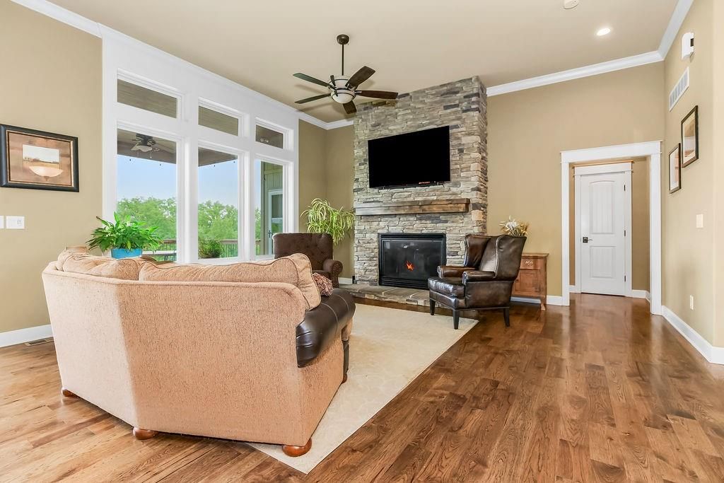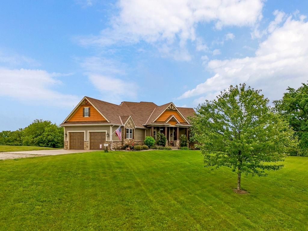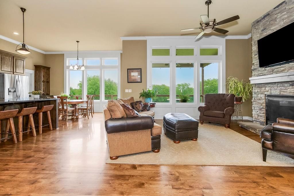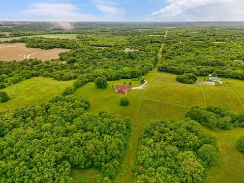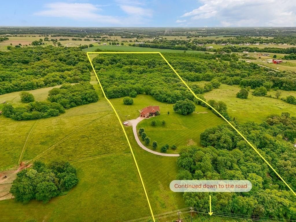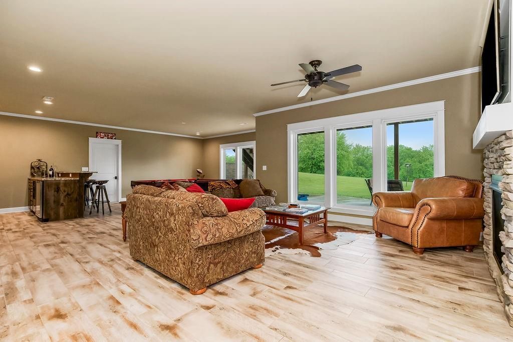 Hilltop Luxury Meets Peaceful Seclusion on 15+ Acres! Custom-built by Dean Ledford in 2015, this stunning reverse 1.5-story home sits atop a hill on 15.15 private acres, offering unmatched views, tranquility, and natural beauty just minutes from Smithville. A winding driveway welcomes you home, setting the stage for a retreat surrounded by green space, wildlife, and serene sunsets. Crafted with high-quality 2x6 construction and energy-efficient geothermal HVAC, this 5-bedroom, 3-bath home offers low utility costs and low taxes - without sacrificing modern comfort. The stone-accented exterior and columned front porch provide timeless curb appeal, while hardwood floors flow throughout the open-concept interior. Soaring ceilings and oversized picture windows flood the space with natural light and frame the scenic surroundings. The main level features two spacious bedrooms plus an office (optional third bedroom), including a luxurious primary suite with a tray ceiling, large windows, a walk-in closet, and a spa-like bathroom with a double vanity and walk-in shower. The heart of the home is the gourmet kitchen, equipped with an induction cooktop, built-in convection oven and microwave, walk-in pantry, and an oversized island with breakfast bar - all open to the cozy living room with a stone gas fireplace and the sunlit dining area with access to the covered deck. Downstairs, the walk-out lower level is perfect for entertaining or multi-generational living, complete with a second stone fireplace, wet bar, large family room, two generous bedrooms, and a full bath. Step outside to enjoy the peaceful covered patio and expansive backyard. All of this is located just 7 miles from Smithville Lake and 10 miles from KCI Airport - close enough for convenience, yet worlds away in terms of peace and privacy!