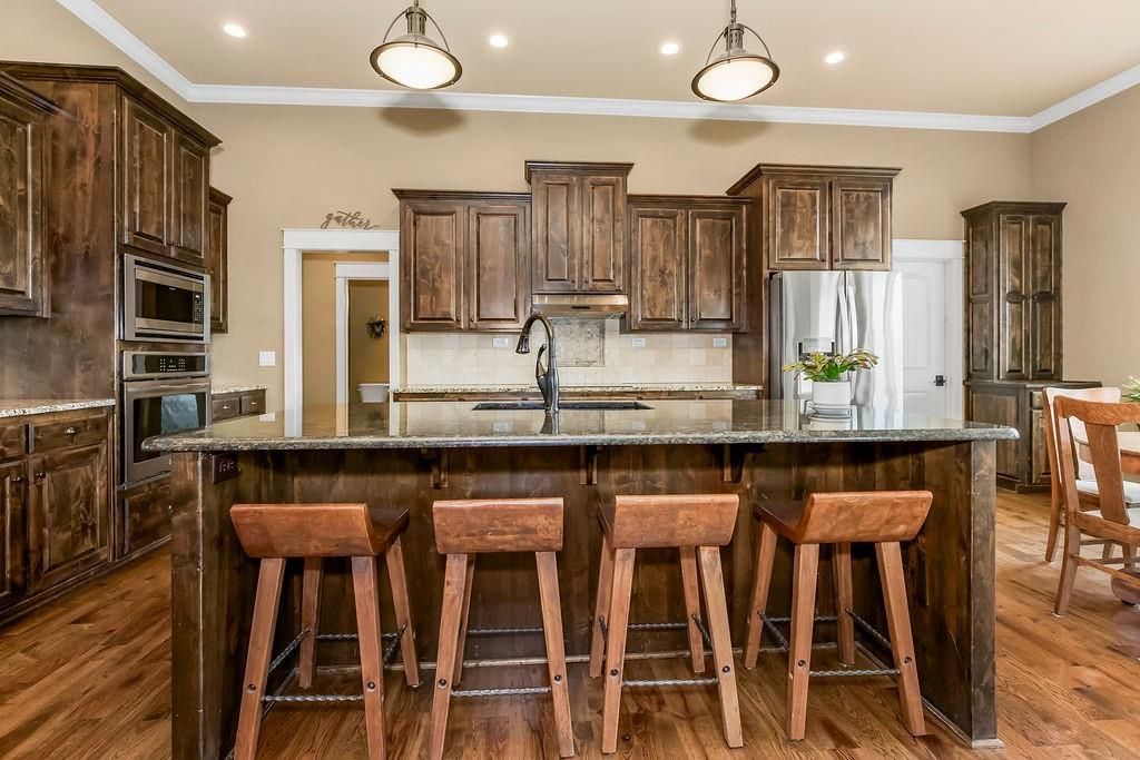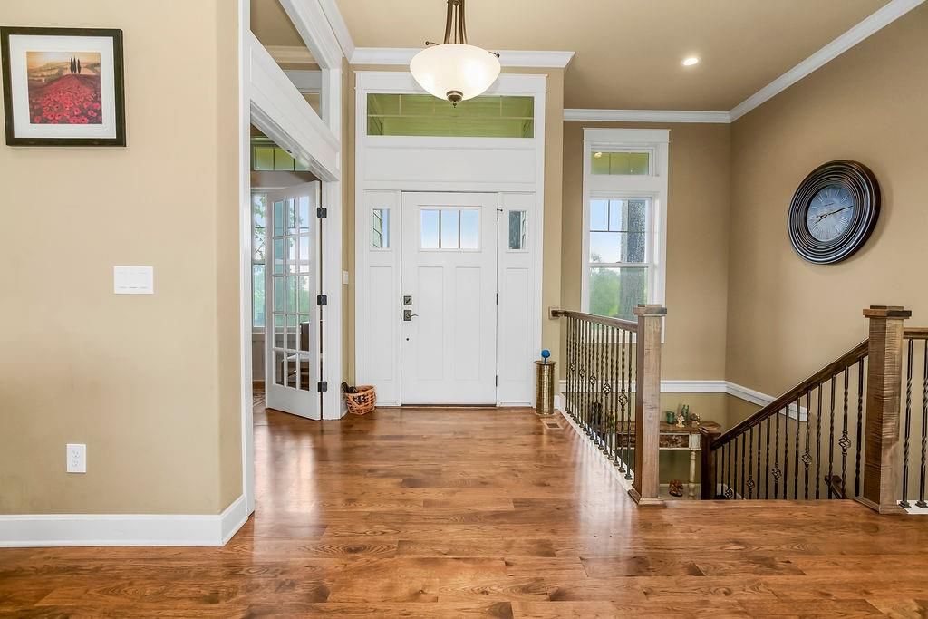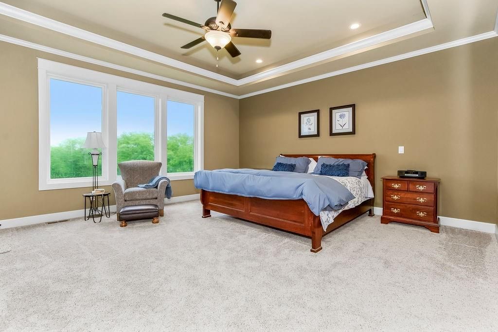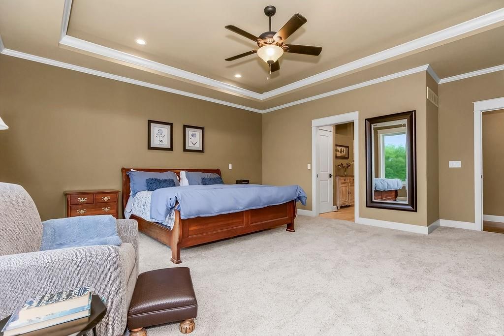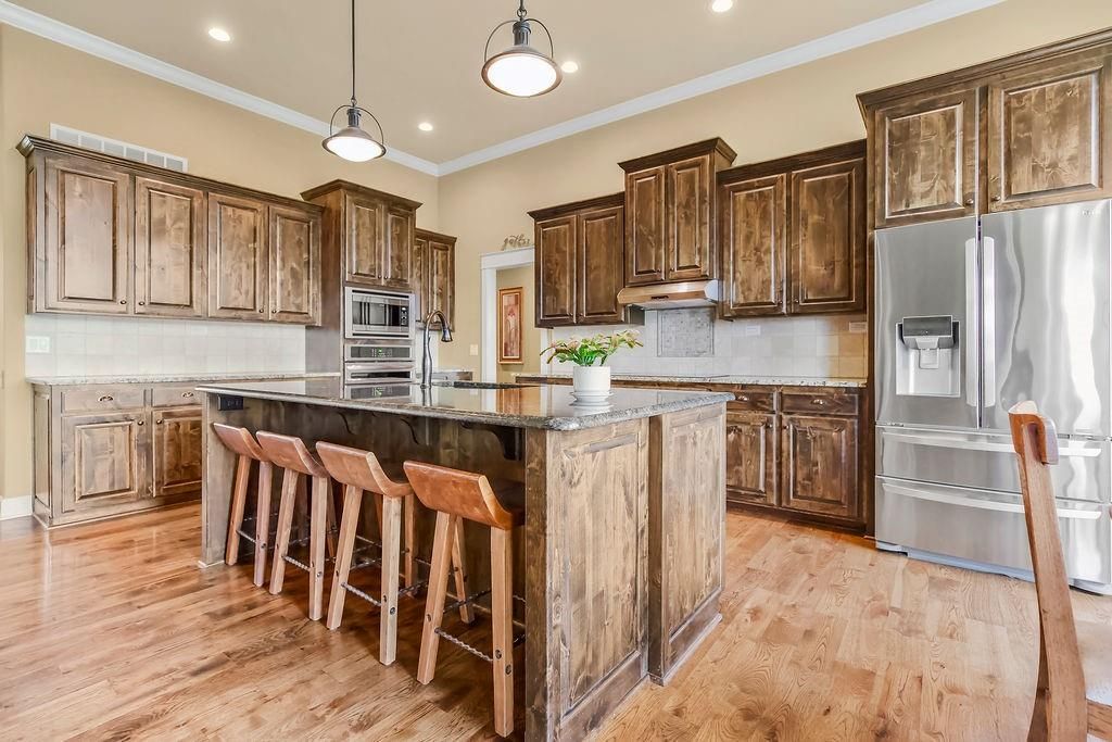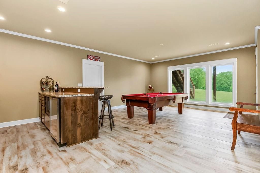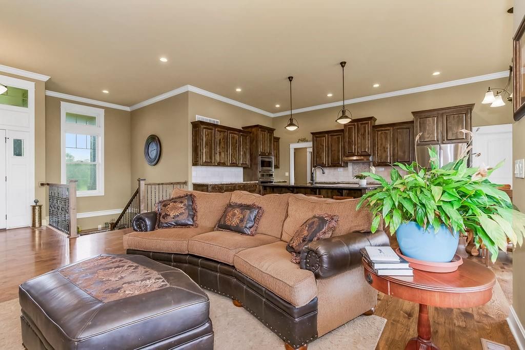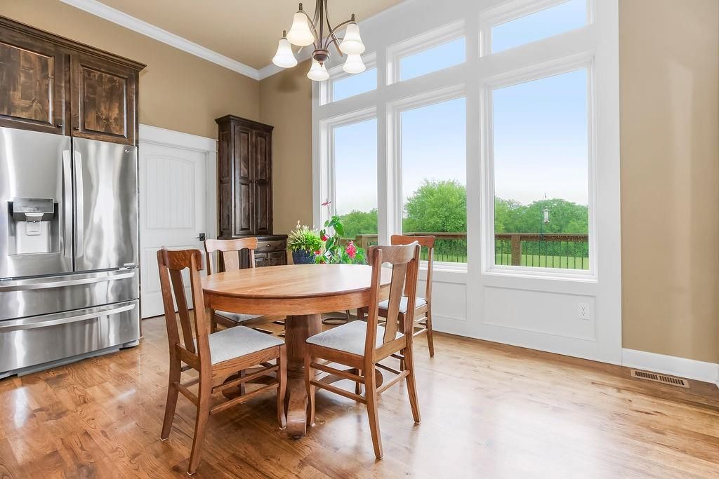 Hilltop Luxury Meets Peaceful Seclusion on 15+ Acres! Custom-built by Dean Ledford in 2015, this stunning reverse 1.5-story home sits atop a hill on 15.15 private acres, offering unmatched views, tranquility, and natural beauty just minutes from Smithville. A winding driveway welcomes you home, setting the stage for a retreat surrounded by green space, wildlife, and serene sunsets. Crafted with high-quality 2x6 construction and energy-efficient geothermal HVAC, this 5-bedroom, 3-bath home offers low utility costs and low taxes - without sacrificing modern comfort. The stone-accented exterior and columned front porch provide timeless curb appeal, while hardwood floors flow throughout the open-concept interior. Soaring ceilings and oversized picture windows flood the space with natural light and frame the scenic surroundings. The main level features two spacious bedrooms plus an office (optional third bedroom), including a luxurious primary suite with a tray ceiling, large windows, a walk-in closet, and a spa-like bathroom with a double vanity and walk-in shower. The heart of the home is the gourmet kitchen, equipped with an induction cooktop, built-in convection oven and microwave, walk-in pantry, and an oversized island with breakfast bar - all open to the cozy living room with a stone gas fireplace and the sunlit dining area with access to the covered deck. Downstairs, the walk-out lower level is perfect for entertaining or multi-generational living, complete with a second stone fireplace, wet bar, large family room, two generous bedrooms, and a full bath. Step outside to enjoy the peaceful covered patio and expansive backyard. All of this is located just 7 miles from Smithville Lake and 10 miles from KCI Airport - close enough for convenience, yet worlds away in terms of peace and privacy!