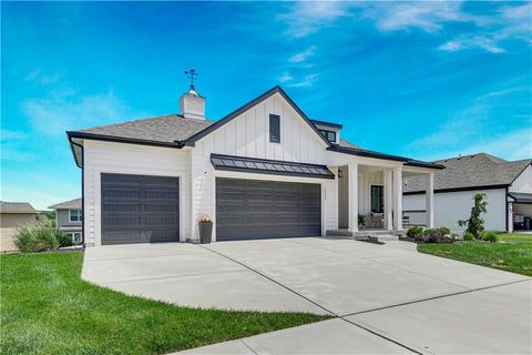 Welcome to 18233 Century Street in the heart of Bucyrus, KS - an exceptional reverse 1.5-story home that offers the perfect blend of functionality, comfort, and style. Nestled in a quiet, family-friendly neighborhood, this thoughtfully designed residence sits just steps from Aspen Grove Elementary, located right in the center of the community for unbeatable convenience.