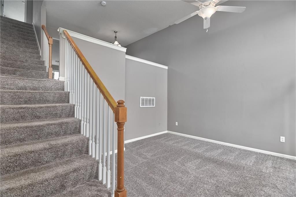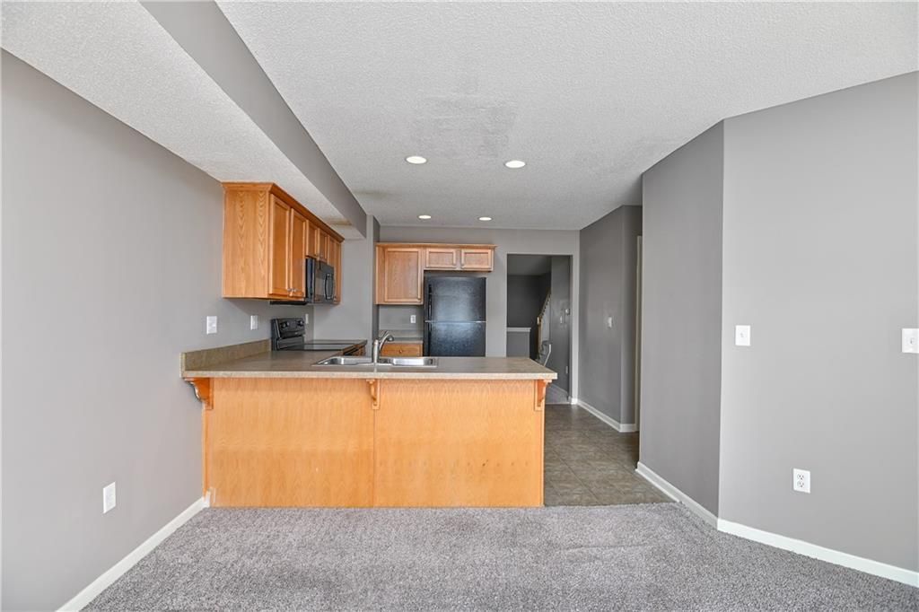 Located just a couple of blocks from the trendy & popular Western Olathe area full of retail, close to highways and new high school. This 3 bed, 2.1 bathroom townhome is right where you want to be. The eat-in kitchen features plenty of cabinet space and open to a hearth room with fireplace & a sliding door that leads to a bistro deck. A half bath is located on the main level. The main floor also has a formal dining and that looks over another living space with vaulted ceilings. Two generous sized bedrooms are located on the second floor with a Jack/Jill bedroom and nice sized closets. Laundry is conveniently located on the 2nd level. The primary is located on a private floor with nice size bathroom with separated tub and shower. The lower level features a garage and sub basement great for storage or an unfinished rec room. Brand new carpet throughout! The HOA pays for lawn care, snow removal and maintenance of the exterior and common areas. Agent/owner.