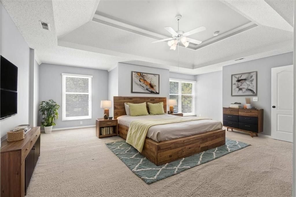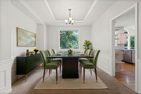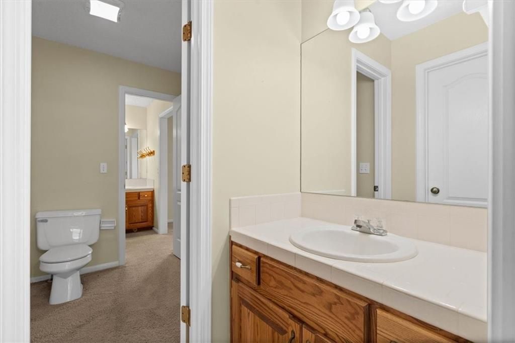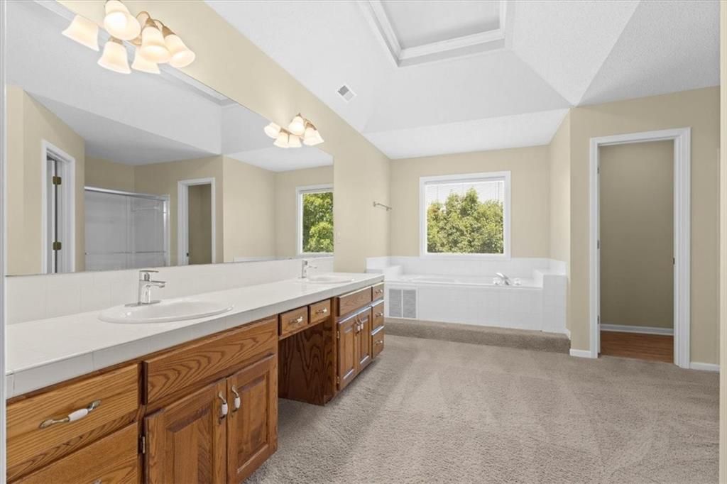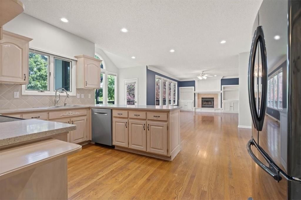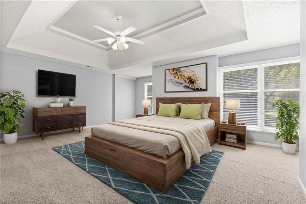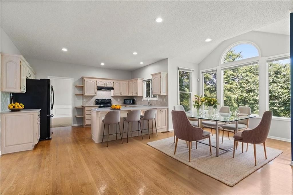 This bright and spacious two-story home in a convenient Olathe location has beautiful views inside and out, including the lovely and lush Mill Creek Trail that you can access right from the backyard! Modern curb appeal welcomes you, and once inside the multiple living areas, open floor plan, FIVE bedrooms, fully finished and walk-out lower level, and so much more will make you want to call this home your own. The front sitting room is the perfect place to welcome guests, and then you can usher them into the adjacent formal dining room when it's time for dinner, or relax in the HUGE open kitchen and great room for more casual gatherings. Plenty of cabinet storage, a large breakfast area, and a sprawling great room filled with big, bright windows and accented with a beautiful gas fireplace and built-ins will make you never want to leave this cozy yet extravagant space. When you need a little fresh air, simply step out to the covered back deck and enjoy the privacy of mature trees and the beautiful views of the trail that gives you a easy commute to Mill Creek, soccer field, and park. Upstairs, an incredibly spacious primary suite has room for your king-sized bed and everything that goes with it, and it features a super spacious ensuite bath with separate shower and soaking tub, double vanity, private toilet closet, and giant walk-in closet for your wardrobe. Three more bedrooms and two full baths complete the bedroom level, and downstairs in the fully finished, walk-out basement you can enjoy yet another spacious living area with views of the trail, a beautifully modern wet bar, a fifth bedroom, and fourth full bath. Close to schools, highway access, popular dining, retail and entertainment, and so much more. Welcome home!