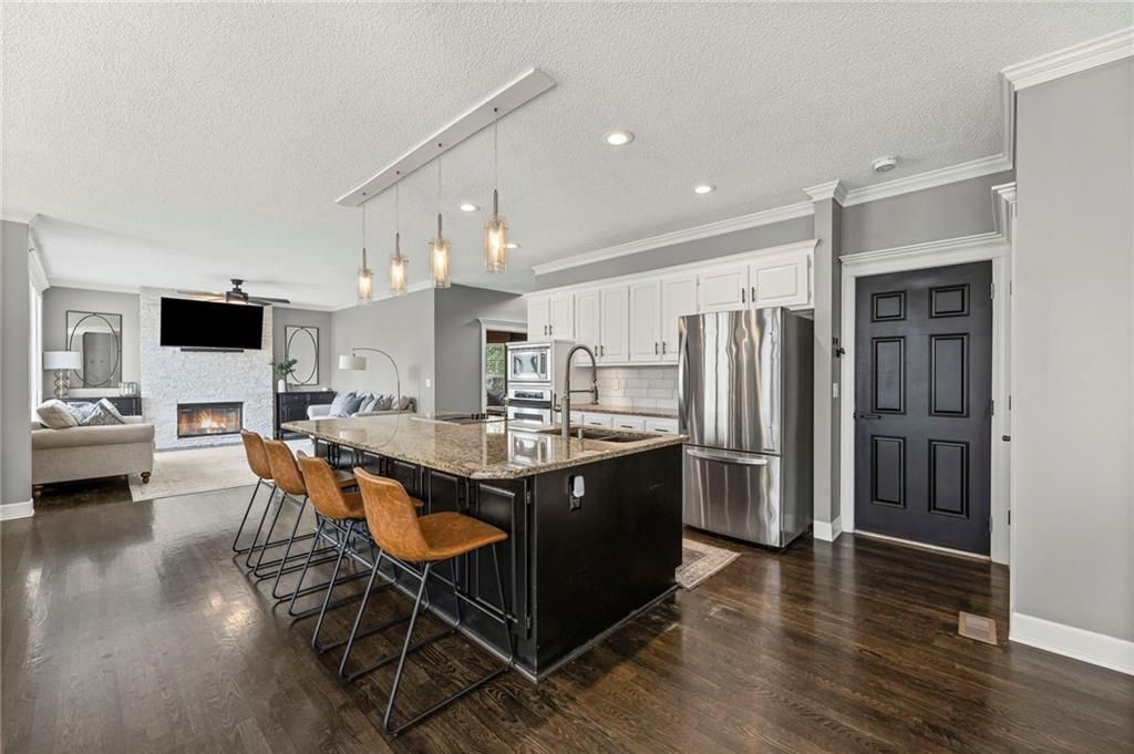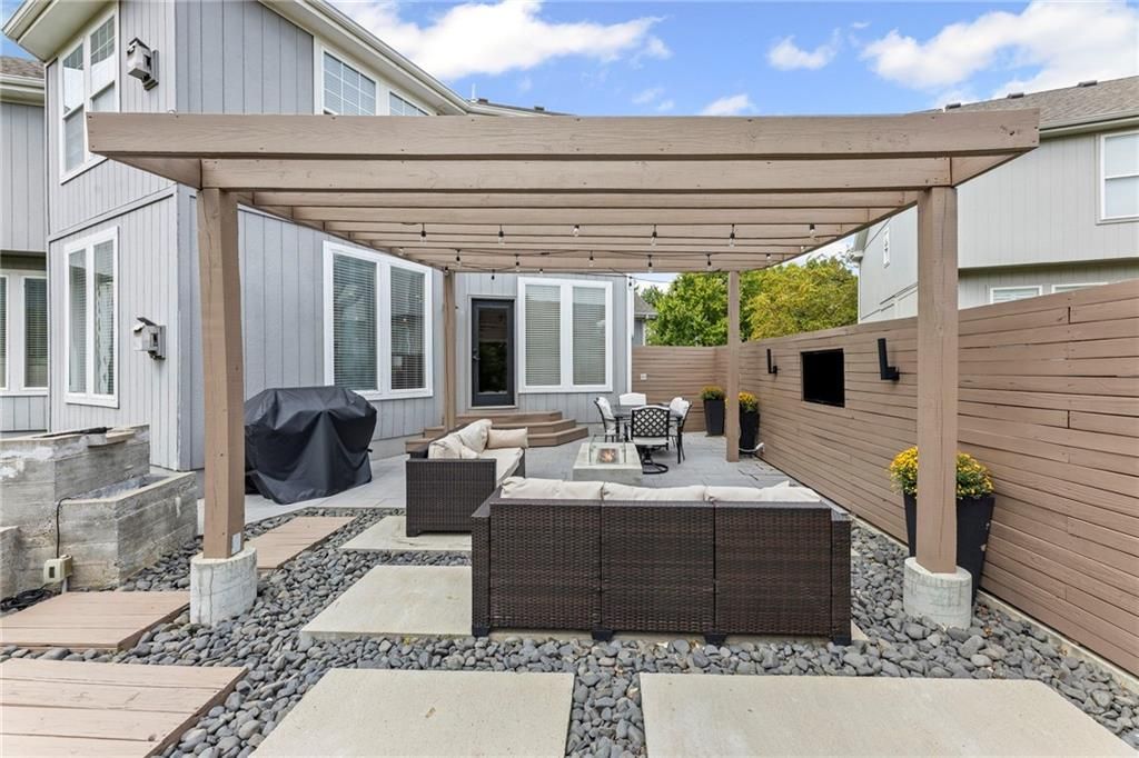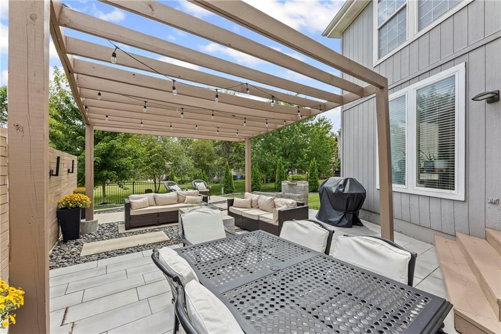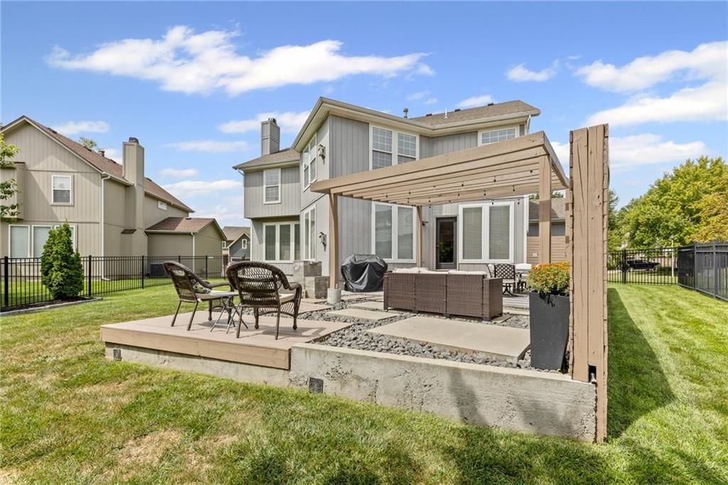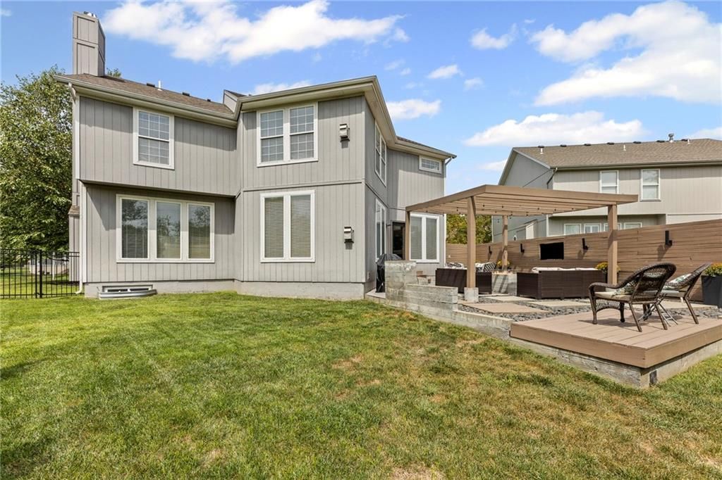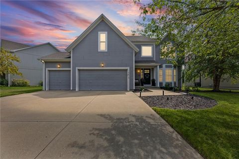 Contingeny Contract Fell Thru, No Fault Of Sellers. Enjoy the comfort and elegance of this luxurious house and step into the spacious open floor plan designed to create an inviting atmosphere for relaxing and entertaining. The gleaming hardwood floors add a touch of sophistication reflecting natural light throughout the spaces. High soaring ceilings enhance the sense of openness and grandeur while multiple gorgeous fireplaces provide warmth and charm making every room feel cozy and welcoming. The spectacular chef's kitchen and adjoining dining area include lots of granite countertops, hardwoods, s/s appliances, 5x9 center island/breakfast bar, lots of cabinets, pantry, ceramic fireplace. Awesome hearth room features hardwoods and access to a stunning backyard oasis with a 15x23 tiled patio, pergola, tv, fountain, firepit. The impressive living room showcases hardwoods, granite fireplace, plenty of natural light. Superb office/bonus room with french pane doors and built-ins plus a half bathroom all on the first level. The primary suite offers a sanctuary of comfort and elegance as it spotlights a spacious 18x24 bedroom with carpeting, vaulted ceiling, fireplace, ceiling fan along with an exquisite en-suite bathroom that includes two single vanities, shower, soaker tub, tile, walk-in closet providing a true oasis retreat. Two more stylish full bathrooms, three additional roomy bedrooms, laundry room on the upper level for the ultimate convenience and comfort. Huge unfinished basement (1,210sf) features an egress window presenting the potential to add a 5th conforming bedroom, stubbed for a bathroom, and more living spaces. This amazing home boasts lots of newer interior paint and light fixtures, added room built-in's, furnace (2023), 5' steel fence, sprinkler system, incredible location, superb curb appeal, all appliances staying too! Just minutes to Lenexa City Center. HOA includes pool, tennis, trash, recycle. Don't Wait To Make This Dream Home Yours!!