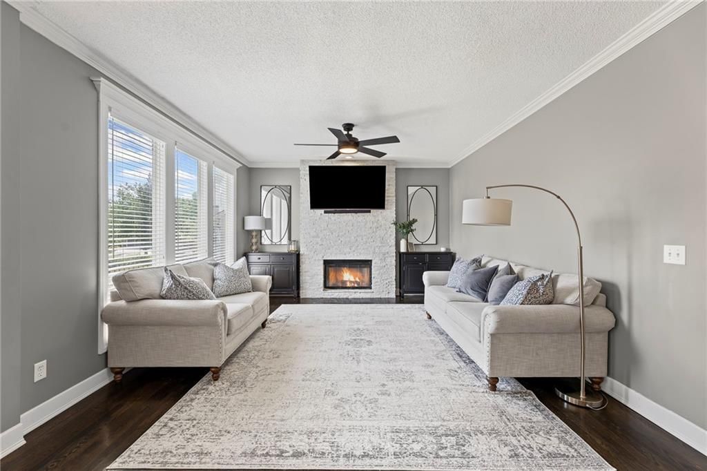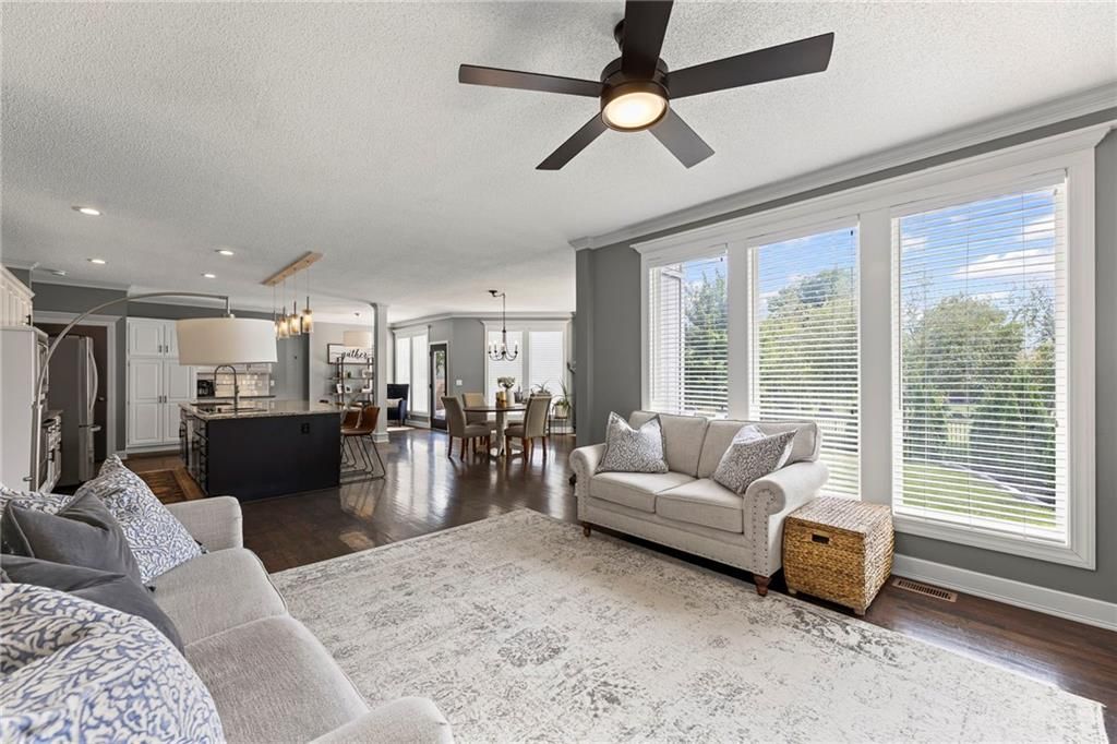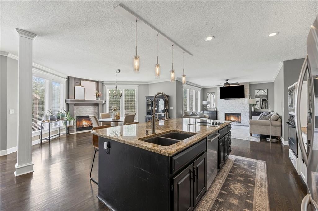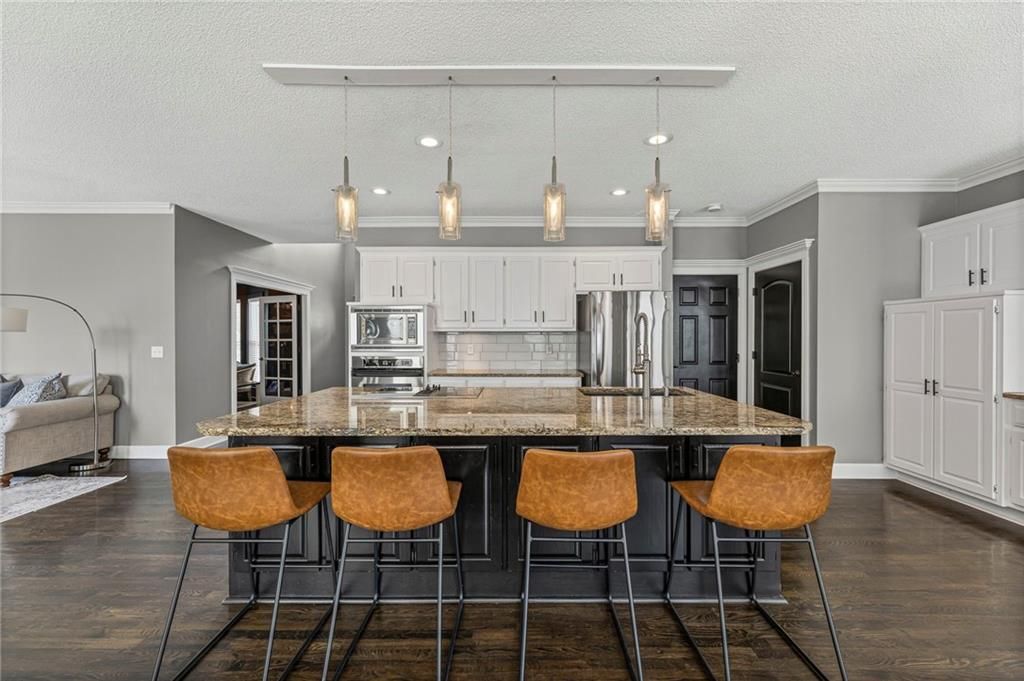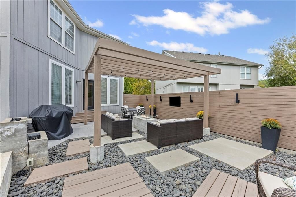 Contingeny Contract Fell Thru, No Fault Of Sellers. Enjoy the comfort and elegance of this luxurious house and step into the spacious open floor plan designed to create an inviting atmosphere for relaxing and entertaining. The gleaming hardwood floors add a touch of sophistication reflecting natural light throughout the spaces. High soaring ceilings enhance the sense of openness and grandeur while multiple gorgeous fireplaces provide warmth and charm making every room feel cozy and welcoming. The spectacular chef's kitchen and adjoining dining area include lots of granite countertops, hardwoods, s/s appliances, 5x9 center island/breakfast bar, lots of cabinets, pantry, ceramic fireplace. Awesome hearth room features hardwoods and access to a stunning backyard oasis with a 15x23 tiled patio, pergola, tv, fountain, firepit. The impressive living room showcases hardwoods, granite fireplace, plenty of natural light. Superb office/bonus room with french pane doors and built-ins plus a half bathroom all on the first level. The primary suite offers a sanctuary of comfort and elegance as it spotlights a spacious 18x24 bedroom with carpeting, vaulted ceiling, fireplace, ceiling fan along with an exquisite en-suite bathroom that includes two single vanities, shower, soaker tub, tile, walk-in closet providing a true oasis retreat. Two more stylish full bathrooms, three additional roomy bedrooms, laundry room on the upper level for the ultimate convenience and comfort. Huge unfinished basement (1,210sf) features an egress window presenting the potential to add a 5th conforming bedroom, stubbed for a bathroom, and more living spaces. This amazing home boasts lots of newer interior paint and light fixtures, added room built-in's, furnace (2023), 5' steel fence, sprinkler system, incredible location, superb curb appeal, all appliances staying too! Just minutes to Lenexa City Center. HOA includes pool, tennis, trash, recycle. Don't Wait To Make This Dream Home Yours!!