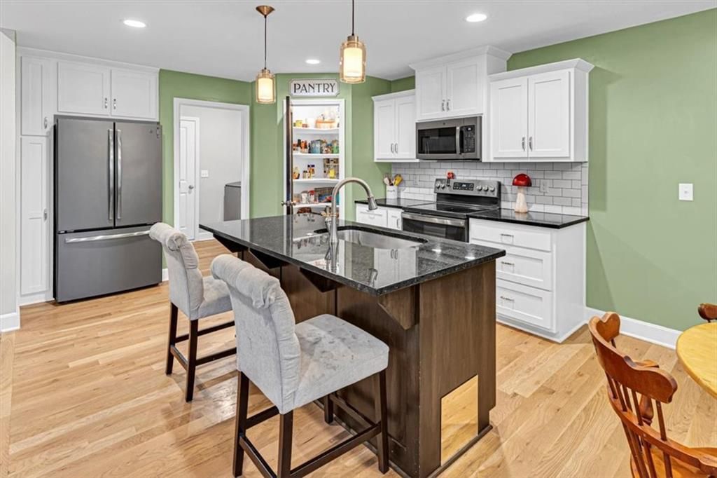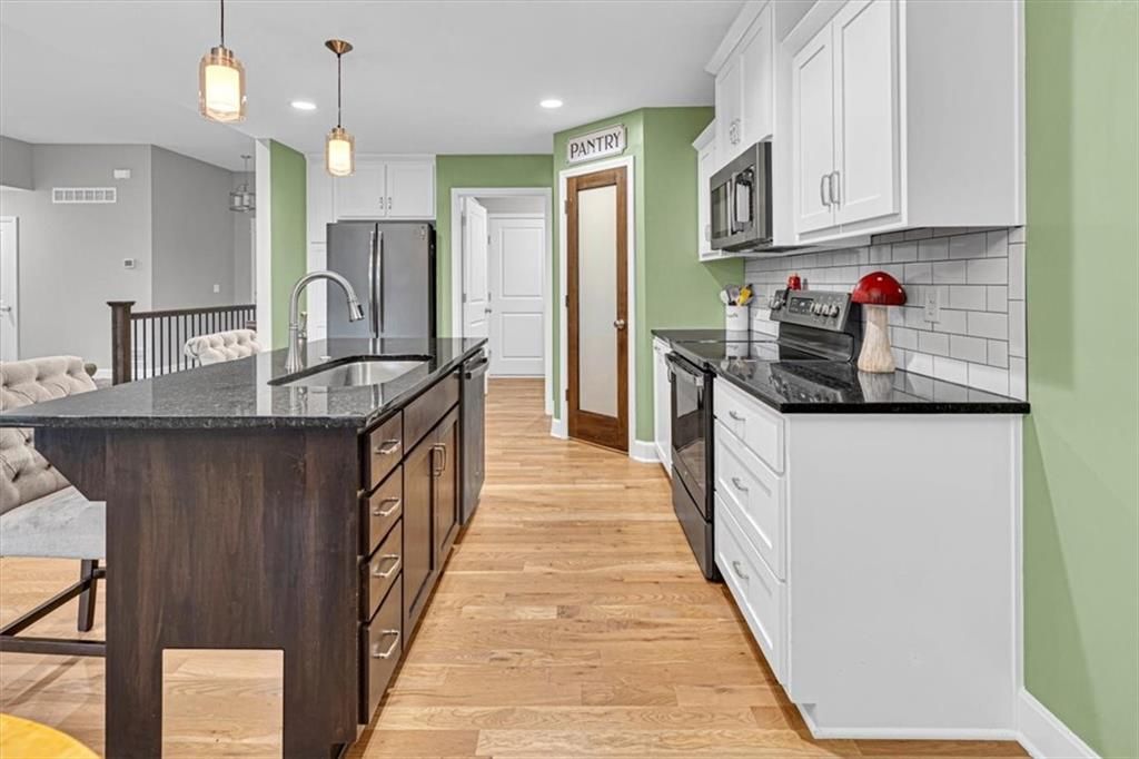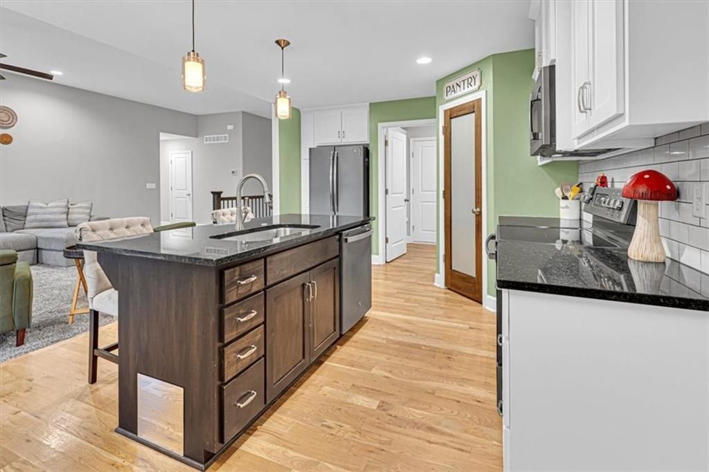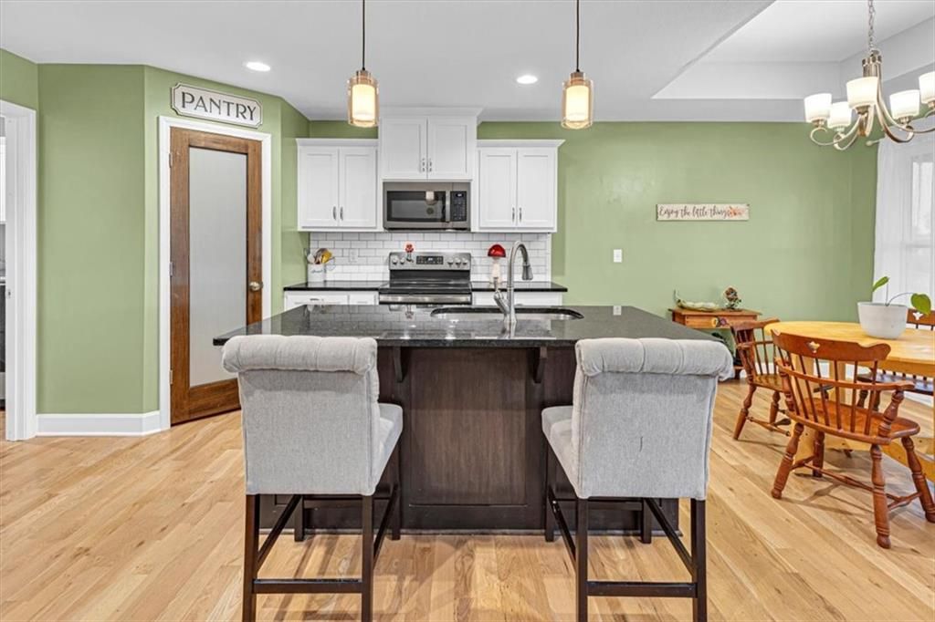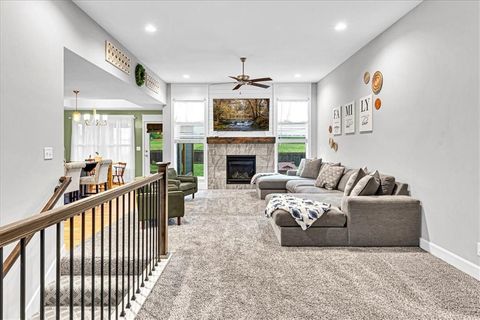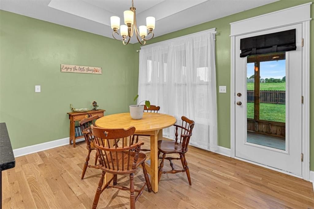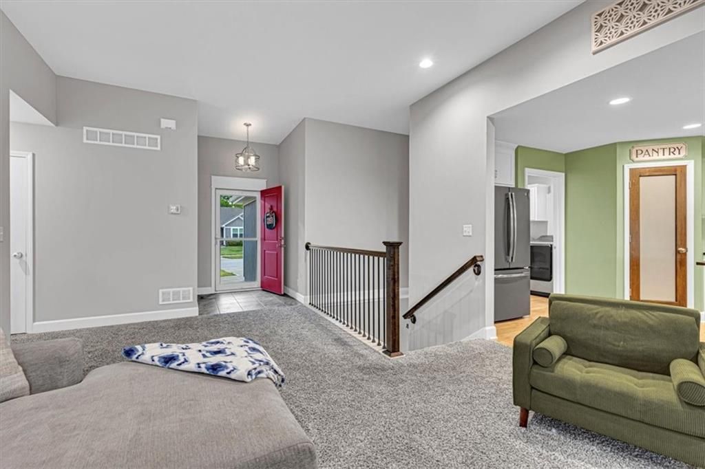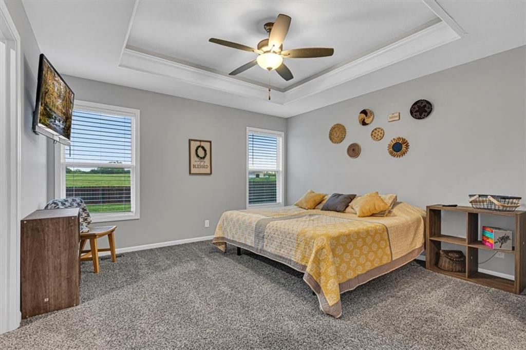 This beautifully designed ranch home in highly sought-after Copper Creek subdivision is ready for its new owners. Built in 2021, this 3 bedroom/2 bathroom home offers functionality and style. This spacious open concept main living area features vaulted ceilings, abundant natural light, a shiplap fireplace and main level laundry. The kitchen is extremely functional with custom soft closed kitchen cabinetry, granite countertops, large center island with seating, and a walk-in pantry. The full basement is stubbed for a bathroom and includes egress windows. It is ready to be finished with the option of adding two more conforming bedrooms, a rec room and/or office. Enjoy your morning or evening beverages on the covered screened in porch overlooking the fenced backyard. Additional highlights include a built-in mudroom area off the two-car garage. This home is situated within the award-winning Raymore- Peculiar School District and it is located just across the street.