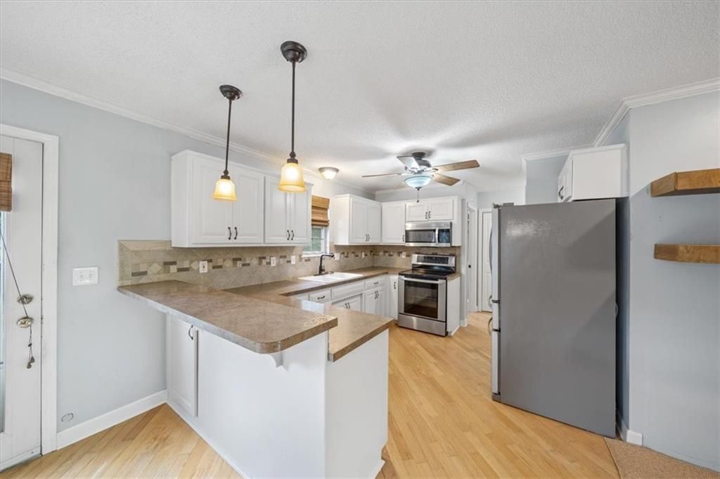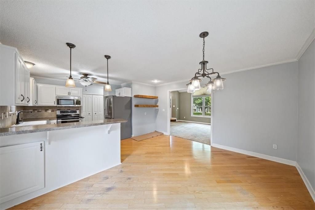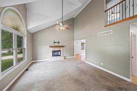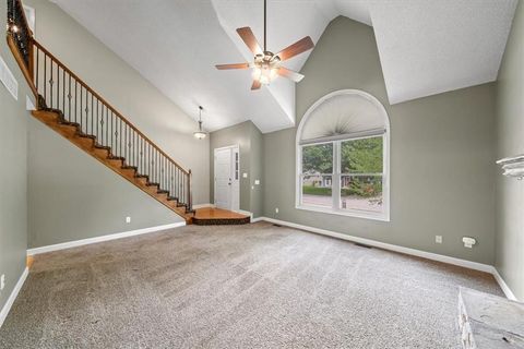 Your next chapter awaits! This charming 2-story is nestled in the desirable Southdowns neighborhood. Step inside to an inviting living room with vaulted ceilings, a cozy fireplace and lots of natural light. The kitchen is equipped with stainless steel appliances, countertop seating, pantry and adjacent dining area. Don't miss the main level laundry for added convenience. The finished basement provides plenty of extra living space with a large rec room and full bathroom. Enjoy entertaining this summer in the fenced in yard with a patio and adorable playhouse that is air-conditioned! Located near great schools, shops, dining and highway access.