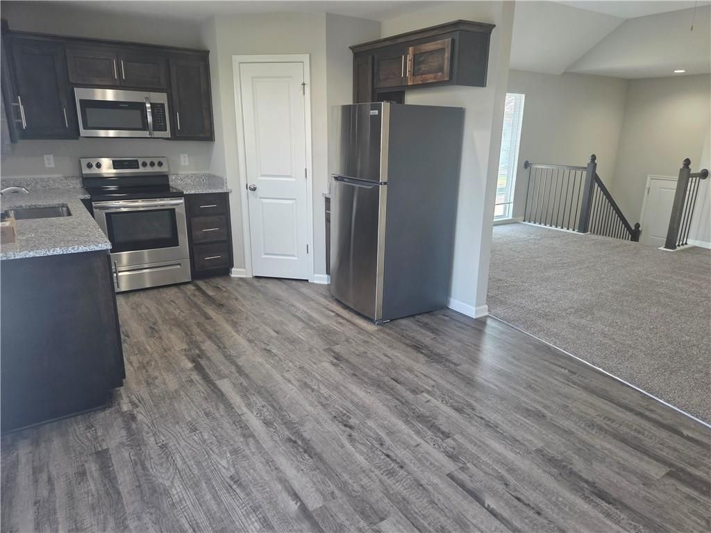 Discover this exceptional split-entry home with 4 bedrooms and 3 full baths, designed for spacious living! The main-level Living Room boasts soaring ceilings for a bright, open vibe. The modern Kitchen shines with granite countertops,stainless steel appliances, and pantry! Enjoy main-level Laundry Rooom convenience and a finished basement featuring a walk-out Family Room, full bath, and 4th bedroom, perfect for guests, an office, or extra privacy. Backyard overlooks subdivision pond! Move-in ready! Buyer & Buyer's Agent to verify all information including square footage, zoning, taxes & roomsizes during the Inspection Period.