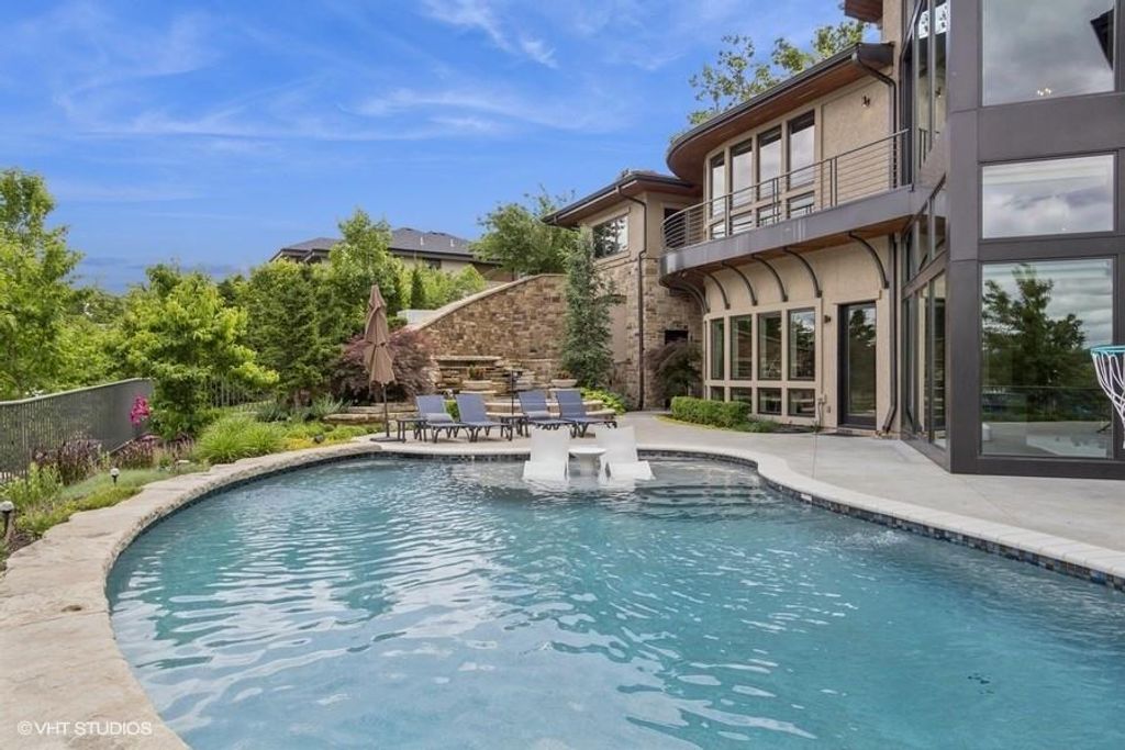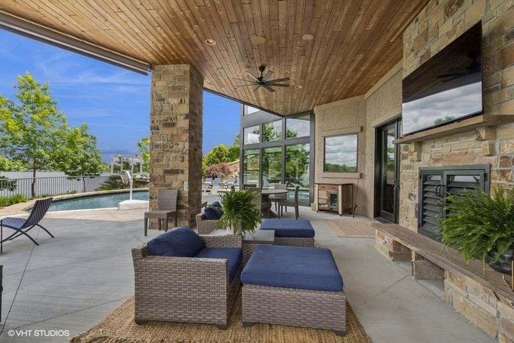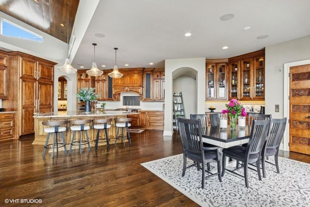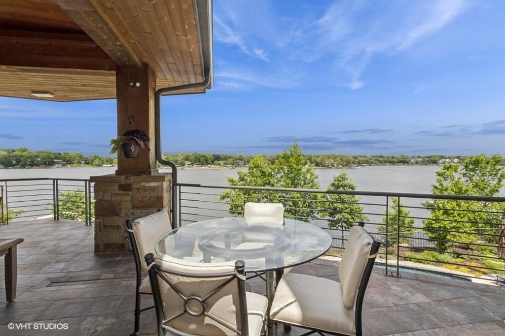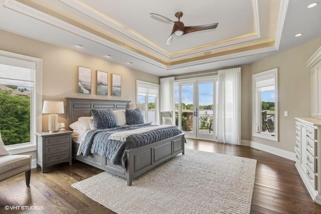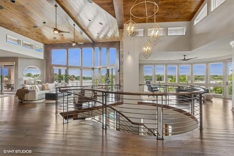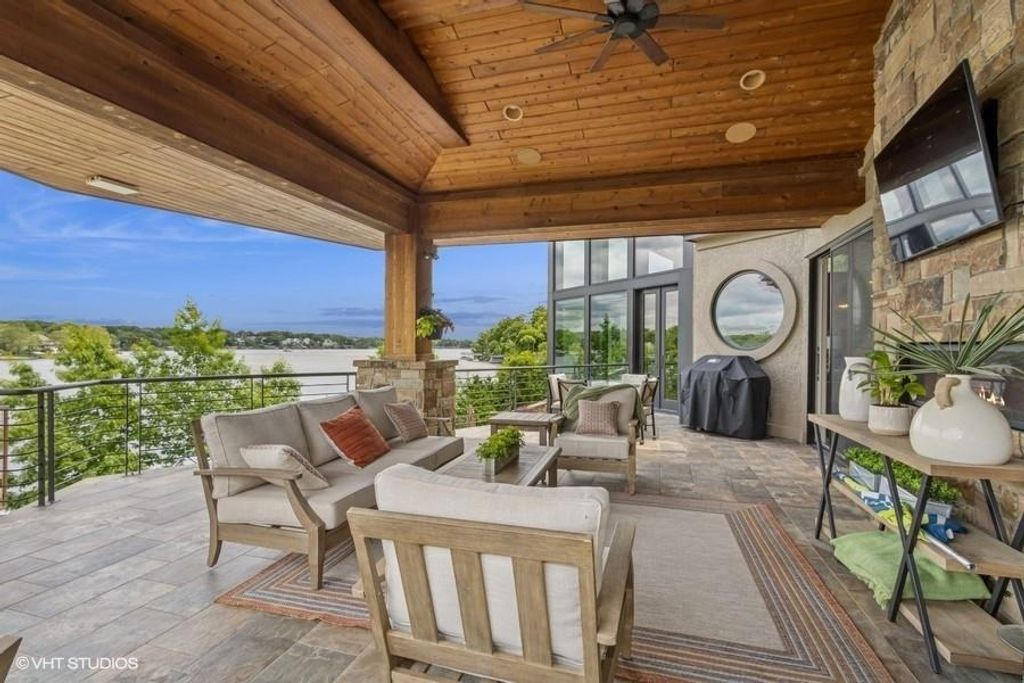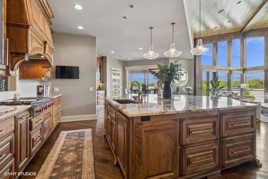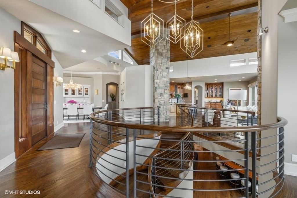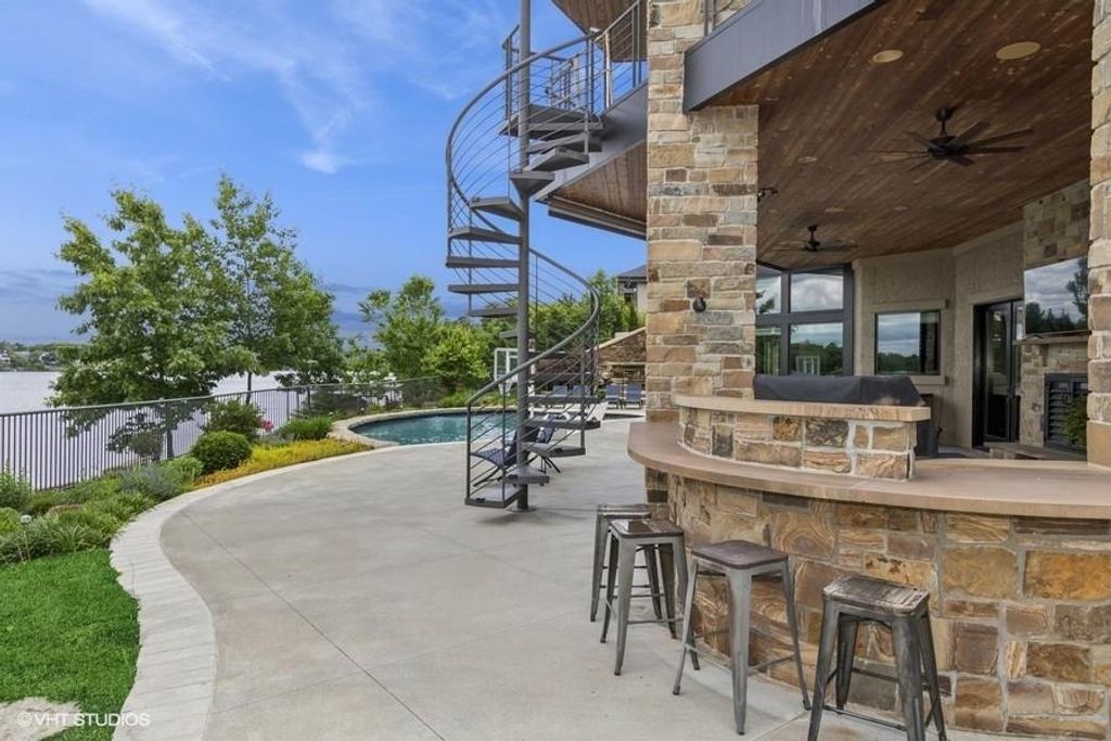 Nestled on over half an acre with more than 300 feet of pristine lake frontage, this custom-built estate offers unparalleled views and luxury in the exclusive Lake Winnebago community. Designed by renowned builder Bruce Rieke and completed in 2019, this home blends tropical Hawaiian inspirations with modern elegance, creating a serene retreat perfect for both relaxation and entertaining. Property Highlights: Spacious Living: Boasting 5,995 sq ft of finished living space across two levels, this reverse 1.5-story home features 3 bedrooms and 3.5 bathrooms and a 4th non conforming bunk bed room. Great Room: Soaring 22-foot ceilings and a wall of windows provide breathtaking lake views, complemented by a Brentwood stone hearth and a wood-burning fireplace. Gourmet Kitchen: Equipped with Wolf and SubZero appliances, a convection steam oven, quartz countertops, and a massive granite island, this kitchen is a chef's dream. Primary Suite: Enjoy 280-degree outdoor lake views, a spa-like bath with heated floors and Bain Ultra Chromatherapy, and a custom-designed California Closet. Entertainment Spaces: The lower level features a custom wood bar, media area with built-in bookshelves, two large bedrooms, and a hidden wine cellar with a tasting room. Outdoor Oasis: An in-ground pool with a Baja shelf, spa with a waterfall, solar-paneled dock with a lift, full outdoor kitchen, smoker, and a private stone breezeway entrance to the backyard. Additional Features: Elevator access, wide hallways and doorways for accessibility, a custom wood chute in the garage, and a generator. So much to see in this one of a kind lakefront home!