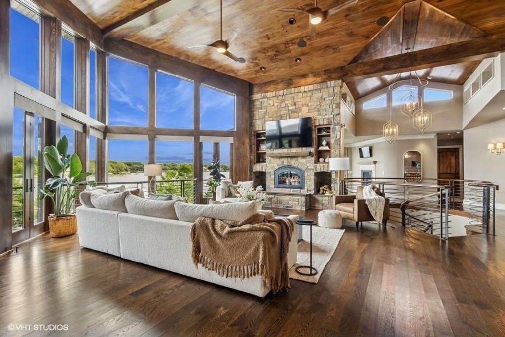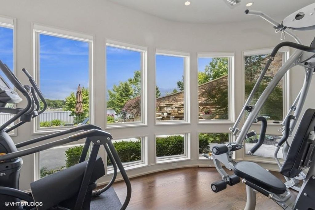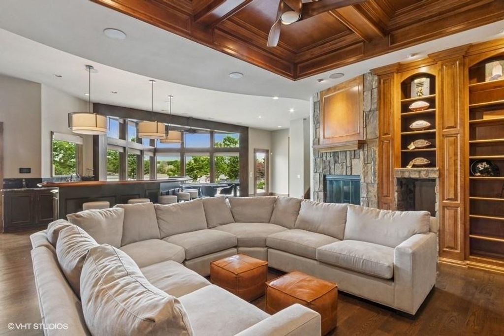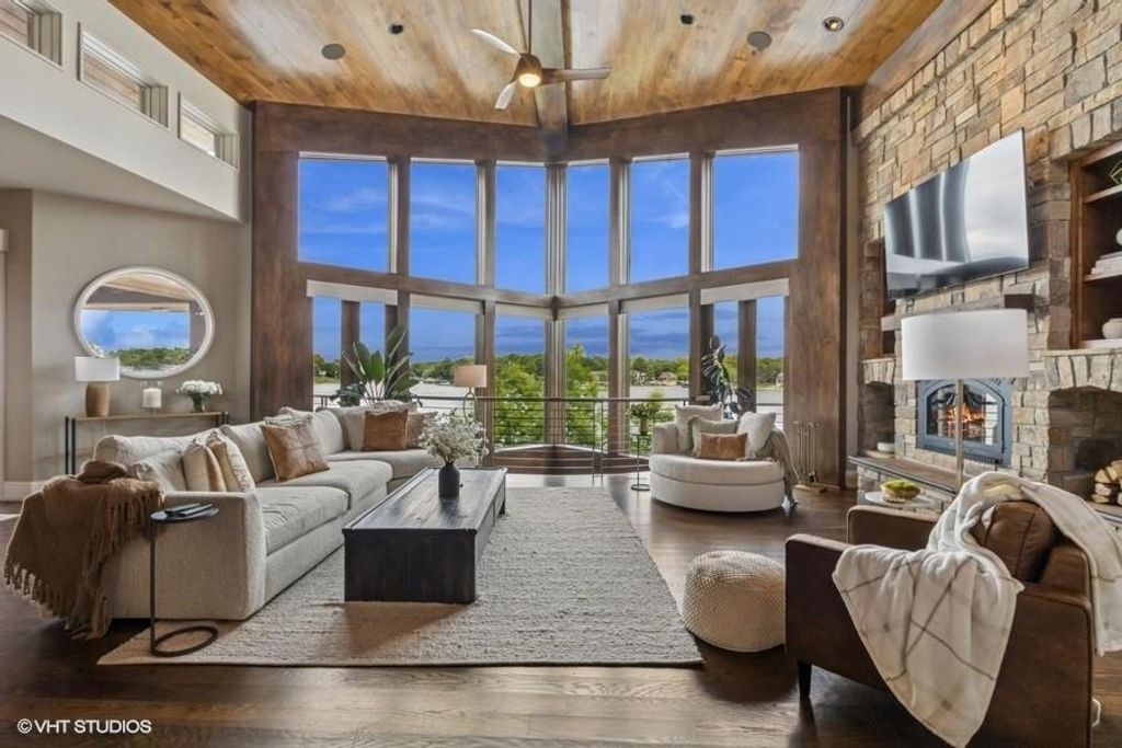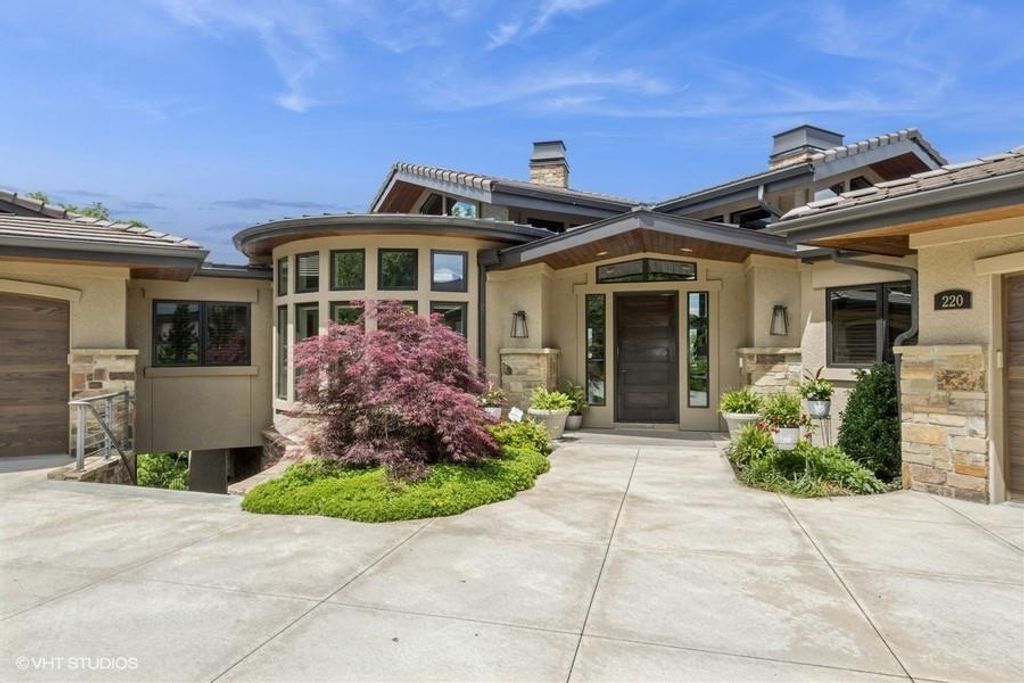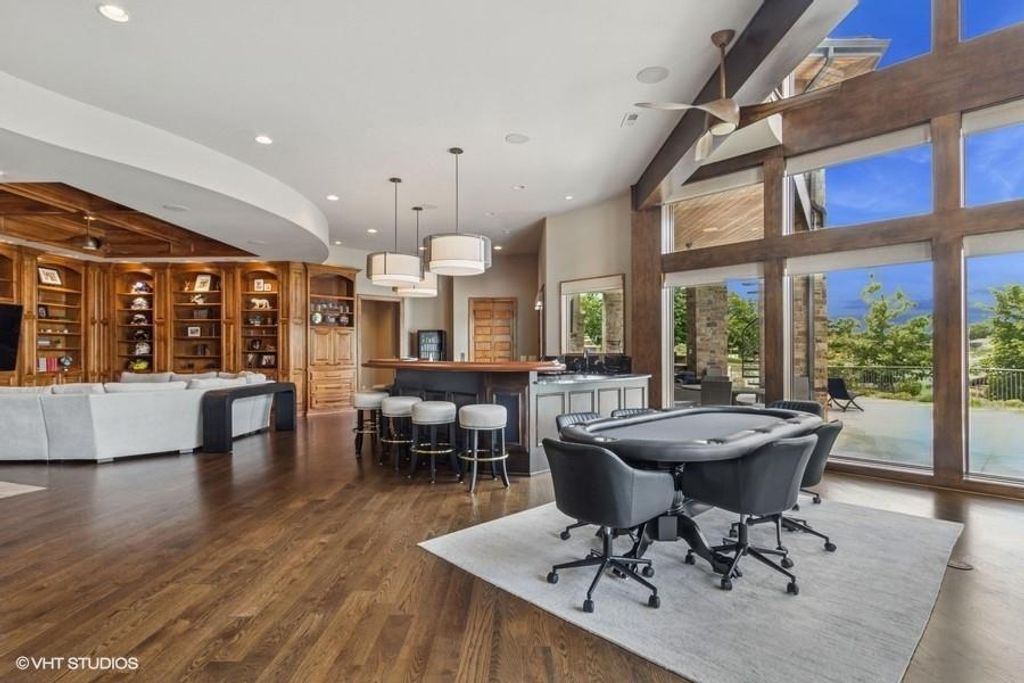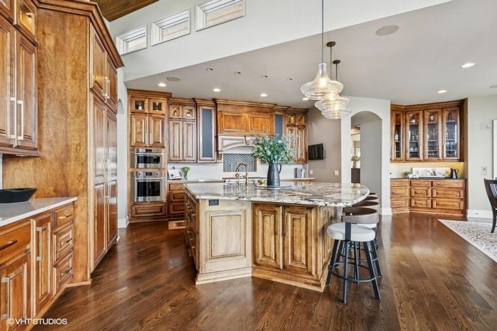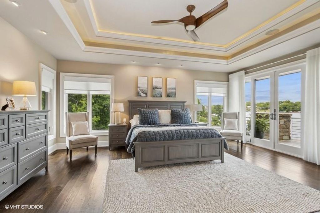 Nestled on over half an acre with more than 300 feet of pristine lake frontage, this custom-built estate offers unparalleled views and luxury in the exclusive Lake Winnebago community. Designed by renowned builder Bruce Rieke and completed in 2019, this home blends tropical Hawaiian inspirations with modern elegance, creating a serene retreat perfect for both relaxation and entertaining. Property Highlights: Spacious Living: Boasting 5,995 sq ft of finished living space across two levels, this reverse 1.5-story home features 3 bedrooms and 3.5 bathrooms and a 4th non conforming bunk bed room. Great Room: Soaring 22-foot ceilings and a wall of windows provide breathtaking lake views, complemented by a Brentwood stone hearth and a wood-burning fireplace. Gourmet Kitchen: Equipped with Wolf and SubZero appliances, a convection steam oven, quartz countertops, and a massive granite island, this kitchen is a chef's dream. Primary Suite: Enjoy 280-degree outdoor lake views, a spa-like bath with heated floors and Bain Ultra Chromatherapy, and a custom-designed California Closet. Entertainment Spaces: The lower level features a custom wood bar, media area with built-in bookshelves, two large bedrooms, and a hidden wine cellar with a tasting room. Outdoor Oasis: An in-ground pool with a Baja shelf, spa with a waterfall, solar-paneled dock with a lift, full outdoor kitchen, smoker, and a private stone breezeway entrance to the backyard. Additional Features: Elevator access, wide hallways and doorways for accessibility, a custom wood chute in the garage, and a generator. So much to see in this one of a kind lakefront home!