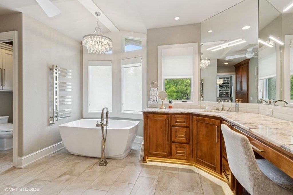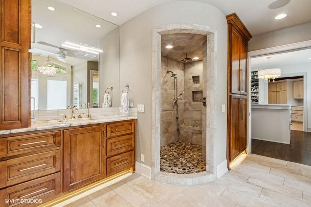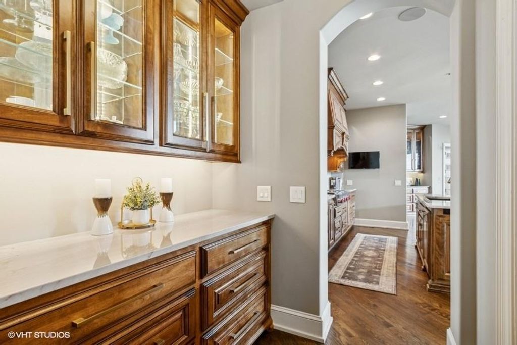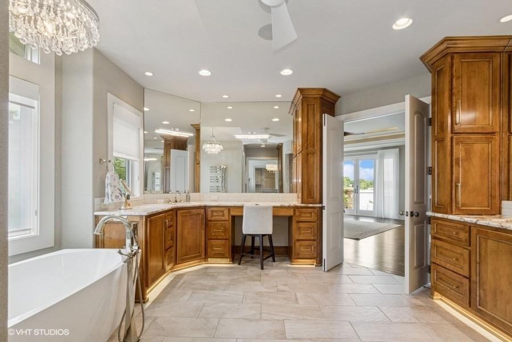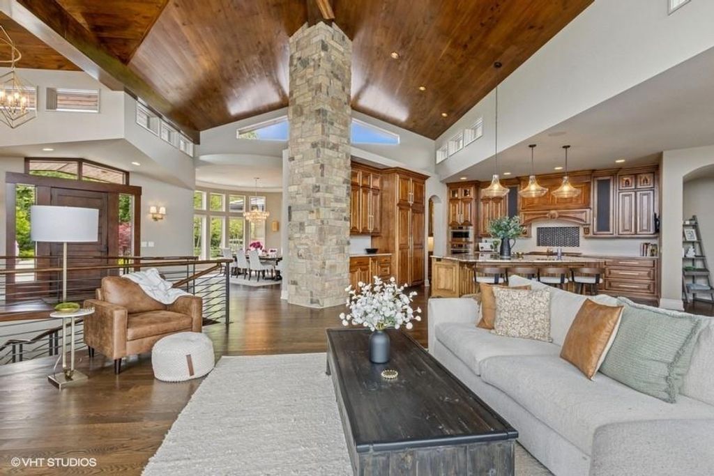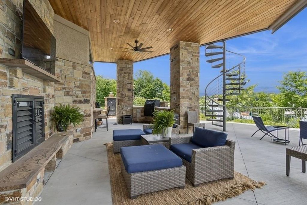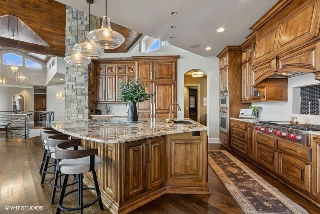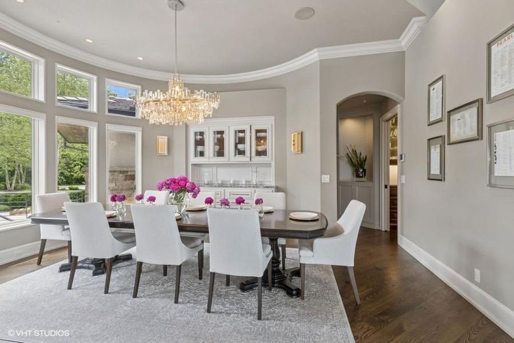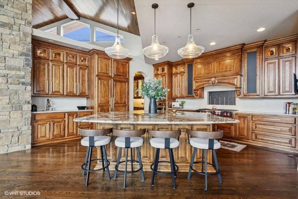 Nestled on over half an acre with more than 300 feet of pristine lake frontage, this custom-built estate offers unparalleled views and luxury in the exclusive Lake Winnebago community. Designed by renowned builder Bruce Rieke and completed in 2019, this home blends tropical Hawaiian inspirations with modern elegance, creating a serene retreat perfect for both relaxation and entertaining. Property Highlights: Spacious Living: Boasting 5,995 sq ft of finished living space across two levels, this reverse 1.5-story home features 3 bedrooms and 3.5 bathrooms and a 4th non conforming bunk bed room. Great Room: Soaring 22-foot ceilings and a wall of windows provide breathtaking lake views, complemented by a Brentwood stone hearth and a wood-burning fireplace. Gourmet Kitchen: Equipped with Wolf and SubZero appliances, a convection steam oven, quartz countertops, and a massive granite island, this kitchen is a chef's dream. Primary Suite: Enjoy 280-degree outdoor lake views, a spa-like bath with heated floors and Bain Ultra Chromatherapy, and a custom-designed California Closet. Entertainment Spaces: The lower level features a custom wood bar, media area with built-in bookshelves, two large bedrooms, and a hidden wine cellar with a tasting room. Outdoor Oasis: An in-ground pool with a Baja shelf, spa with a waterfall, solar-paneled dock with a lift, full outdoor kitchen, smoker, and a private stone breezeway entrance to the backyard. Additional Features: Elevator access, wide hallways and doorways for accessibility, a custom wood chute in the garage, and a generator. So much to see in this one of a kind lakefront home!