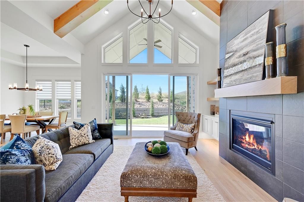 The Willow II by JFE Homes - **NEW IMPROVED PRICE**MOVE IN READY**A True Showstopper! From the moment you arrive, The Willow II captivates with its stunning curb appeal - featuring a sleek double glass front door and a modern garage door with side glass windows. Inside, you'll be greeted by soaring ceilings, walls of windows, and a vaulted great room with striking beams. A large sliding glass door seamlessly extends your living space onto the covered patio, where a stone fireplace and additional outdoor area create the perfect setting for relaxation or entertaining. The chef's kitchen is a masterpiece, offering custom cabinetry, an oversized island, quartz countertops, a butler's pantry, and stainless steel appliances - designed for both function and style. The primary suite is a luxurious retreat, featuring a decorative wood accent wall, vaulted ceiling, and spa-like ensuite. Enjoy a free-standing soaking tub, walk-in shower, and an oversized closet that conveniently connects to the laundry room. The lower level is an entertainer's dream, complete with a spacious media area, a wet bar with an opening that fits a full-size fridge and microwave, plus two additional bedrooms and a full bath. Backing to a private berm/greenspace, this home also includes a three-car garage. There's still time to make personal selections and tailor it to your style! Located in Silverleaf, a maintenance-provided community, you can enjoy a carefree lifestyle for just 195/month - no more mowing, weeding, edging, or snow removal. Just more time for what truly matters! Don't miss out on this stunning home by JFE Homes - schedule your tour today!