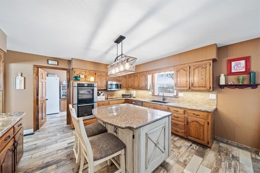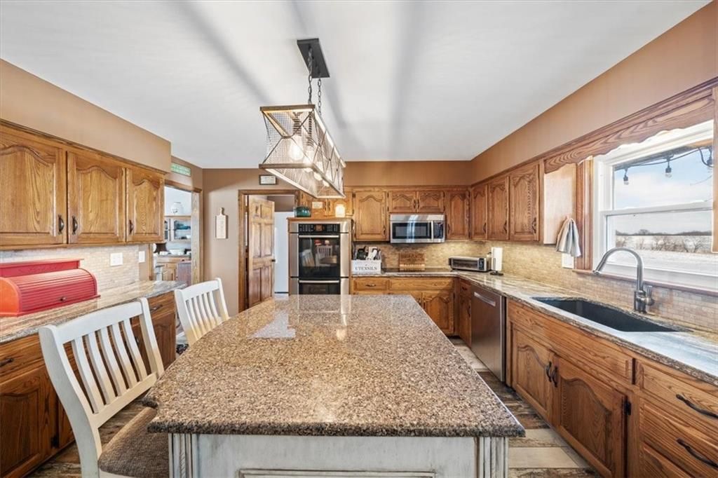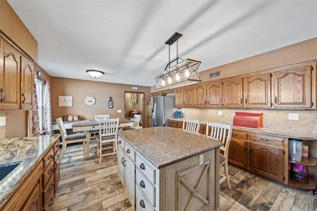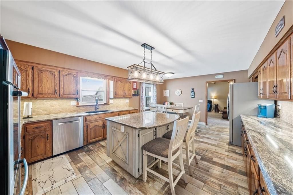 5.76 Acres with Stocked Pond! This all-brick raised ranch offers 4 bedrooms, 3.5 baths, and is packed with updates! Sitting on 5.76 acres in the North Platte School District, this property features a 2-car attached garage plus a detached 2-car garage with dual carports, one with water and 50-amp service - perfect for RVs or extra vehicles. Inside, you'll find all bedrooms and laundry on the main level, a formal living and dining room, a cozy family room with a fireplace, a bright sunroom, and an updated kitchen with a dining area. The walk-out basement includes a bathroom, storm shelter/safe room, bar area, and plenty of space for a pool table or entertainment. Recent updates include new windows, flooring, paint, a new Geothermal system, and beautifully updated kitchen and bathrooms. Don't miss your chance to own this slice of paradise - schedule a showing today!
