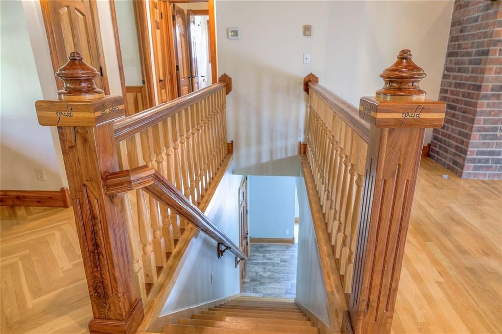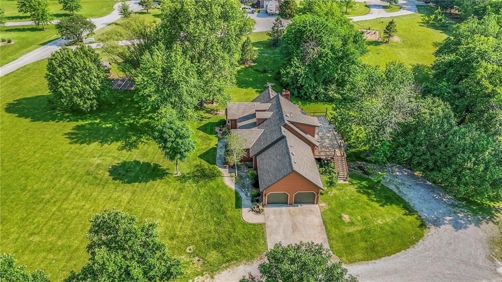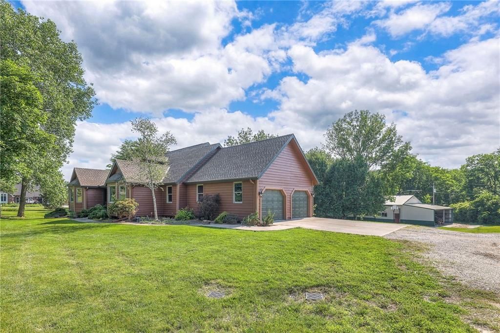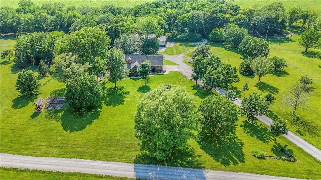 If you've been dreaming of country living but can't quite shake the need for easy access to city amenities, we have the perfect property for you. Nestled in the trees this hidden gem is just off 291 and mere miles from I-49. Imagine the serenity of country life, combined with the convenience of a short drive to everything you need. Welcome to your dream home. This isn't just any house. Built by a custom builder for his bride, every inch of this home radiates love, care, and attention to detail. The artistic hardwood floors and custom cherry cabinets throughout the open-concept design immediately catch your eye, while the specially crowned doors add an elegant touch. Designed with Mother-In-Law quarters and single level living in mind. The walk-out basement has been transformed into a fully-functional, 5-star-rated Airbnb apartment. Featuring a private patio and an inviting outdoor living space, this charming unit offers guests a home away from home - while you enjoy the peace and quiet of country living. Whether you continue renting it out or use it for family, the options are endless. For hobbyists, entrepreneurs, or anyone with big projects in mind, the property includes a massive 60x40 shop with garage doors and an additional lean-to roof space. Inside, you'll find concrete floors with water-heated floors perfect for year-round comfort. Need even more space? A separate, income-generating apartment is also located in the shop, offering a great opportunity for rental income or use as a private guest suite. Location, location, location: Enjoy the tranquility of country living, while being just minutes from major highways and all the conveniences of the city. Designed for versatility: Whether you're looking for a home for your family, an income-generating property, or a place to work on projects, this home does it all. Luxury and comfort: From custom finishes to spacious, multi-generational design, every detail is included. Back on market no fault of seller.
