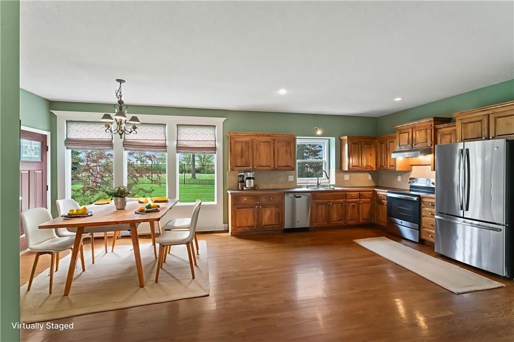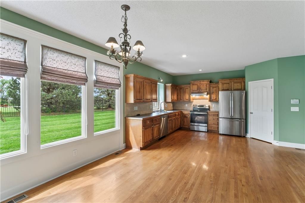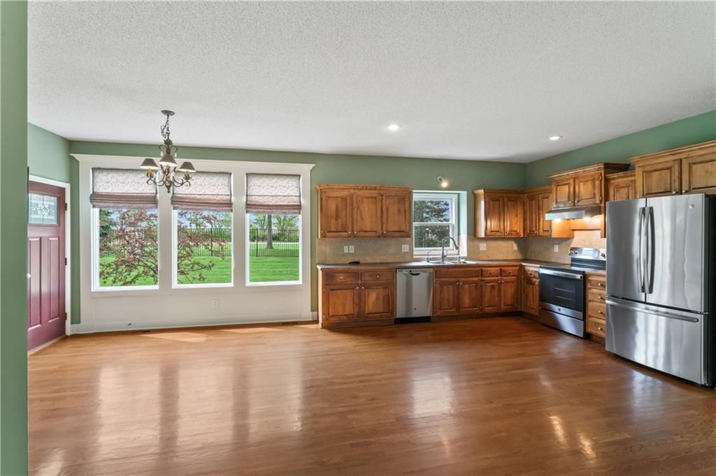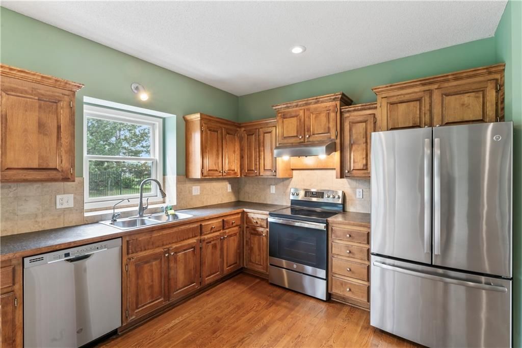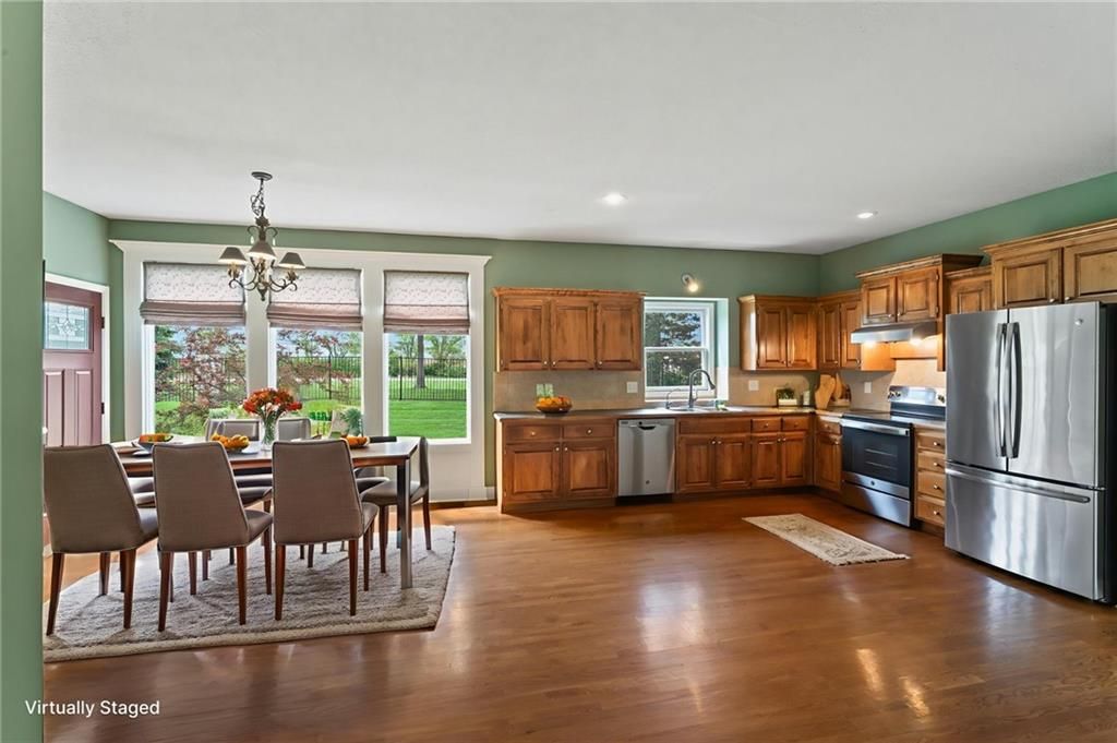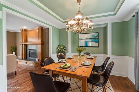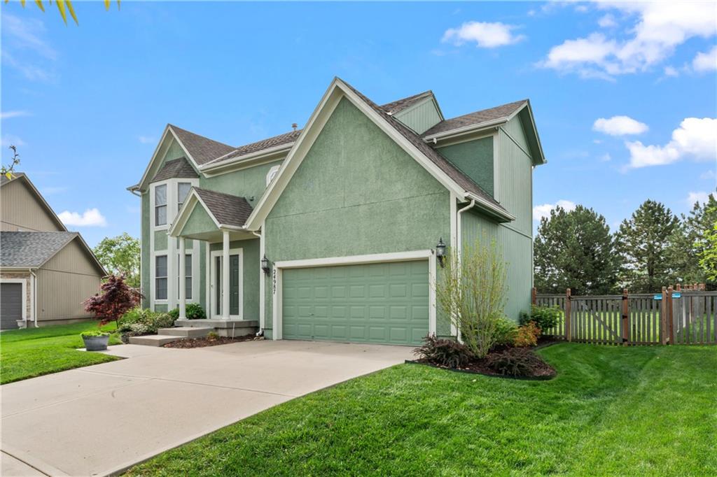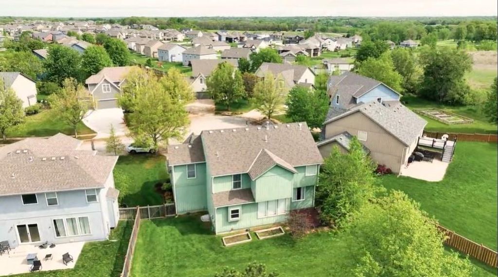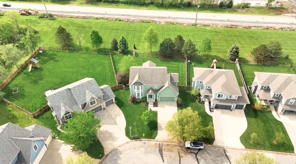 This gorgeous one-owner home has been patiently waiting for its next chapter - and with a fresh new price, now is your golden opportunity! Step inside and be welcomed by a light-filled, thoughtfully designed layout featuring 4 generously sized bedrooms, 2.1 baths, and a main level made for both relaxing and entertaining. Gleaming hardwood floors, brand-new carpet upstairs, and fresh interior paint throughout make this home completely move-in ready - no updates needed! Enjoy cozy nights in the great room with a fireplace and the included 85 TV, perfect for movie nights or game day. Upstairs, the spacious primary suite and three additional bedrooms offer comfort, privacy, and room to grow. Gardeners will love the raised garden beds in the fenced backyard, ideal for flowers or homegrown veggies. Nestled in sought-after West Olathe, you're just minutes from Lake Olathe Park, schools, shopping, and New Century Airport. This is the opportunity you've been waiting for - don't let someone else call it home. Have questions? Reach out to Ike Moore at 816-944-0303 and take a virtual tour with the drone video here: https://rcl.ink/1VSZG
