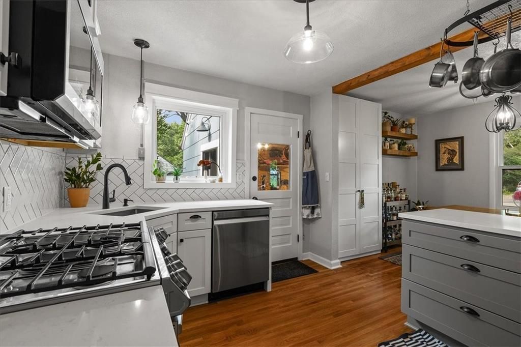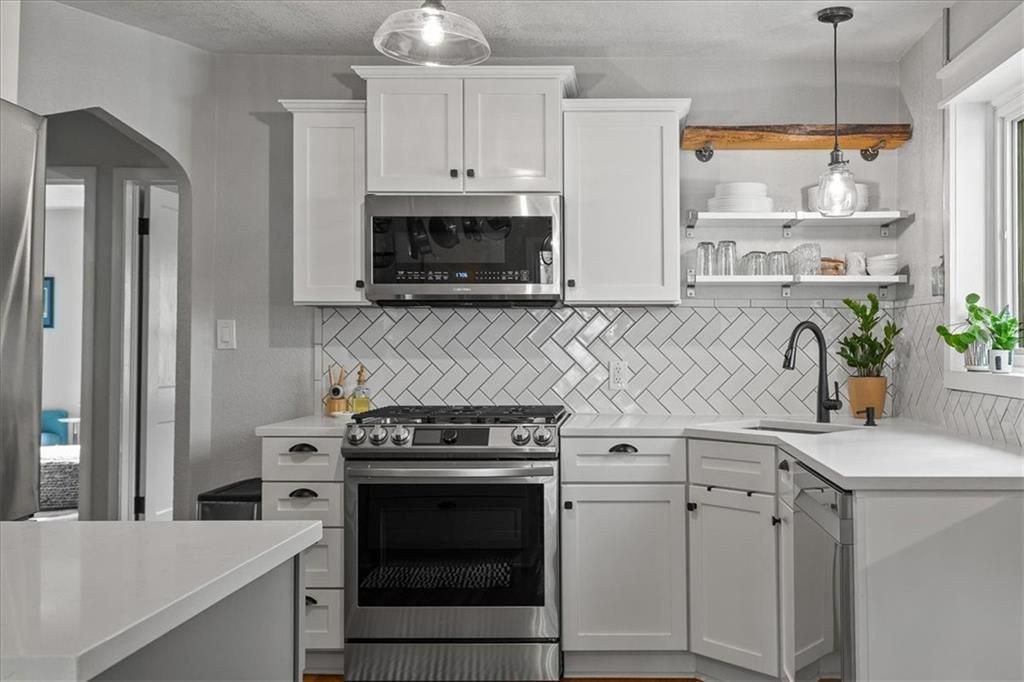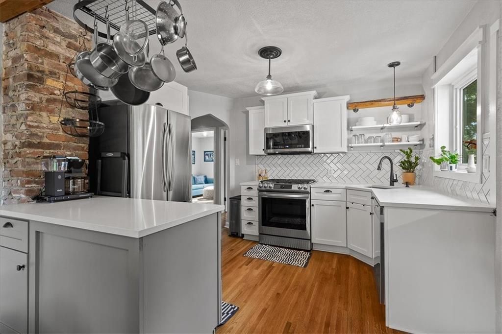 Welcome to this beautifully updated home located in the vibrant Rosedale neighborhood, just minutes from KU Medical Center and some of the city's best restaurants, shops, and cafes. This home seamlessly blends classic charm with modern upgrades, offering a comfortable and functional space in one of the most convenient areas of town. The kitchen and bathroom have both been fully remodeled with tasteful finishes, and the kitchen features a gas stove. New Anderson windows and doors throughout the home provide energy efficiency and a fresh, updated look. The attic has been transformed into a spacious primary bedroom with its own half bath and a dedicated mini split system for personalized climate control. The living room is both cozy and practical, featuring built-in shelving and cabinetry. A cedar-vaulted front entry adds warmth and architectural interest to the home's exterior, while a whole-home humidifier ensures indoor comfort year-round. Additional updates include a brand-new garage door and opener, a garage sub panel and heater perfect for a workshop setup, a new water line from the city to the house, and an upgraded 200-amp electric service. There is a new driveway and a fenced backyard, ideal for pets. Both the front and back yards have been beautifully landscaped and equipped with an irrigation system for easy maintenance. This thoughtfully updated Rosedale home offers a unique opportunity to enjoy modern amenities, beautiful design, and unbeatable proximity to everything the neighborhood has to offer.